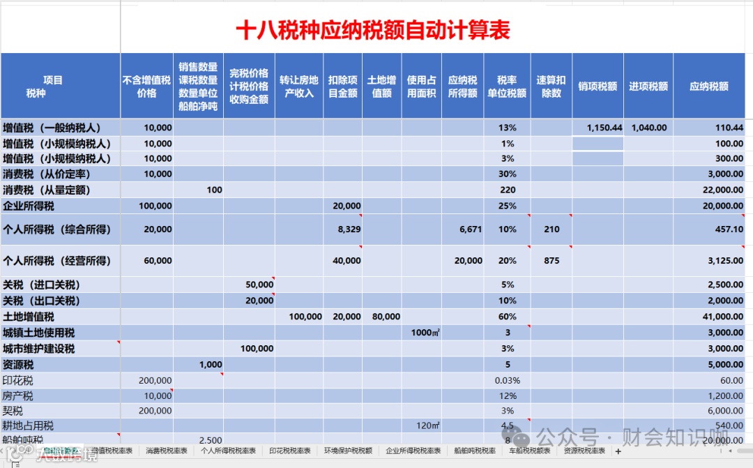 秒懂我国18税种!18税种会计分录+纳税义务发生时间全集+18税种应纳税额自动计算表