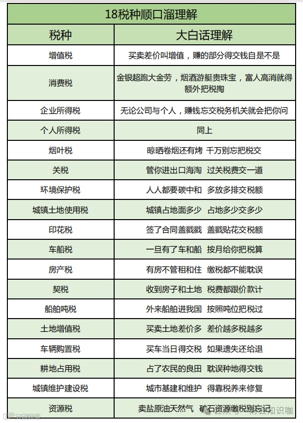 18税种大白话理解