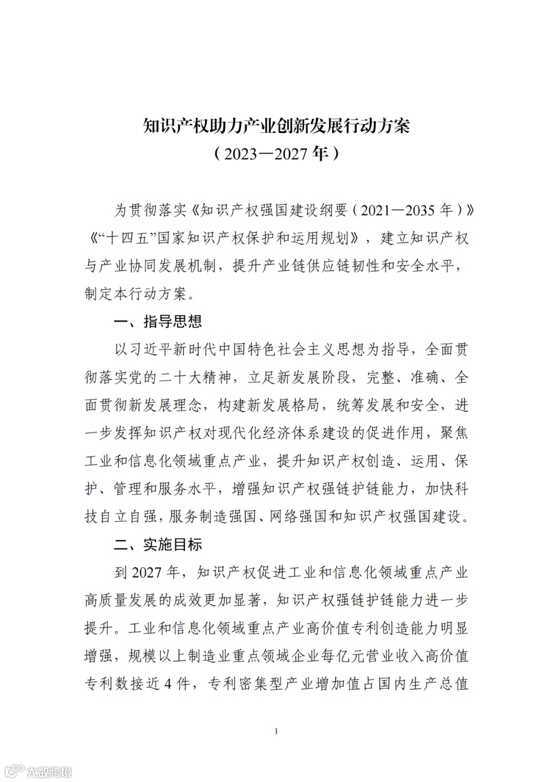 工业和信息化部办公厅 国家知识产权局办公室关于印发《知识产权助力产业创新发展行动方案(2023─2027年)》的通知
