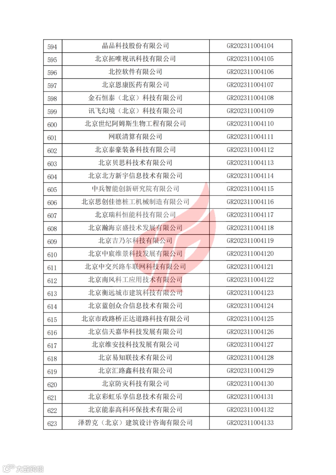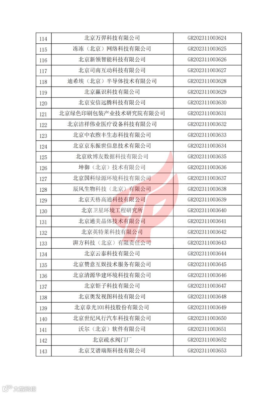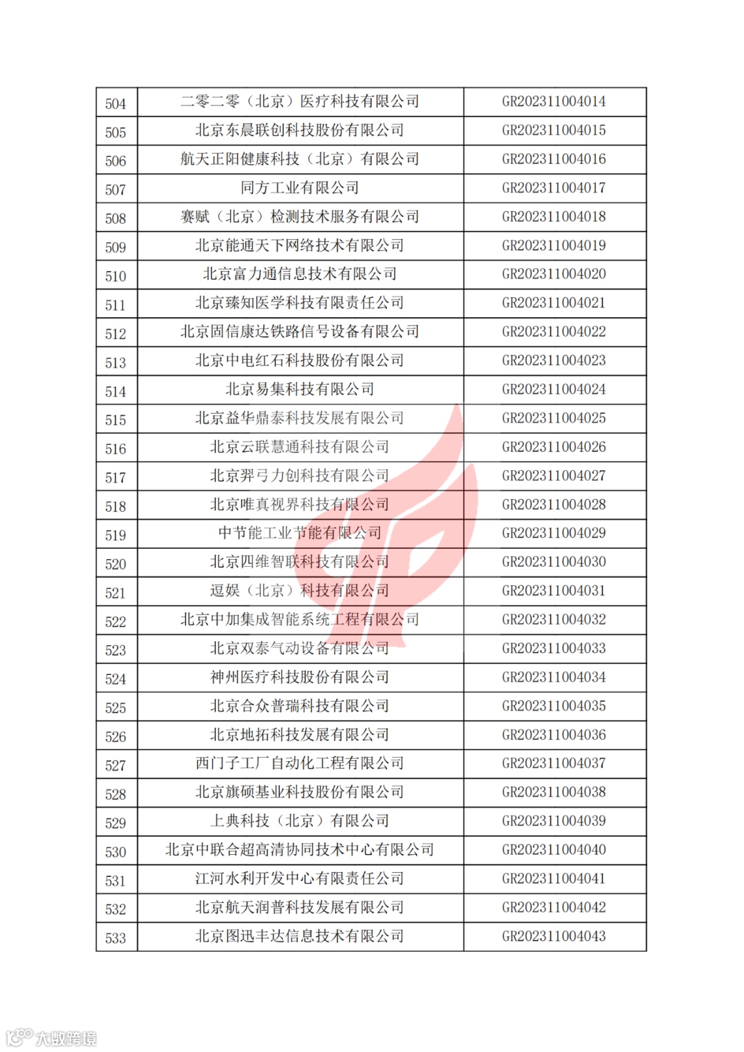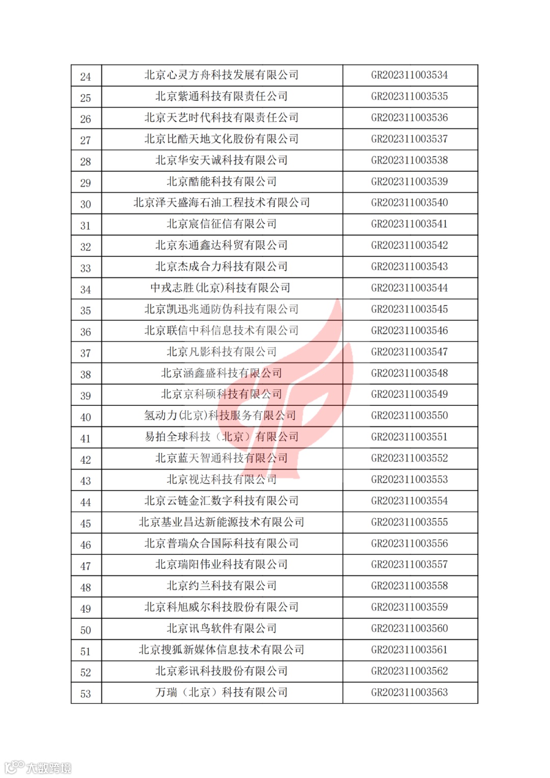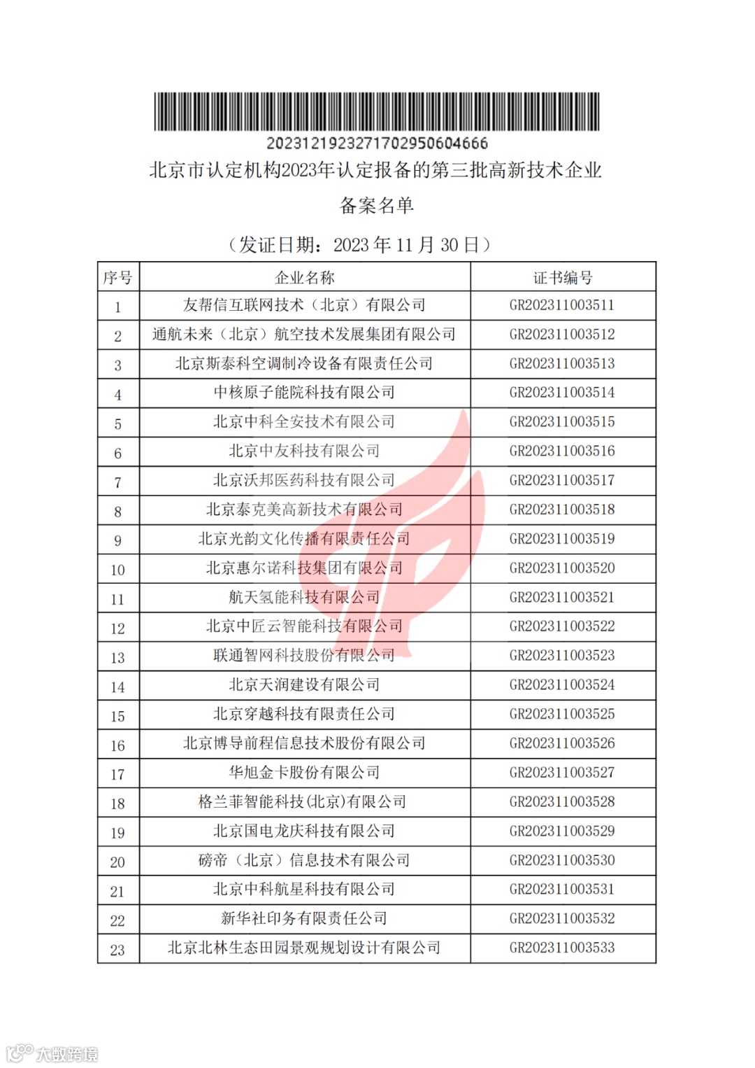 对北京市认定机构2023年认定报备的第三批高新技术企业进行备案的公告