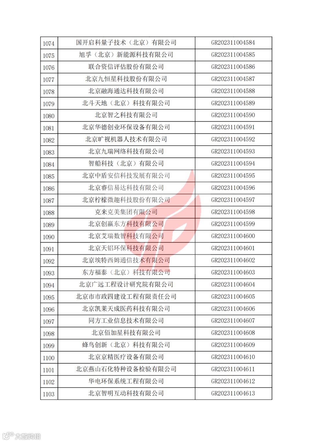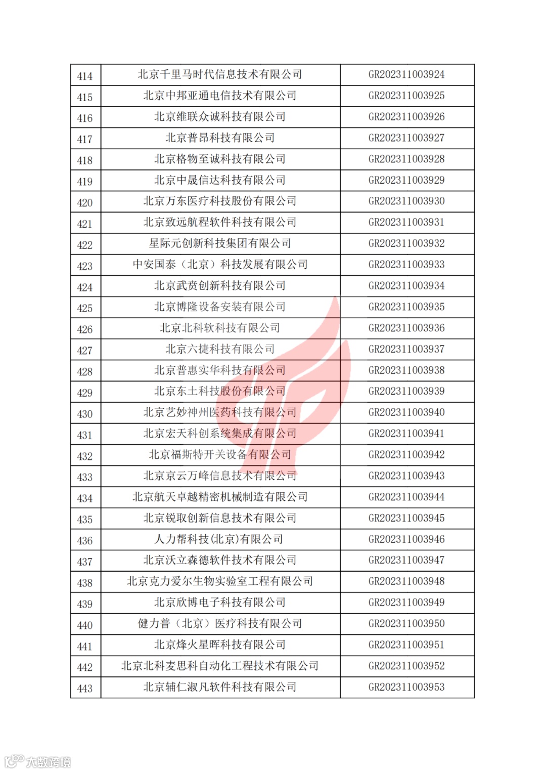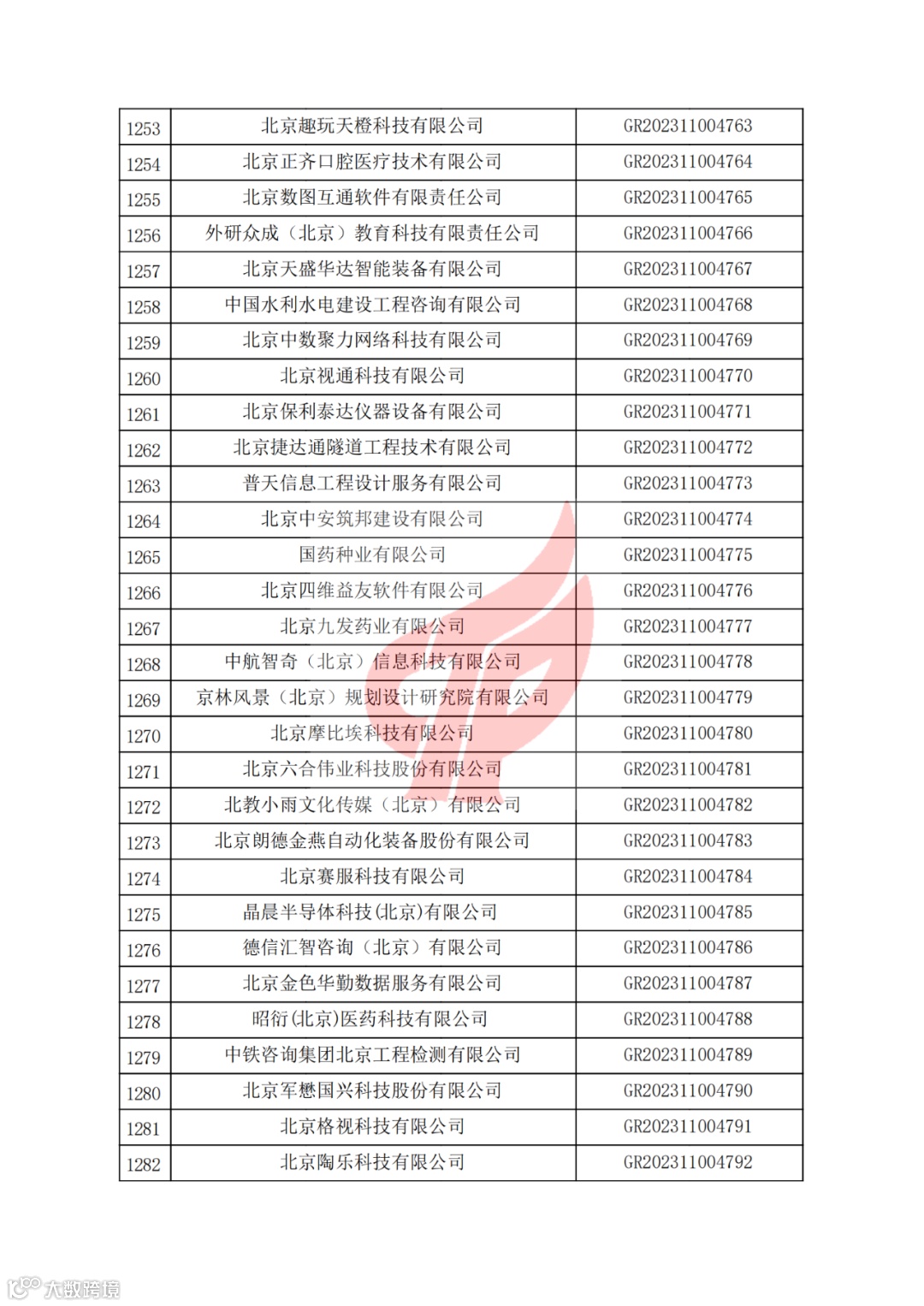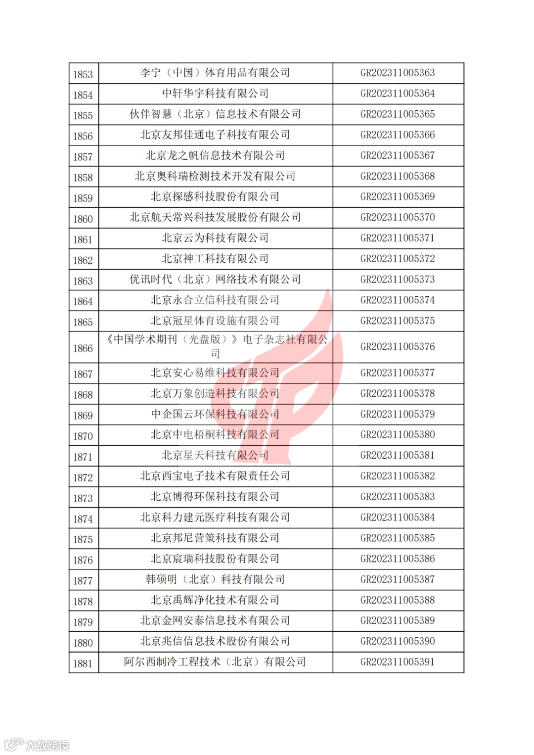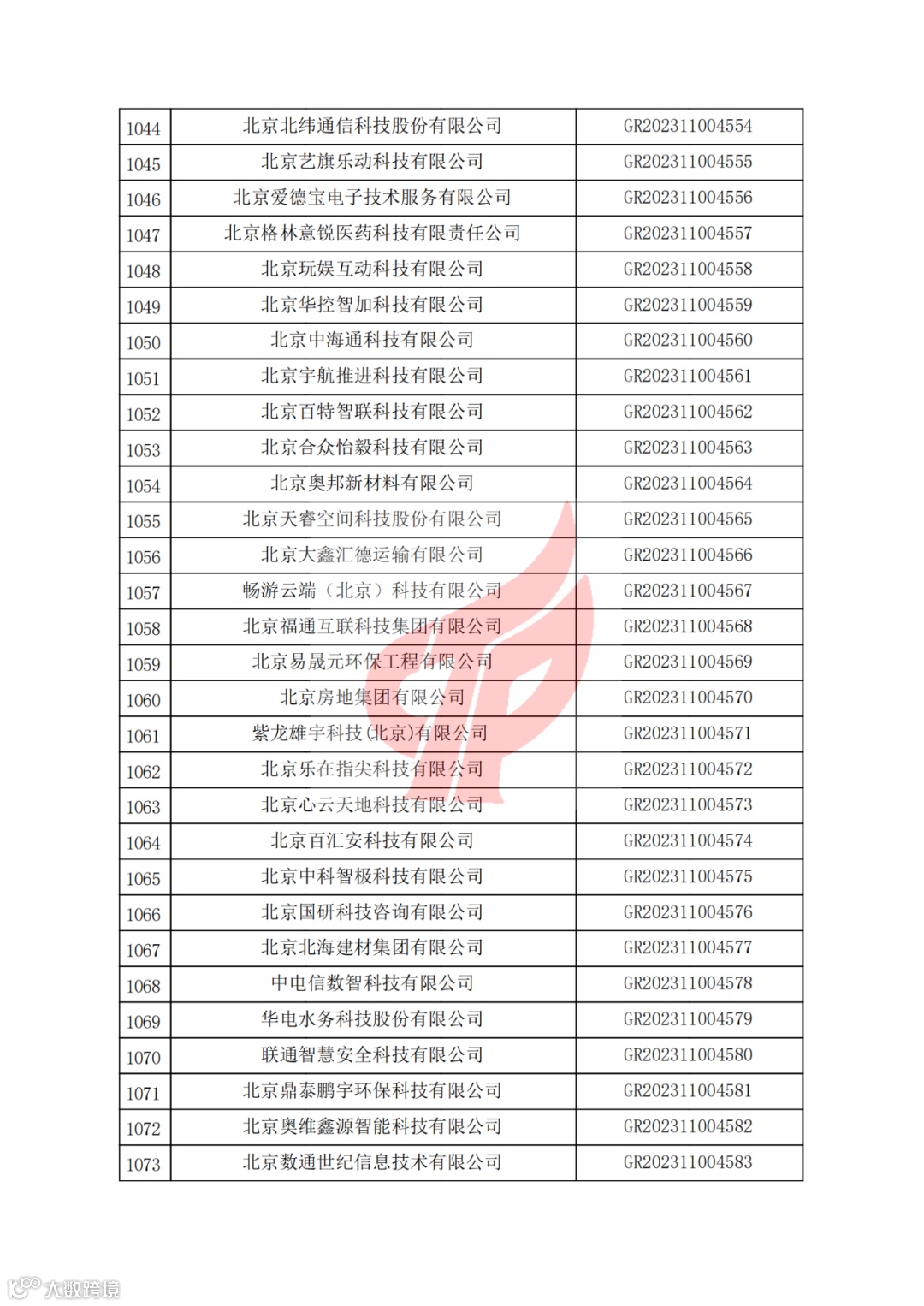 对北京市认定机构2023年认定报备的第三批高新技术企业进行备案的公告