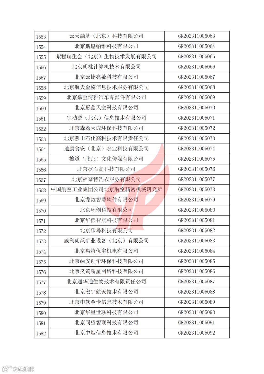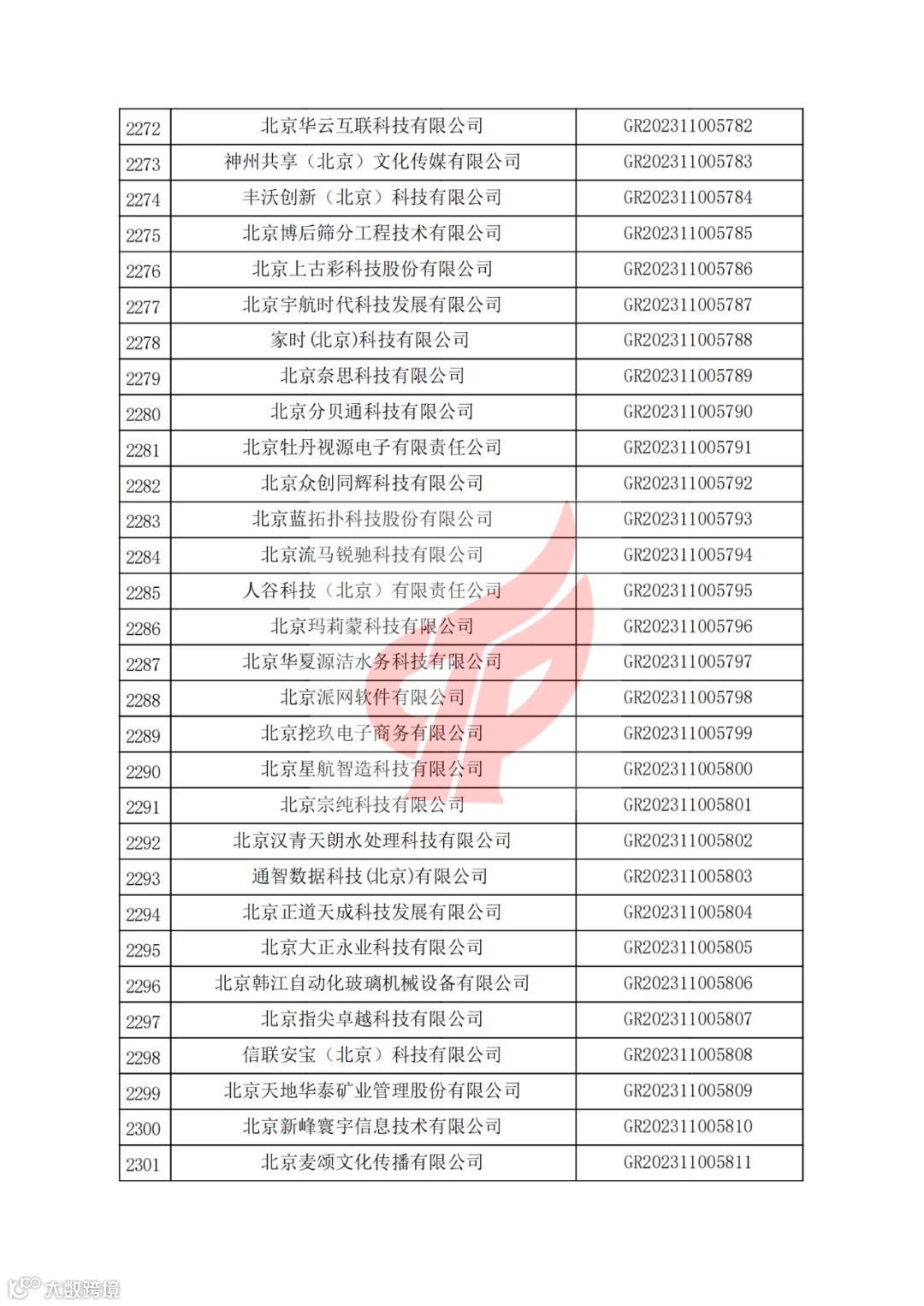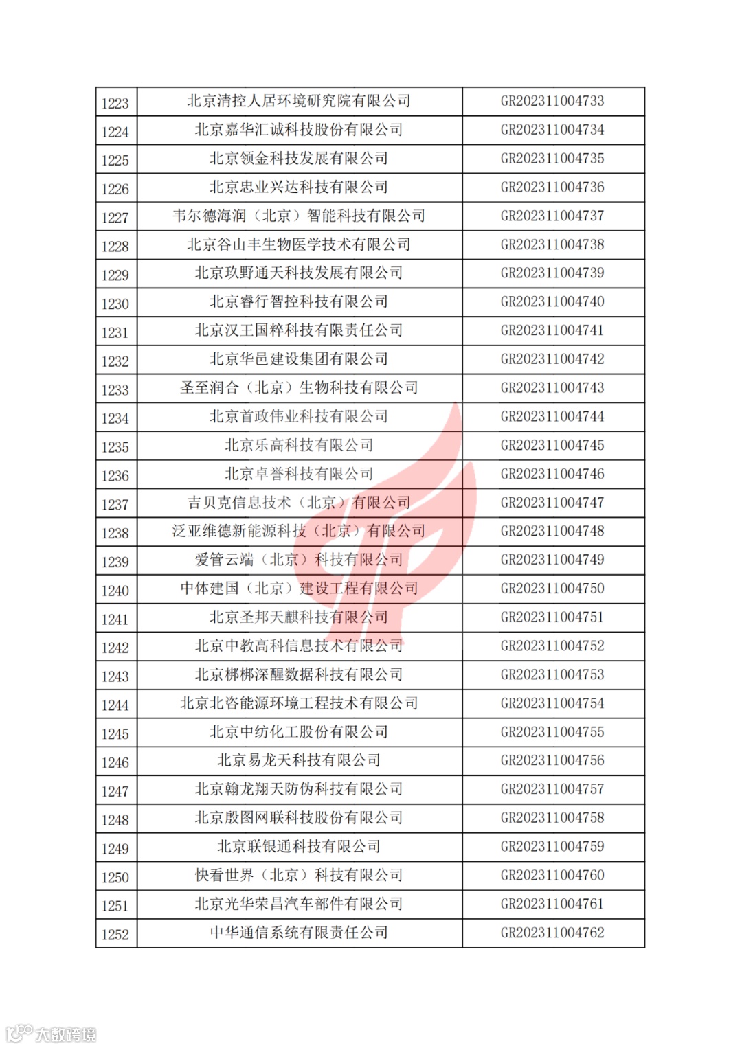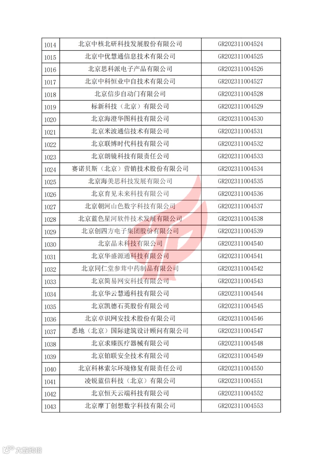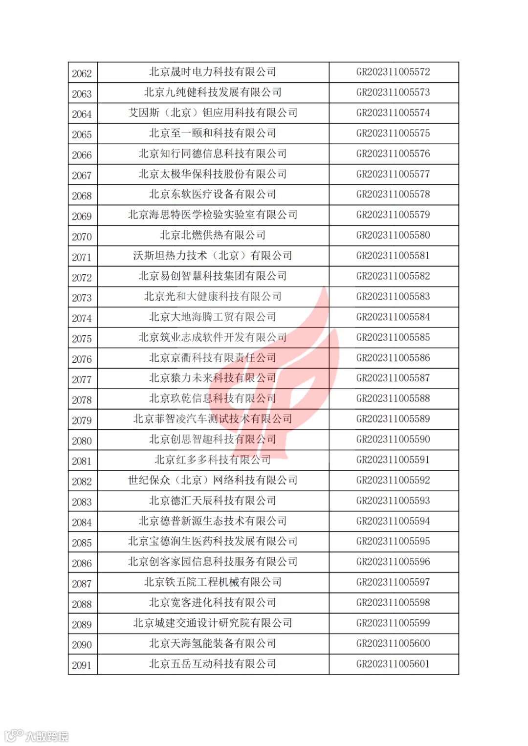 对北京市认定机构2023年认定报备的第三批高新技术企业进行备案的公告