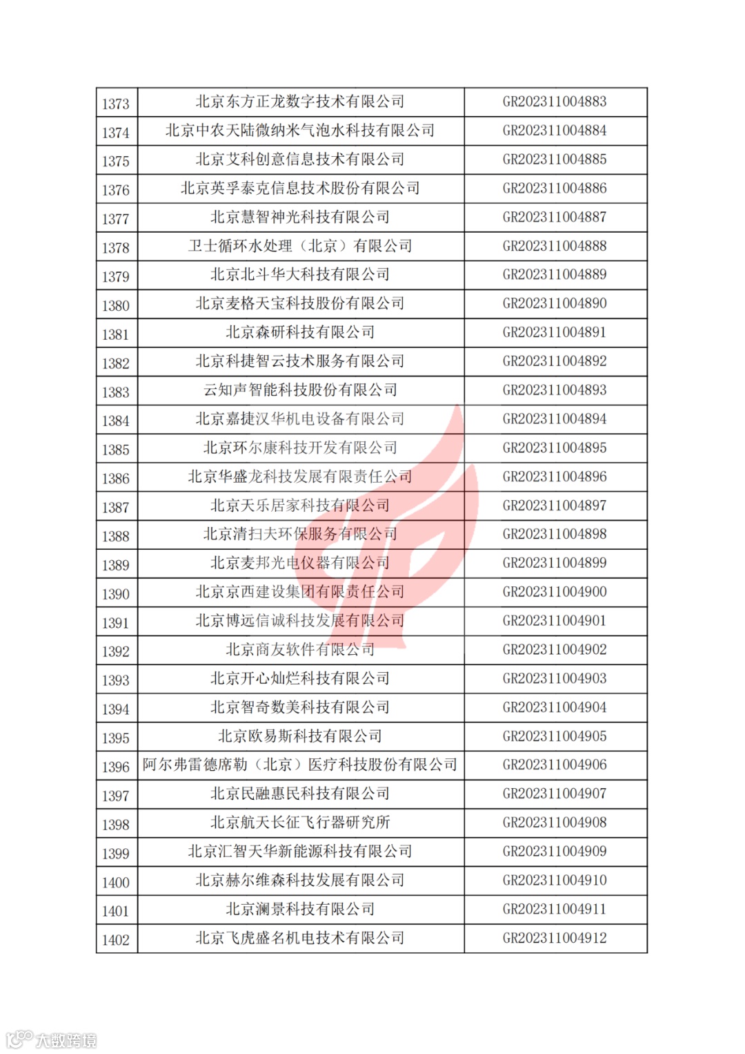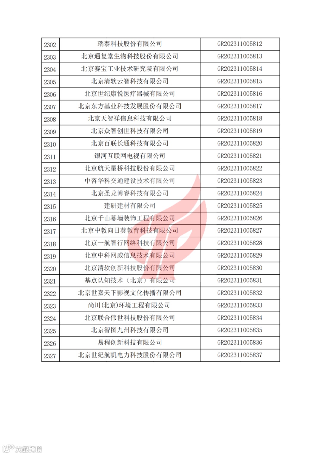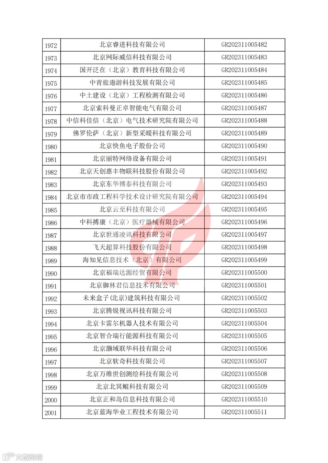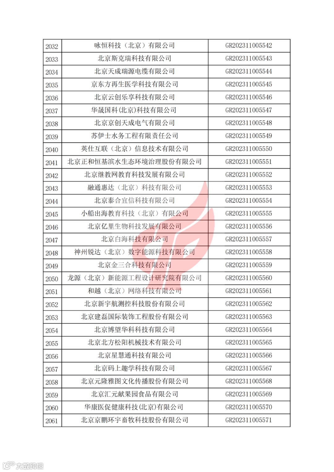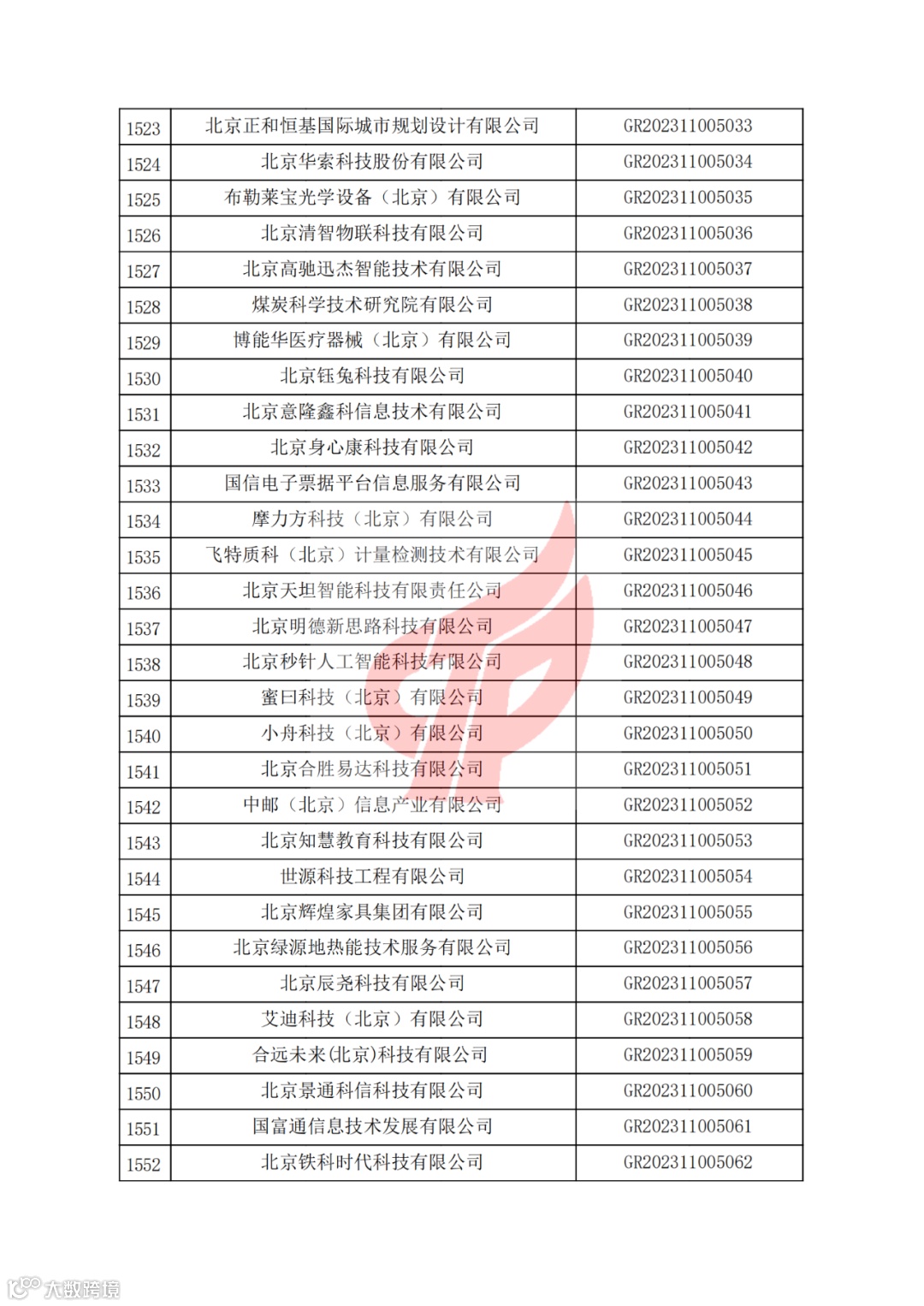 对北京市认定机构2023年认定报备的第三批高新技术企业进行备案的公告