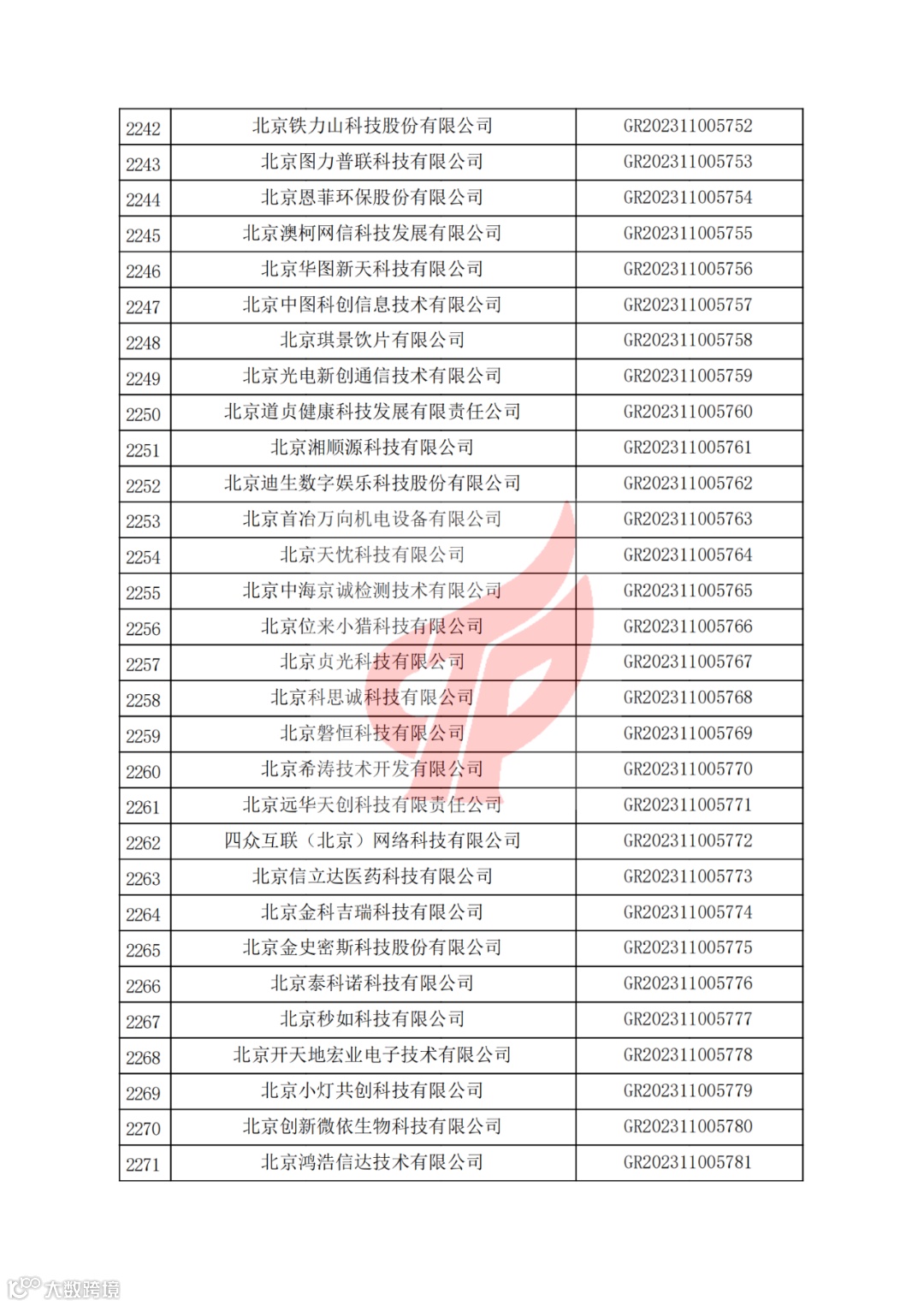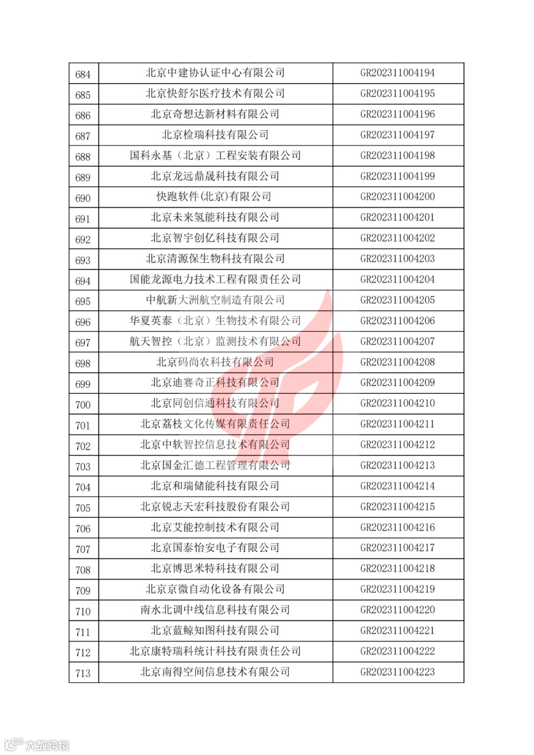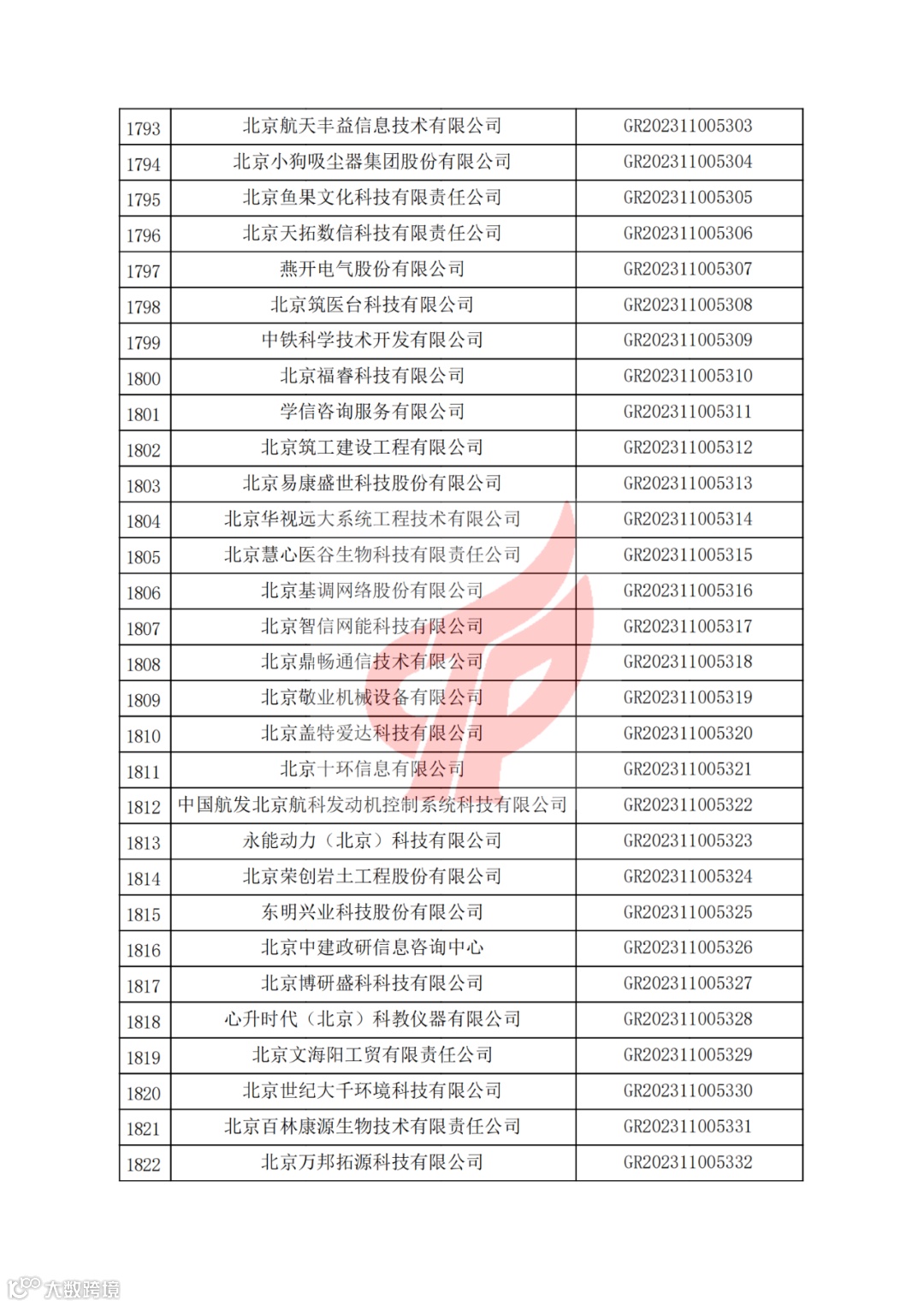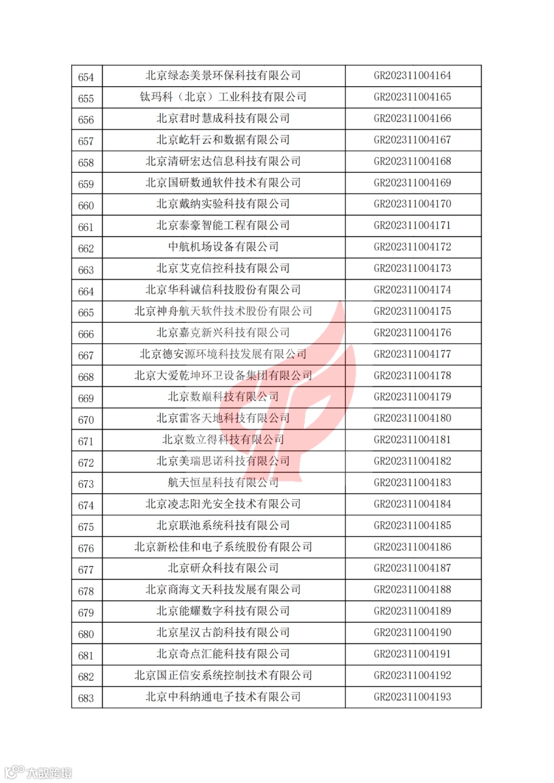 对北京市认定机构2023年认定报备的第三批高新技术企业进行备案的公告