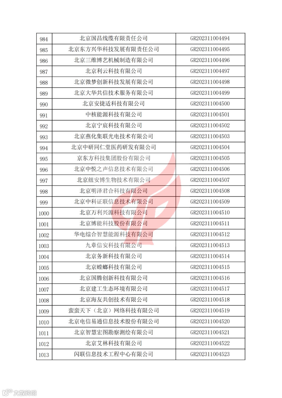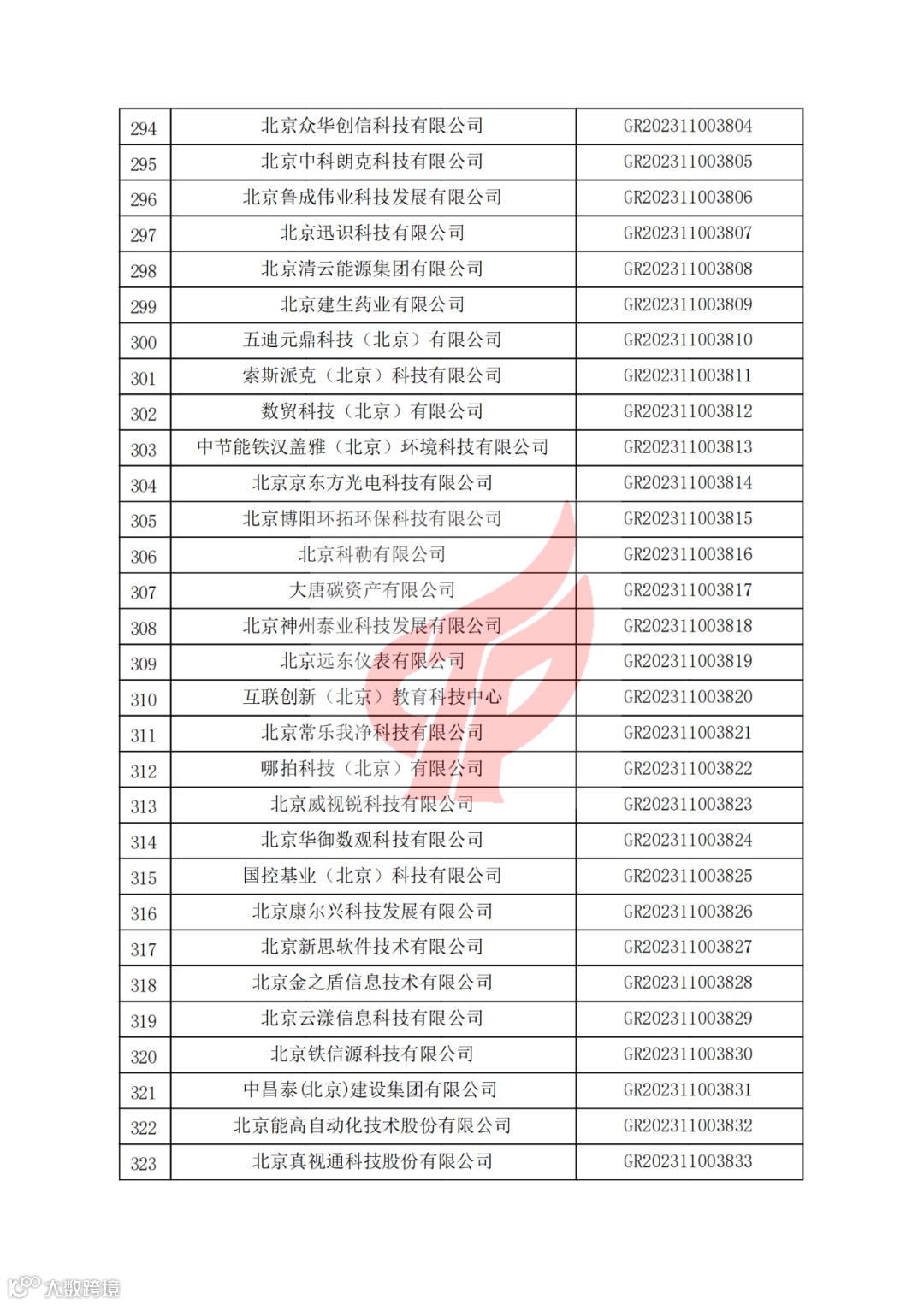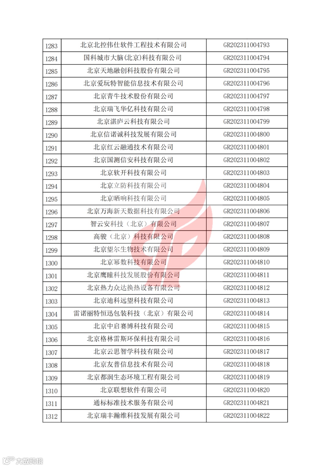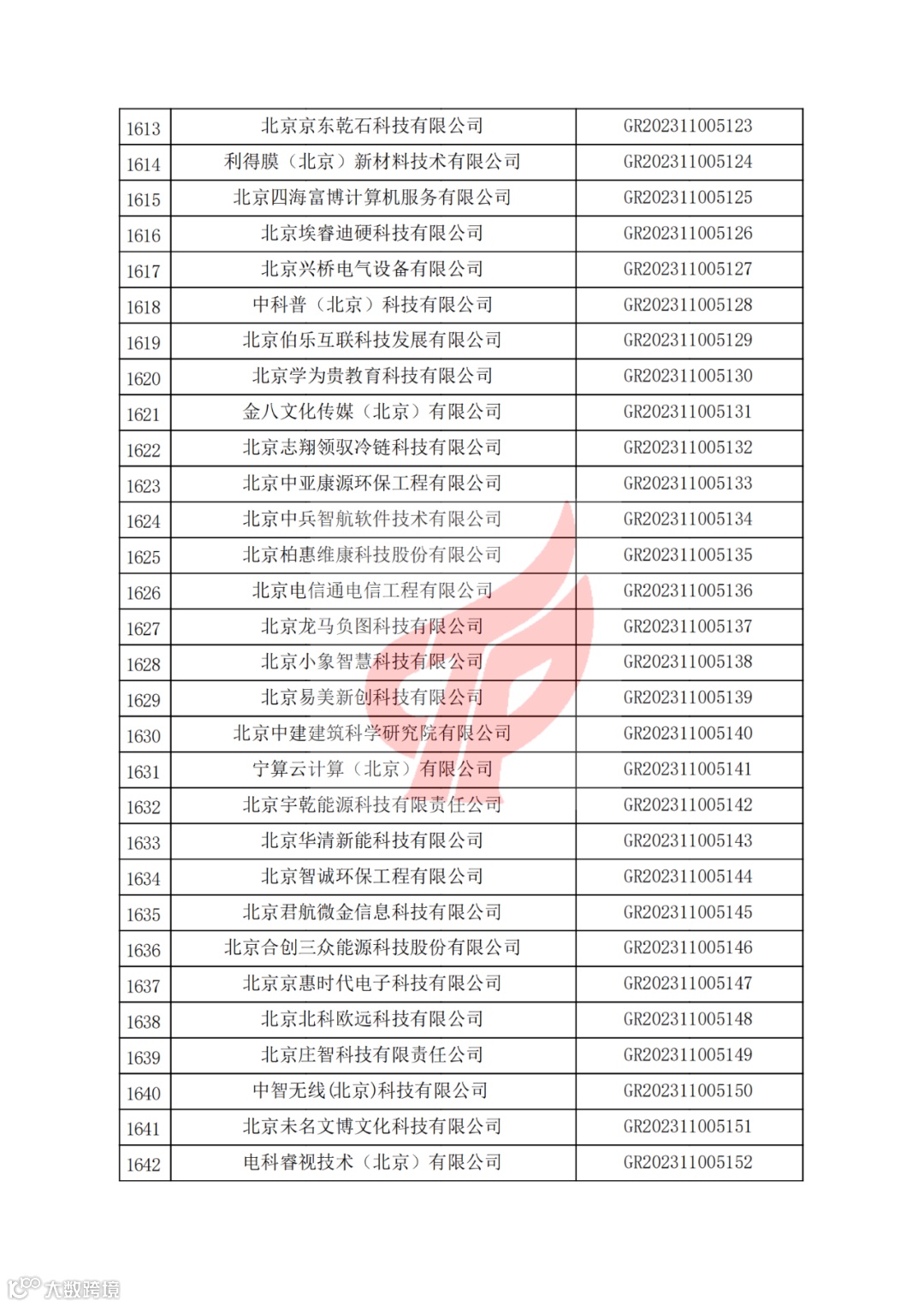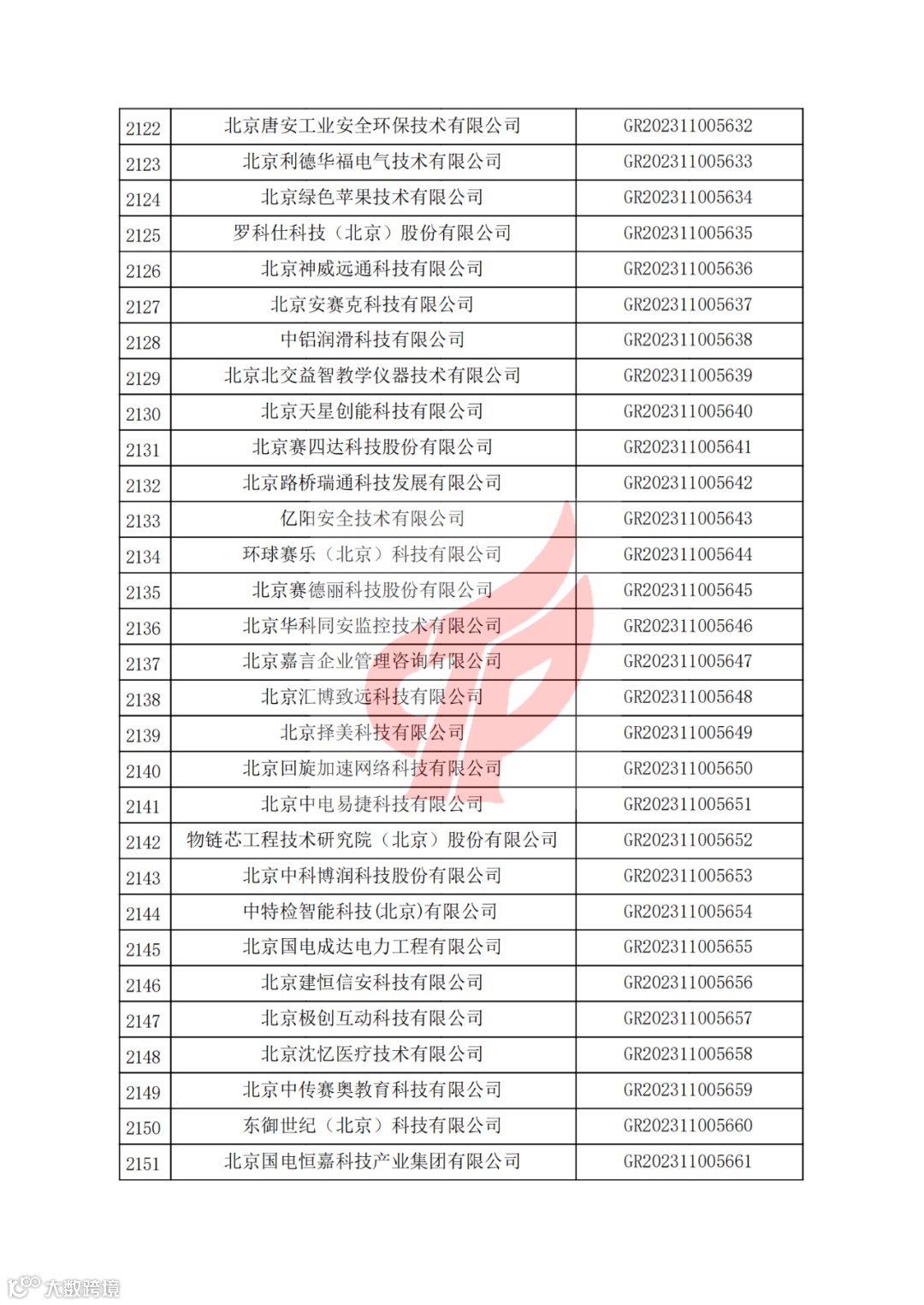 对北京市认定机构2023年认定报备的第三批高新技术企业进行备案的公告