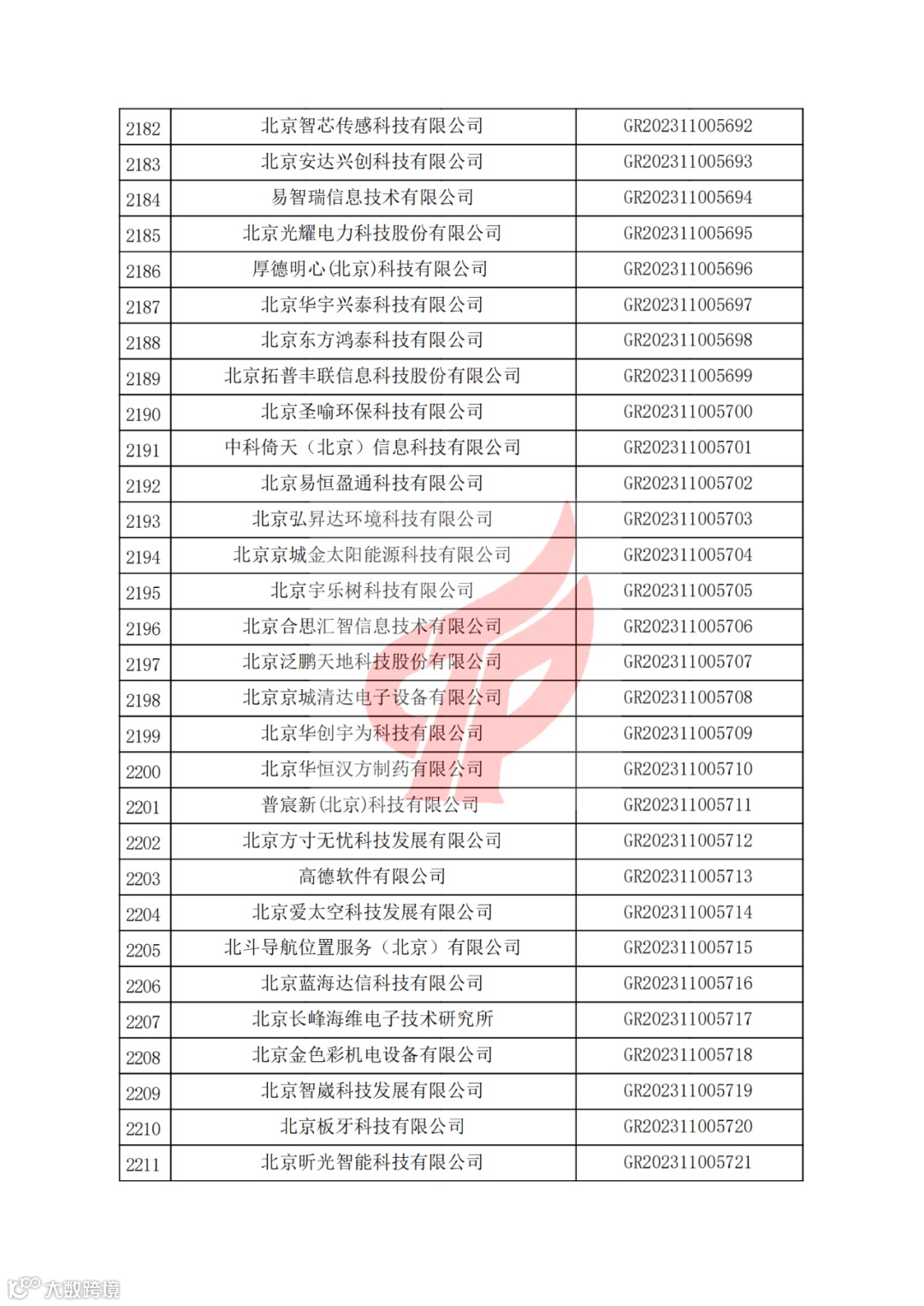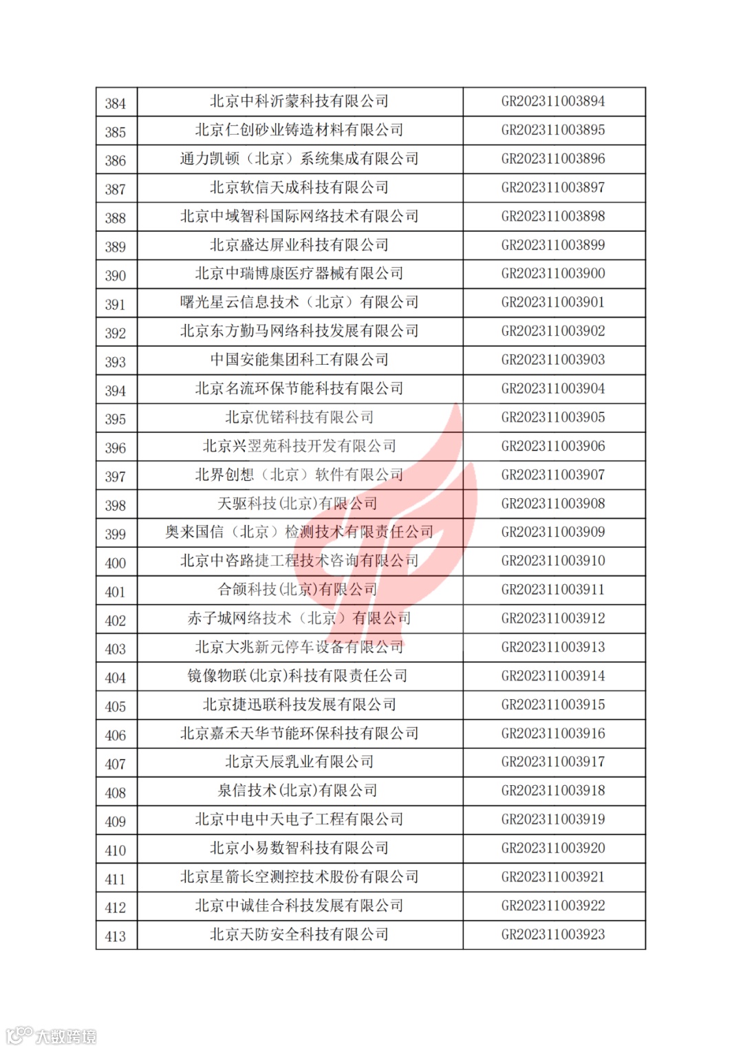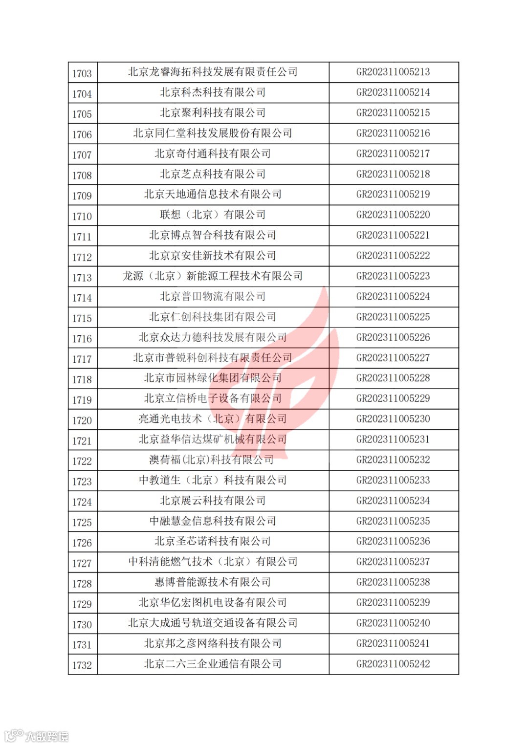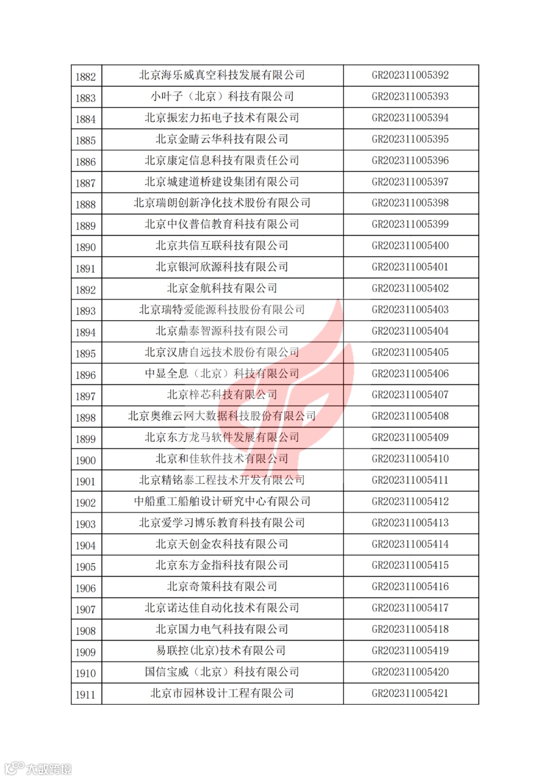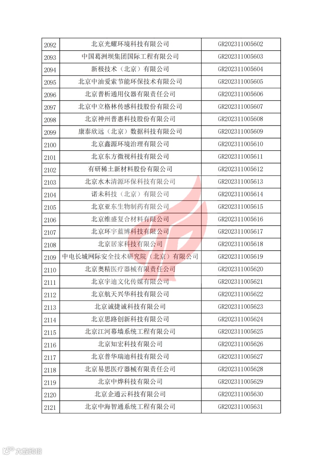 对北京市认定机构2023年认定报备的第三批高新技术企业进行备案的公告
