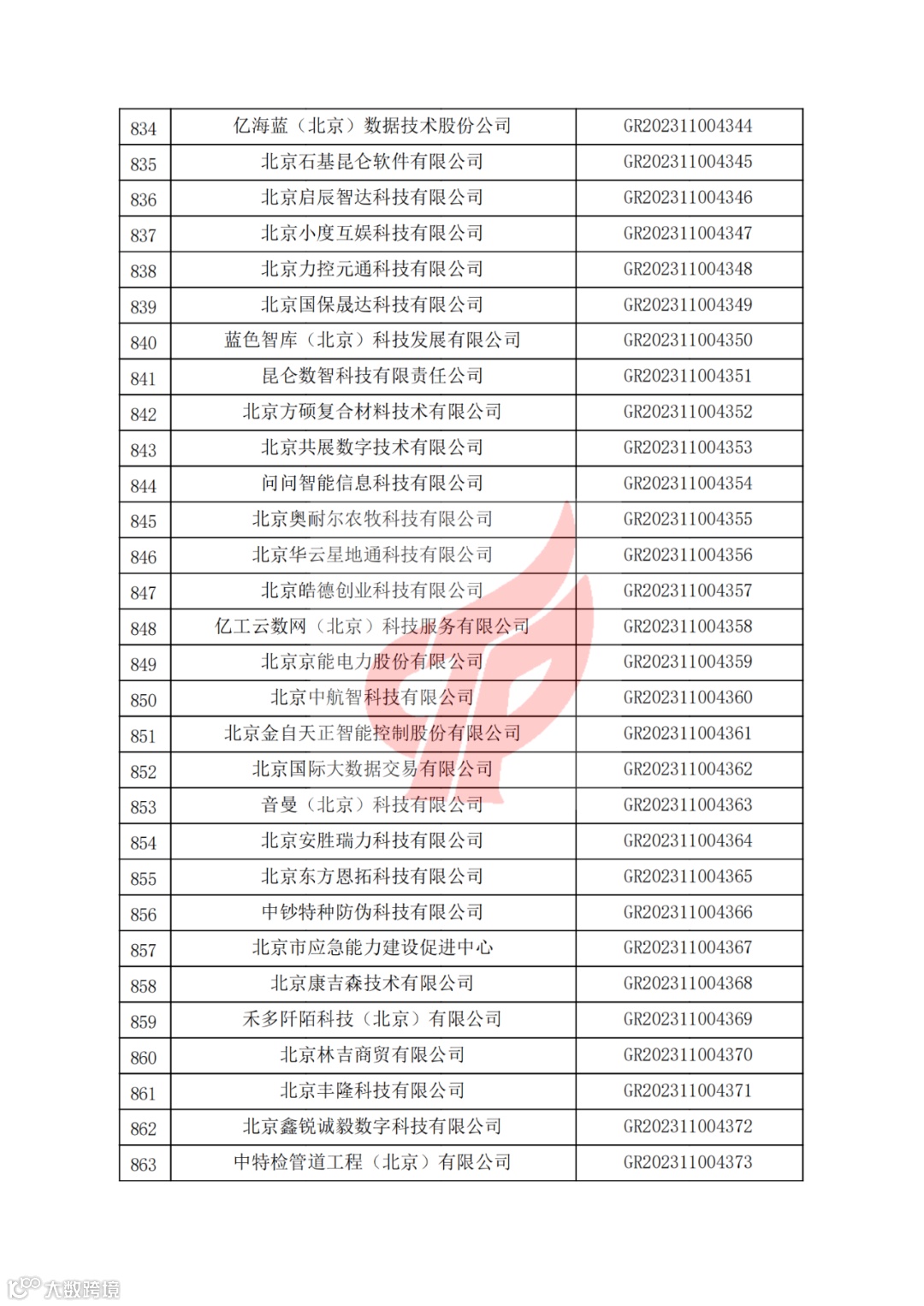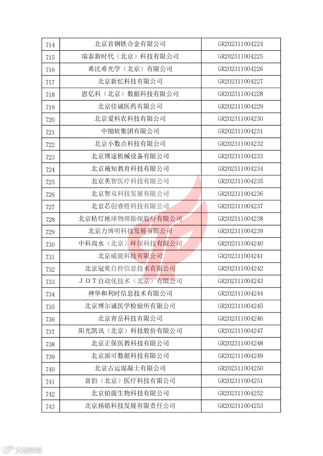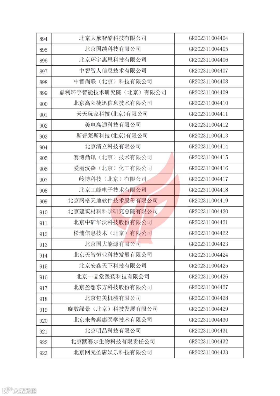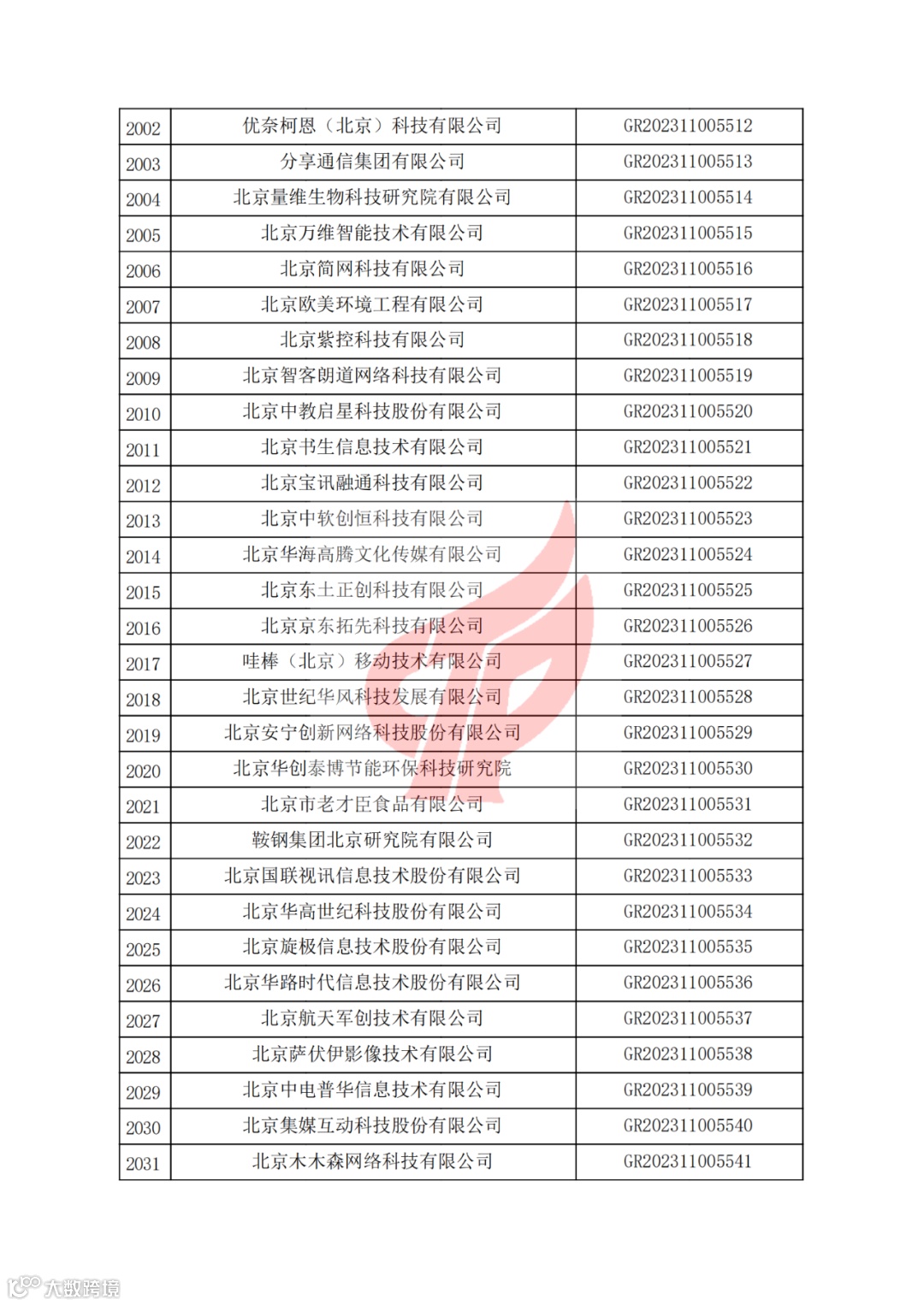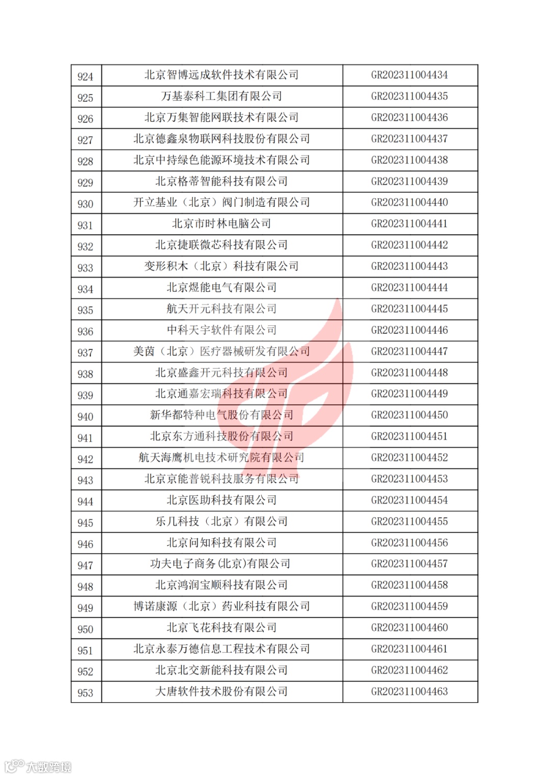 对北京市认定机构2023年认定报备的第三批高新技术企业进行备案的公告