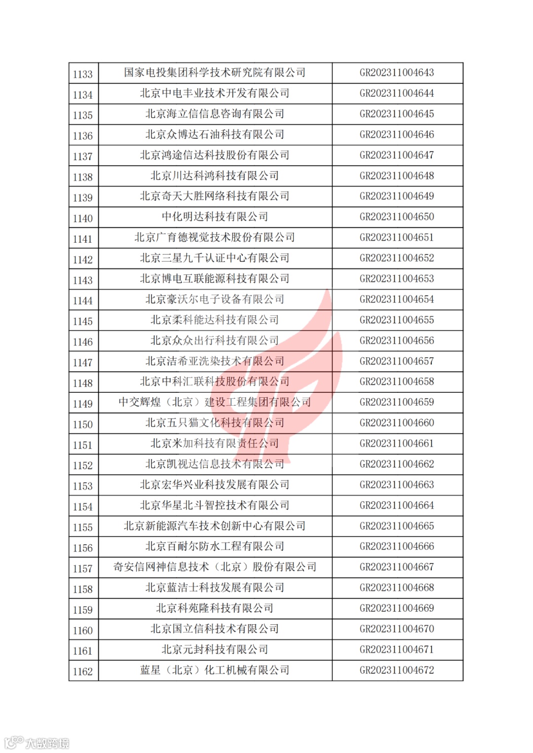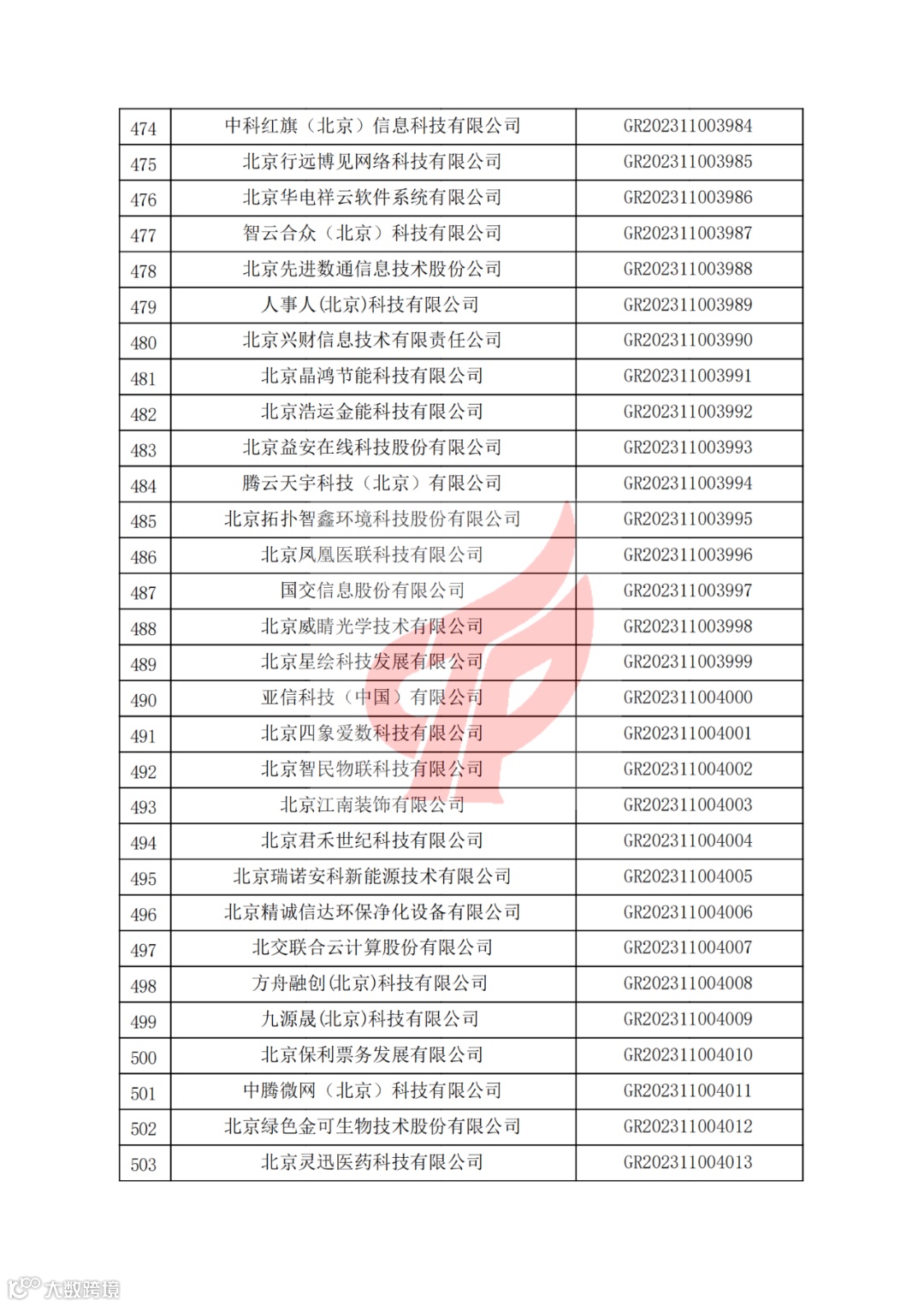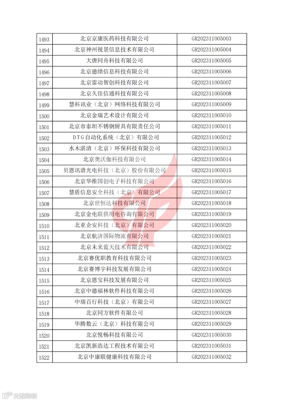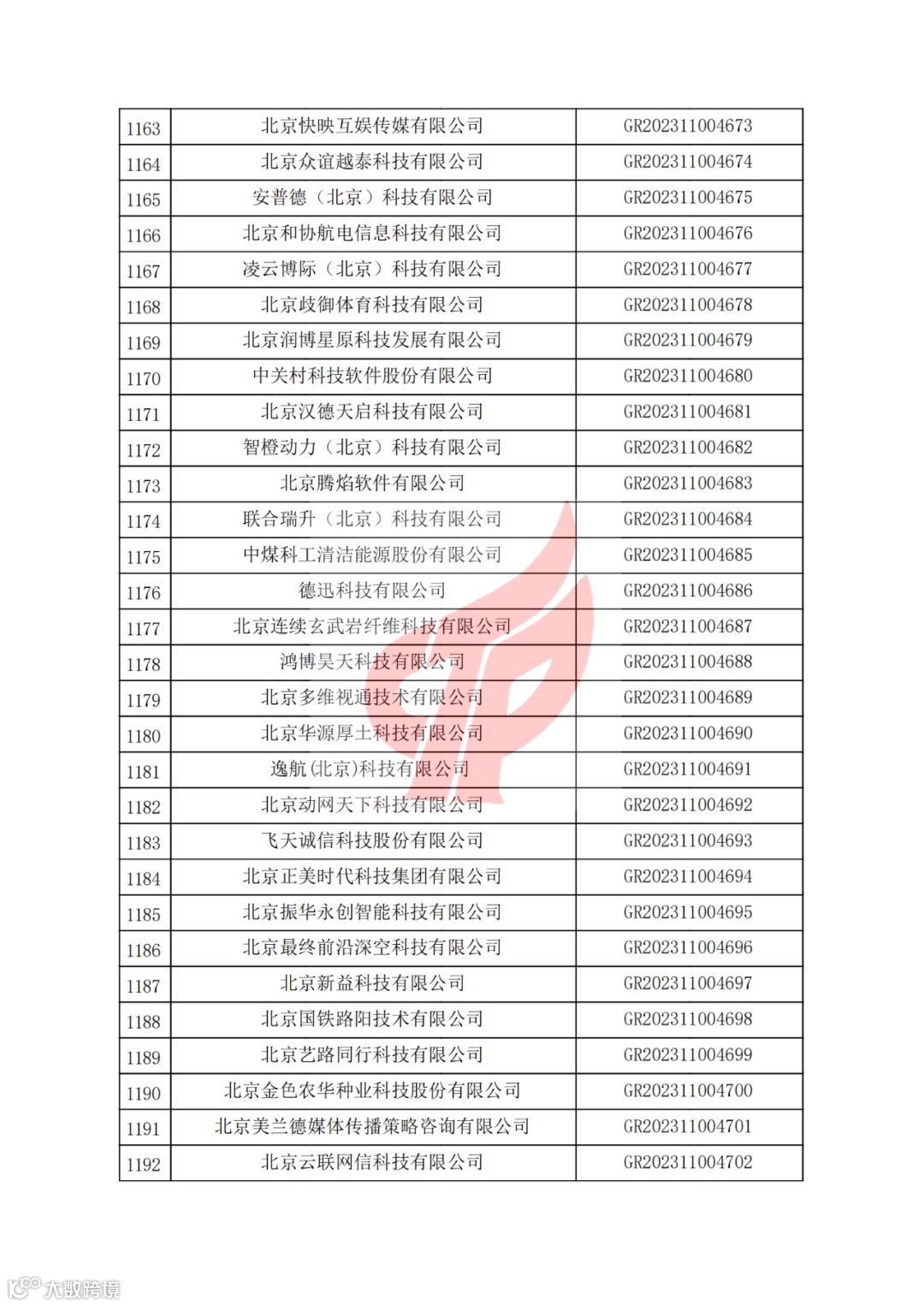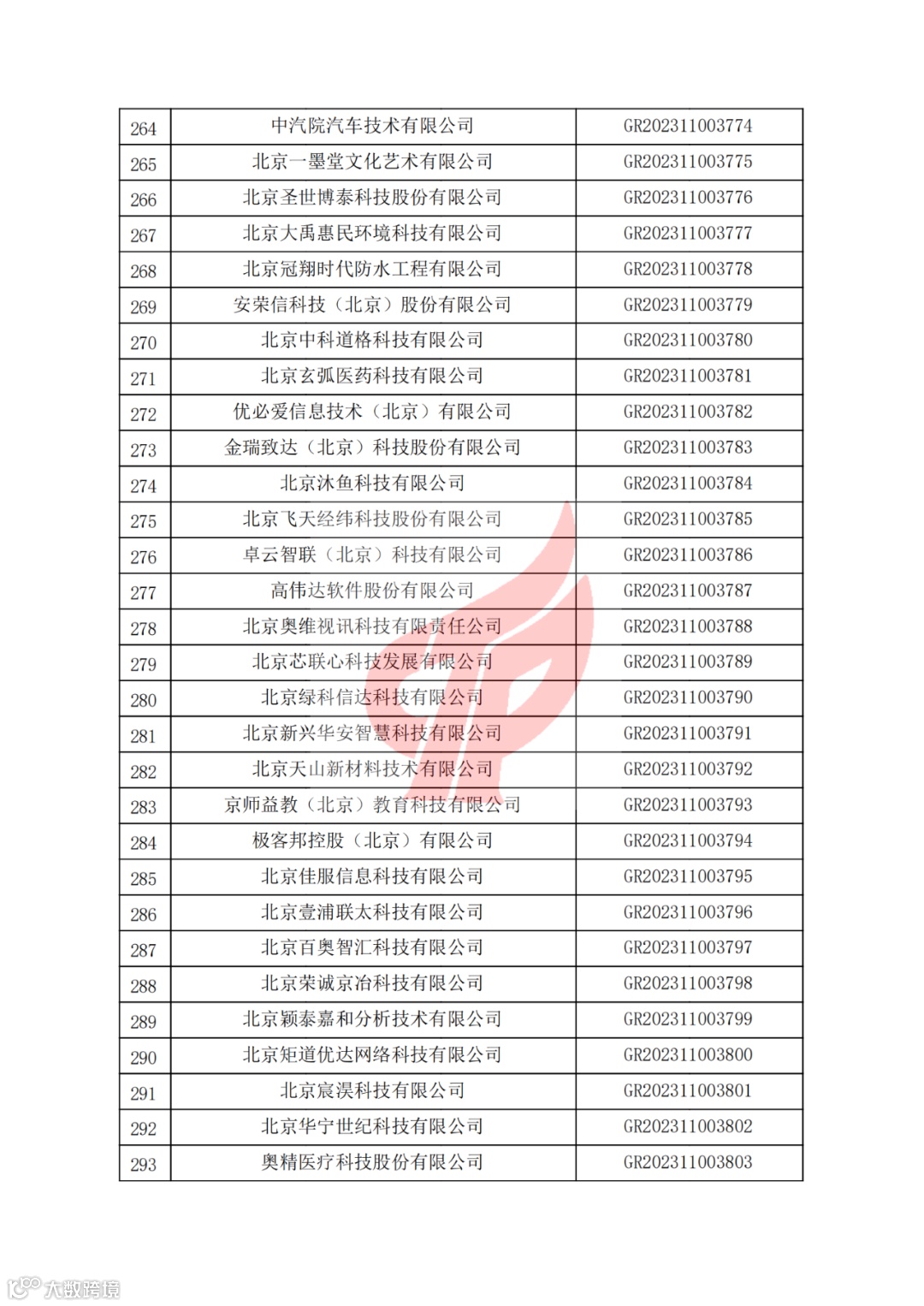 对北京市认定机构2023年认定报备的第三批高新技术企业进行备案的公告