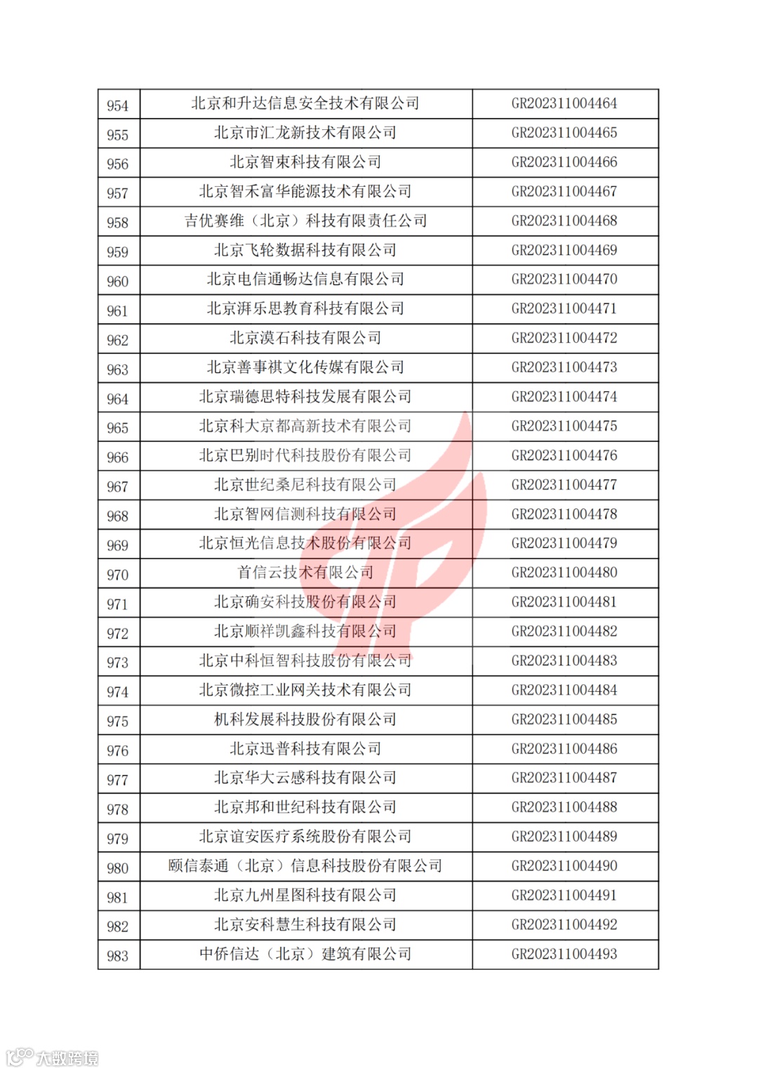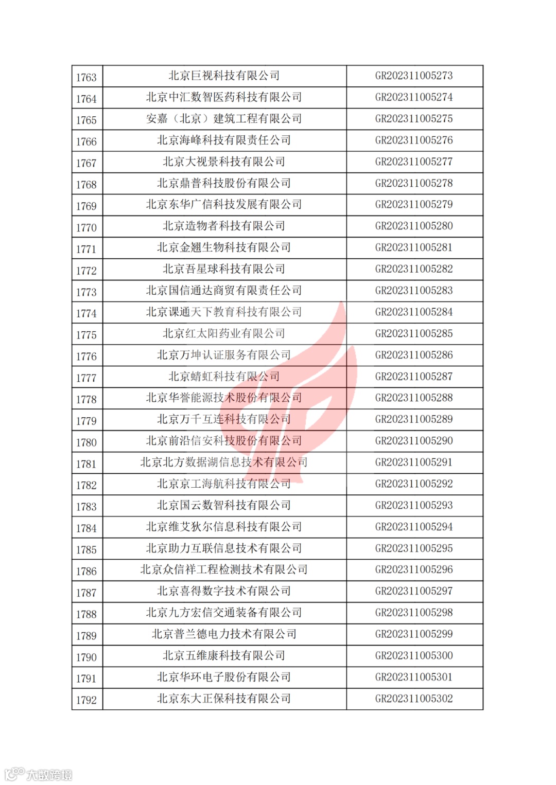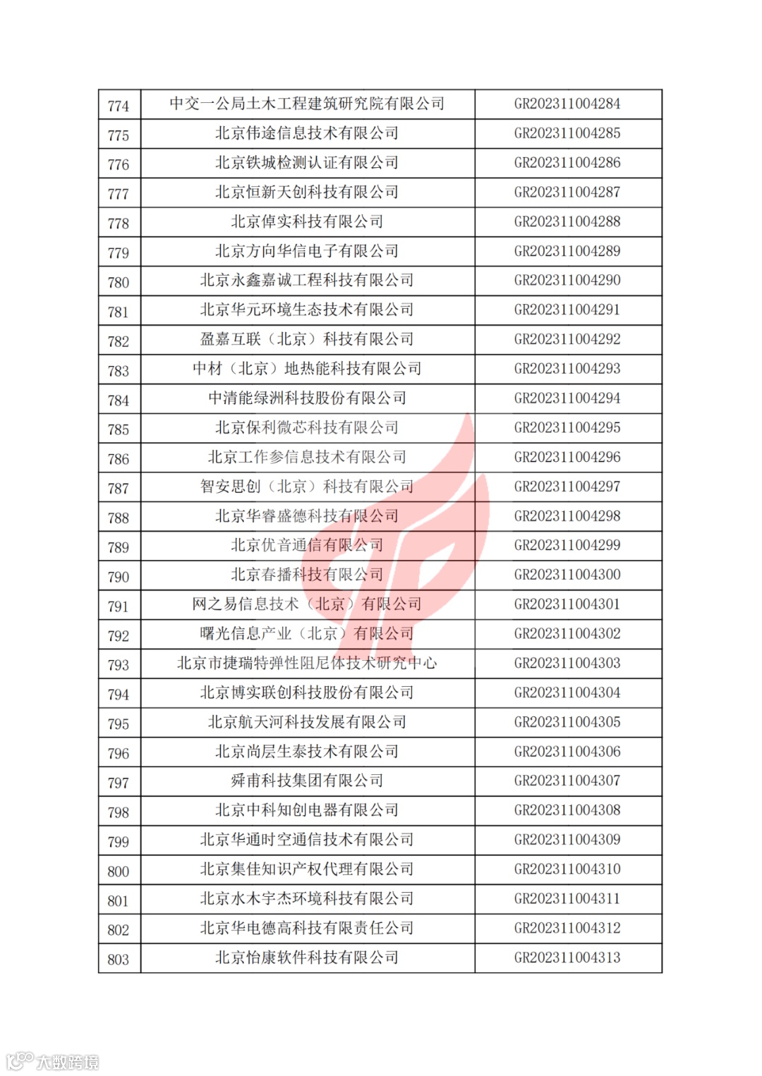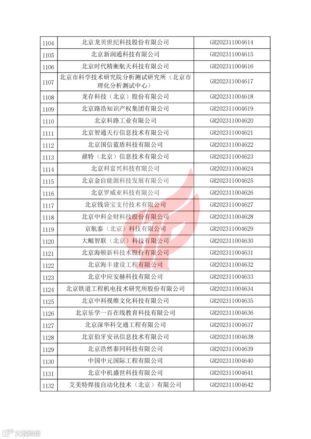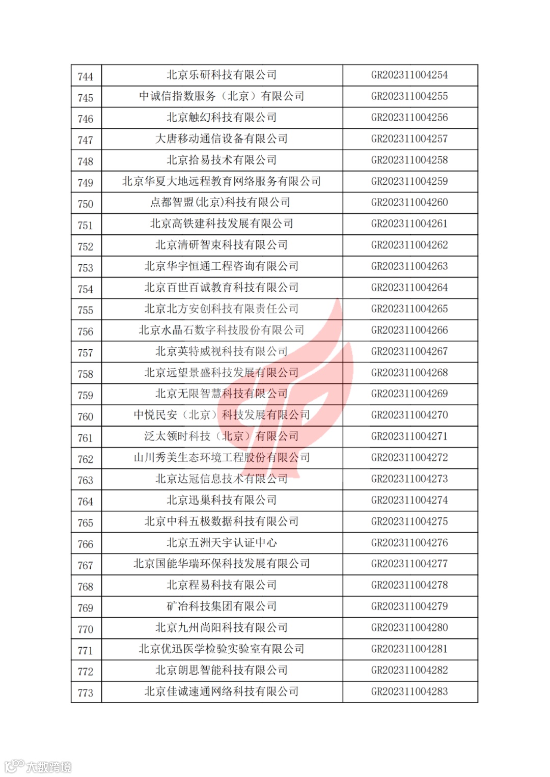对北京市认定机构2023年认定报备的第三批高新技术企业进行备案的公告