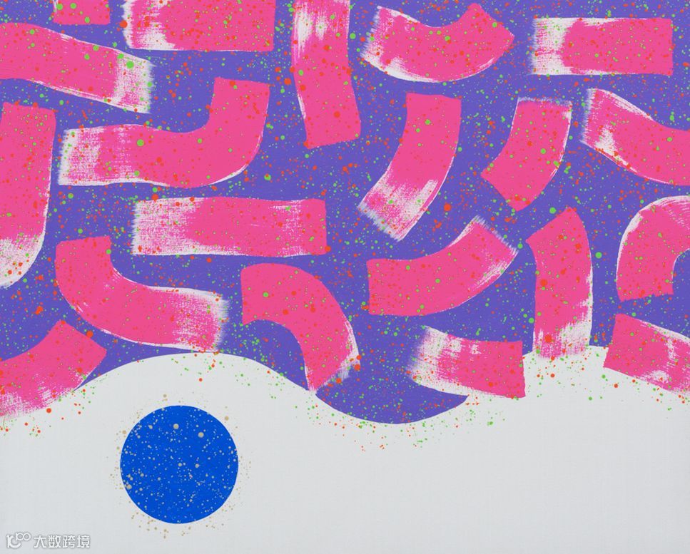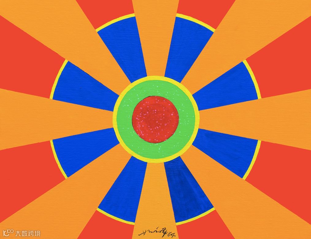 萧勤,《太阳-7》,布上压克力,100 cm x 130 cm, 1964。2017年苏富比现当代艺术晚间拍卖以1,500,000港币(含买家佣金)成交