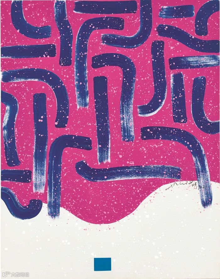 萧勤,《光之跃动-17》, 布上亚克力, 110 cm x 140 cm, 1963,2017年苏富比香港秋拍以5,980,000港币(含买家佣金)成交