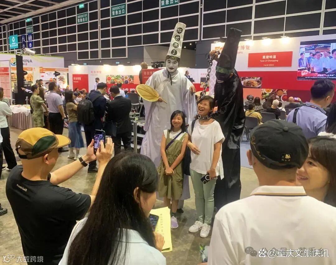 甚至还有演员化身NPC前来助力展位,他们以生动有趣、别出心裁的方式与观众欢乐互动,大大增强了丰都美食的吸引力。“来香港会展参加美食大会,走到重庆丰都的展位来品尝麻辣鸡,好多食品真是好吃得不得了!以后有机会我一定会约上好友去重庆丰都玩一玩,尽情品尝更多的丰都美味。”香港市民张强兴奋地说道。