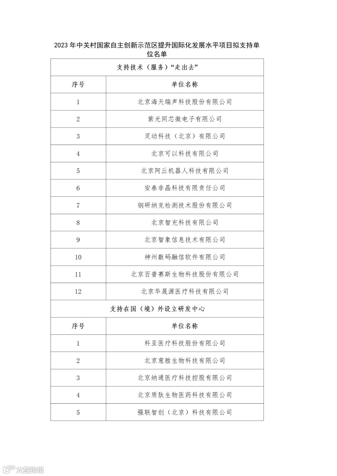 关于公示2023年中关村国家自主创新示范区提升国际化发展水平项目拟支持单位的通知