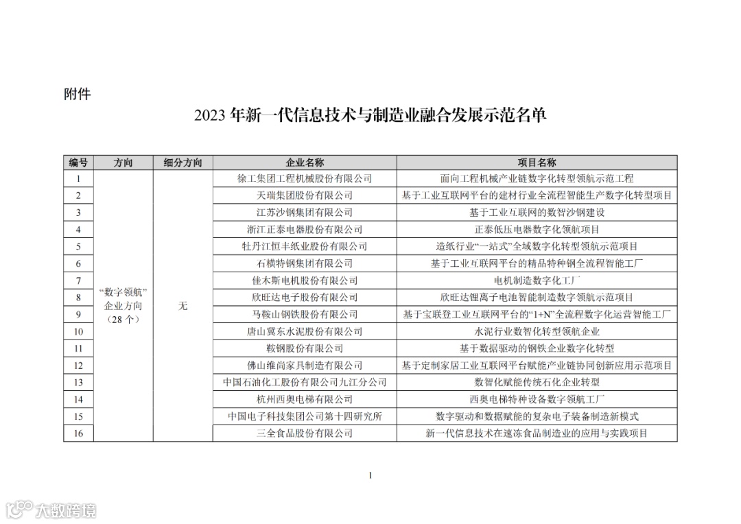 附件:2023年新一代信息技术与制造业融合发展示范名单