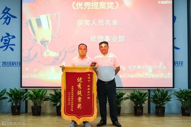 天鹅厂区纸塑事业部生产部凭借创新提案,实现工艺优化、外观提升与降本增效,荣获优秀提案奖。他们以创新驱动发展,以实效回馈公司,为凯成注入源源不断的创新动能。