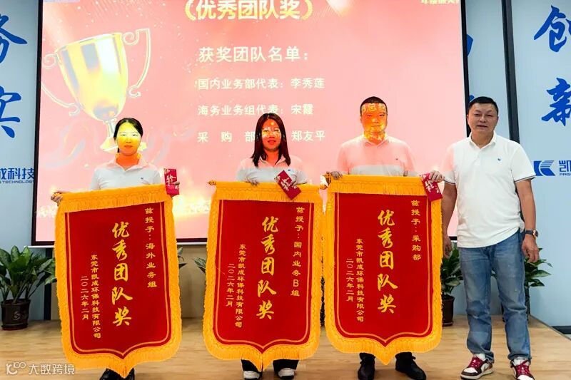 天鹅厂区国内业务 B 组、海外业务组、采购部获评优秀团队。田新厂区国内业务部 C 组、海外业务部荣获优秀团队称号。他们以协作赢信任,以实干创佳绩,展现出凯成团队的专业素养与集体力量。