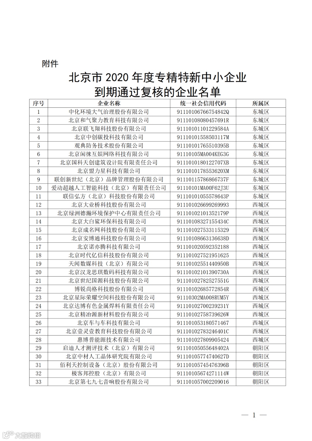 附件:北京市2020年度专精特新中小企业到期通过复核的企业名单