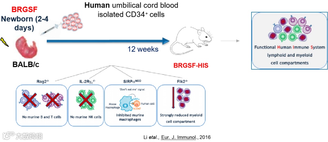 图4:在BRGSF小鼠上进行免疫系统人源化重建流程