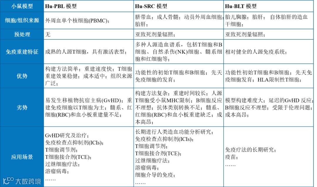 表1:免疫系统人源化小鼠模型构建策略及特征1