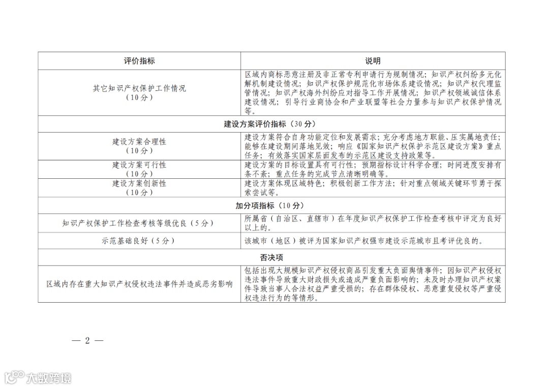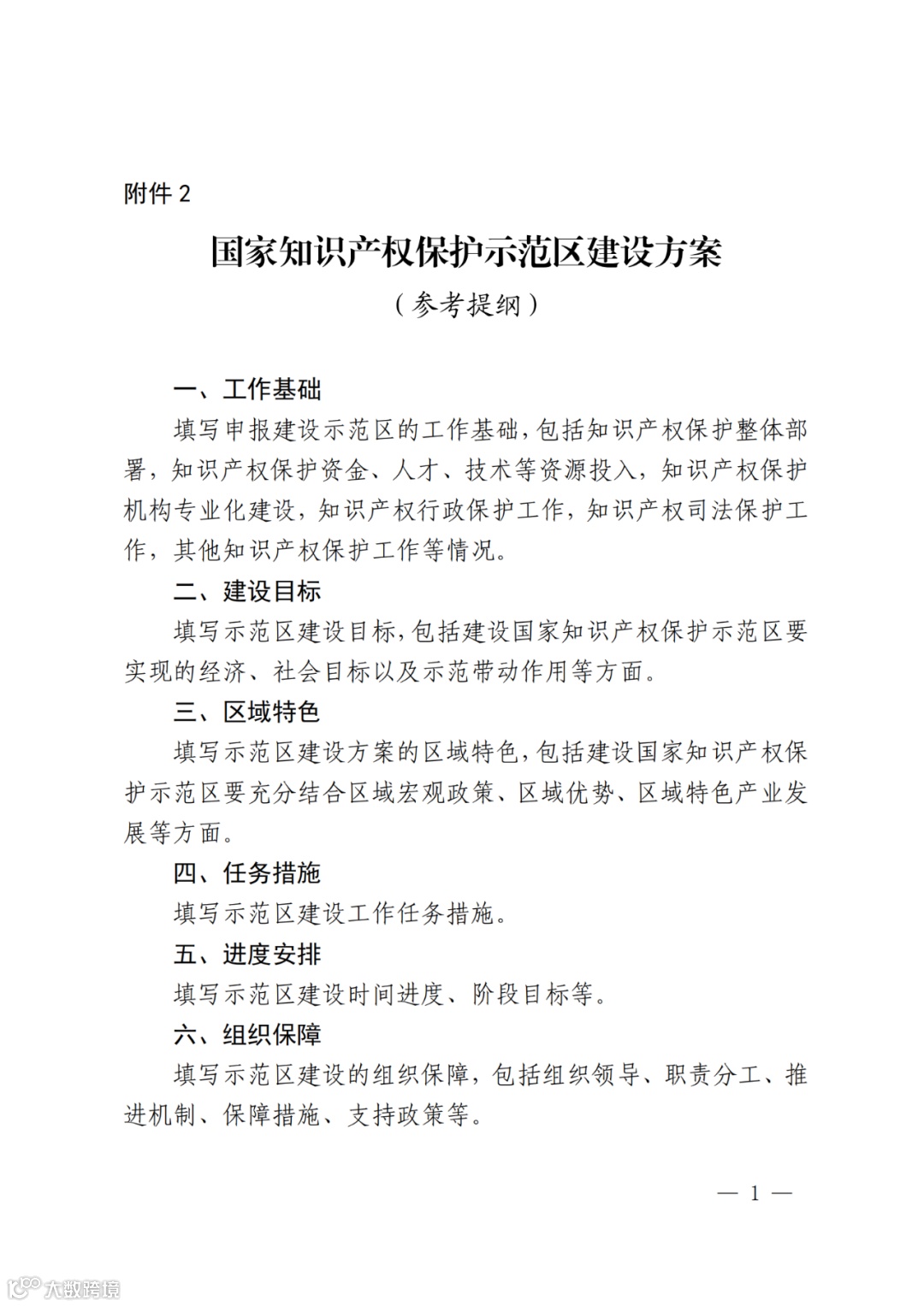2. 国家知识产权保护示范区建设方案(参考提纲)