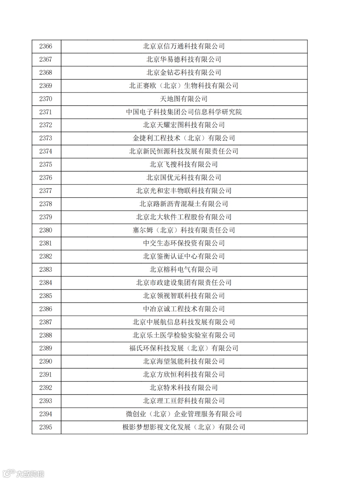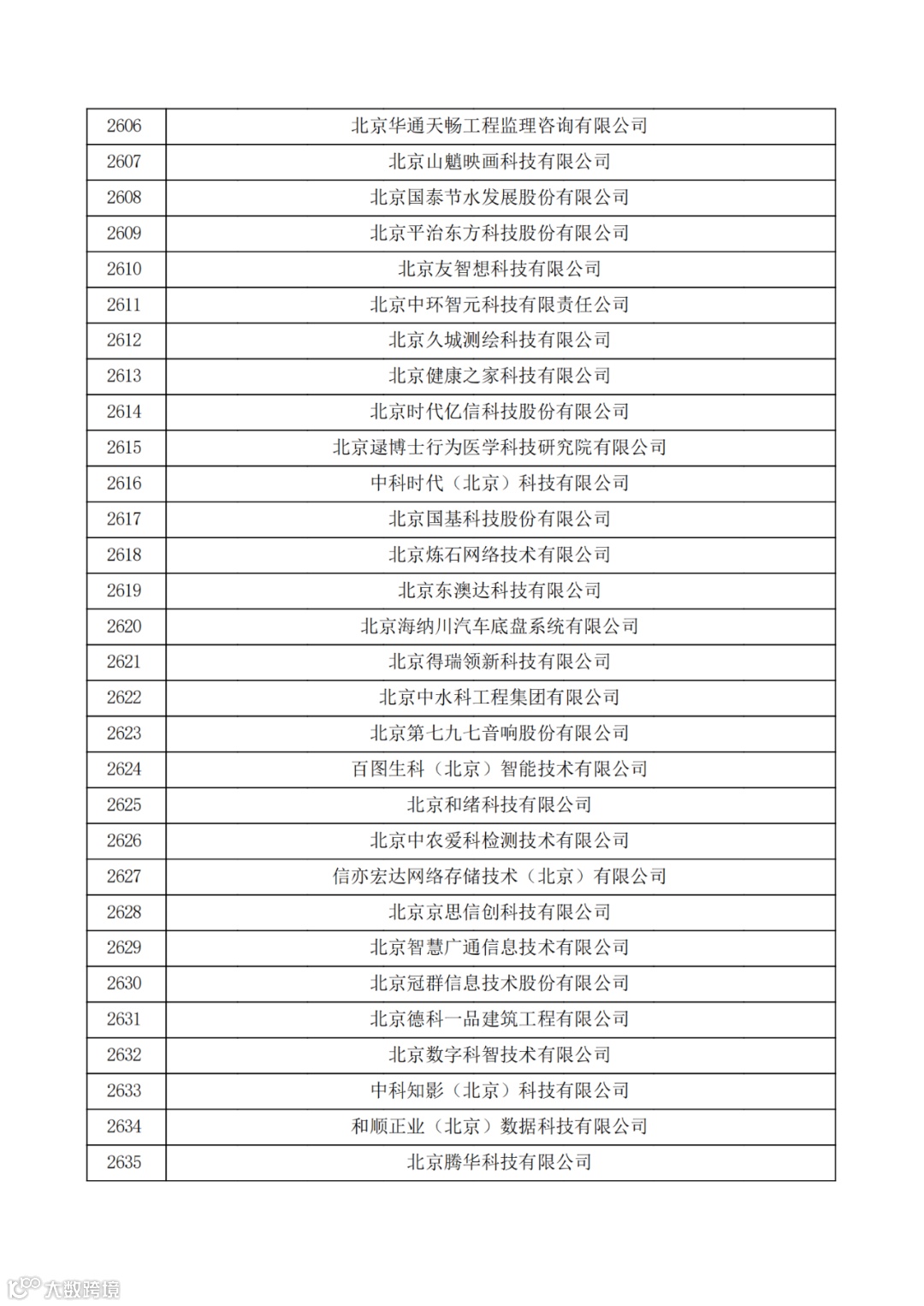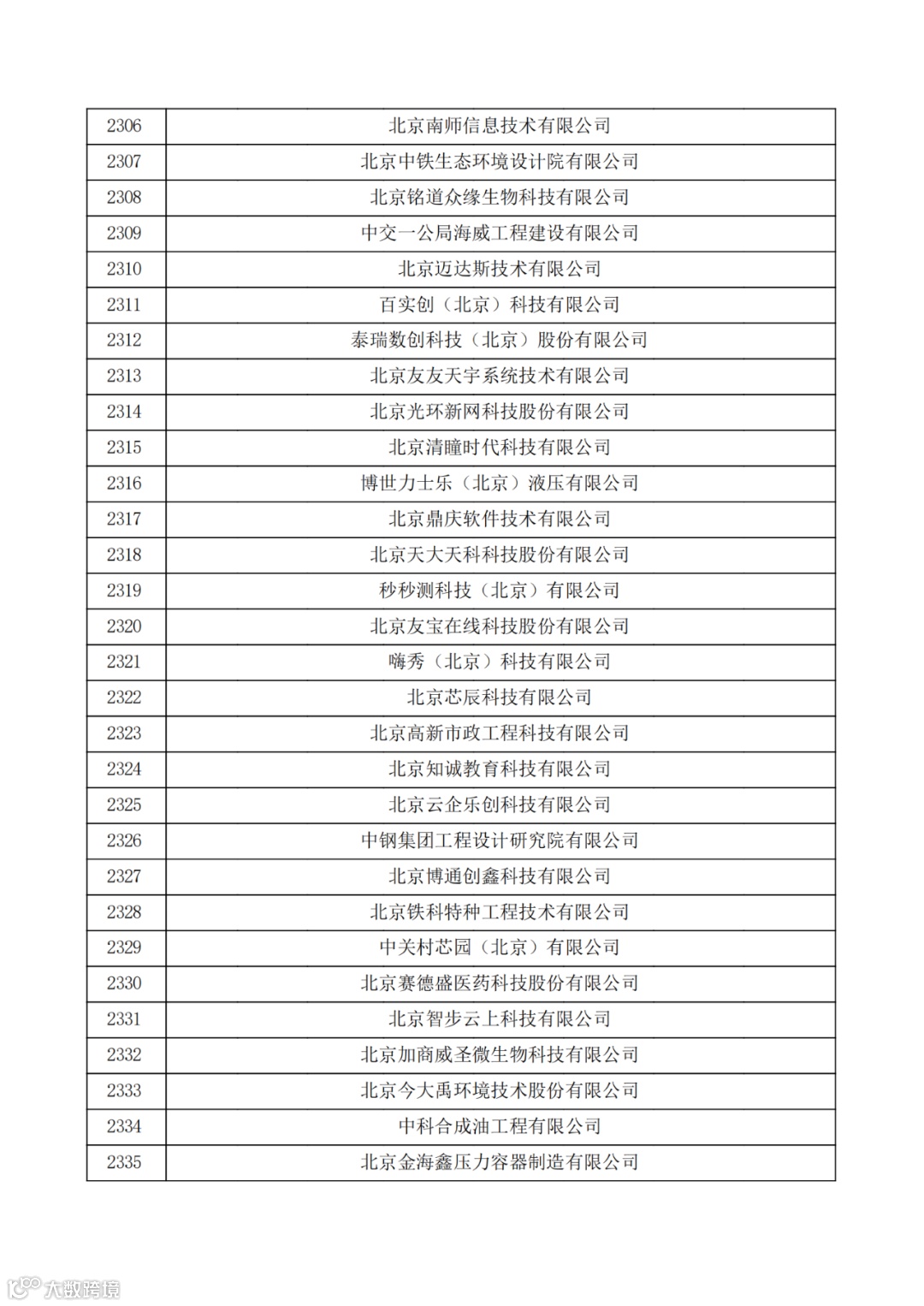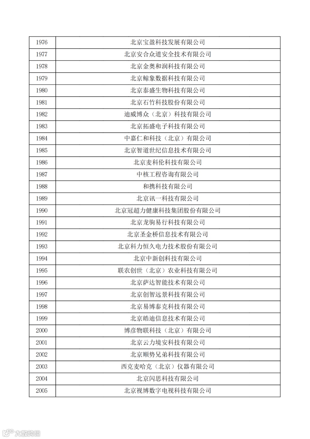 对北京市认定机构2023年认定报备的第二批高新技术企业拟进行备案的公示