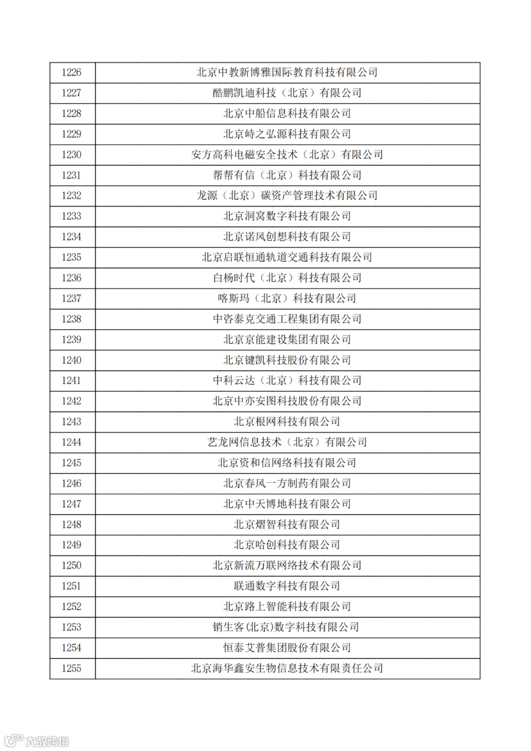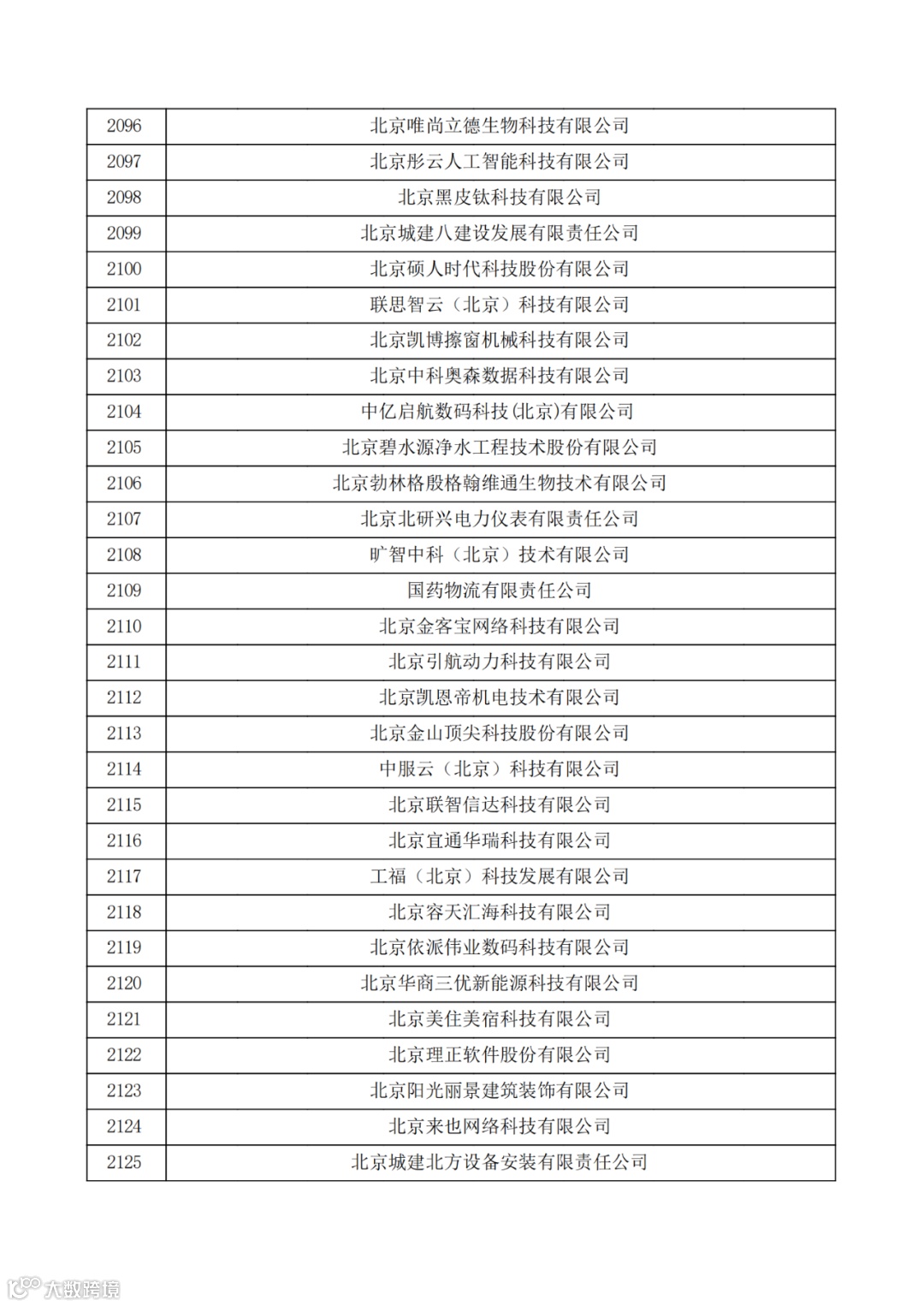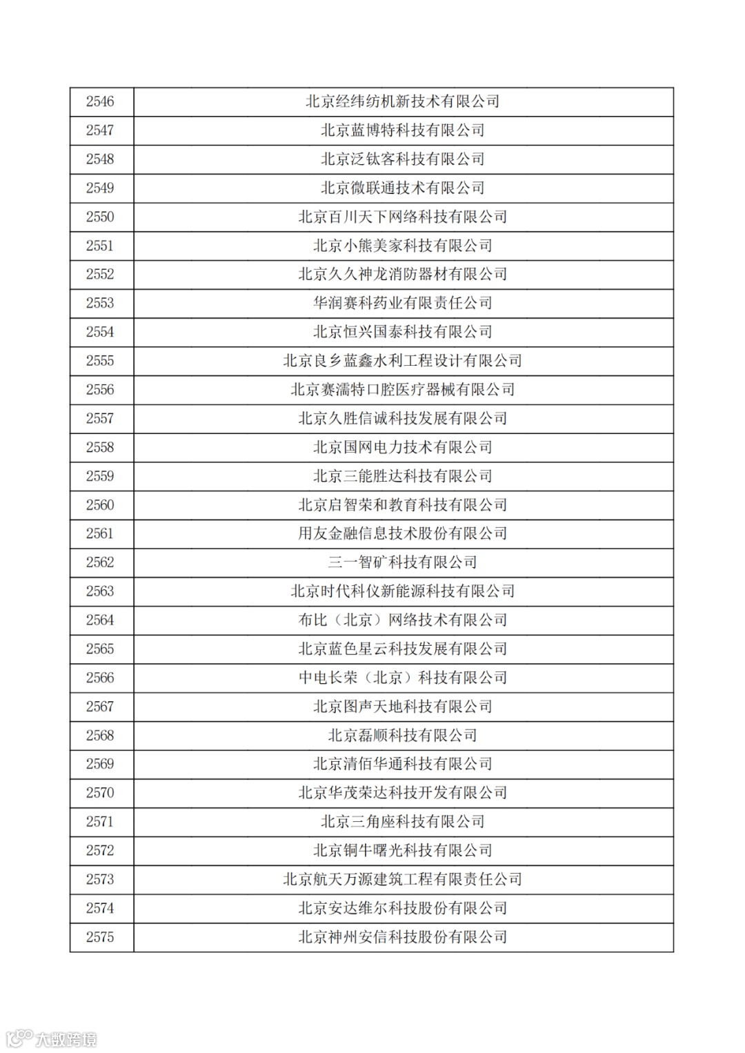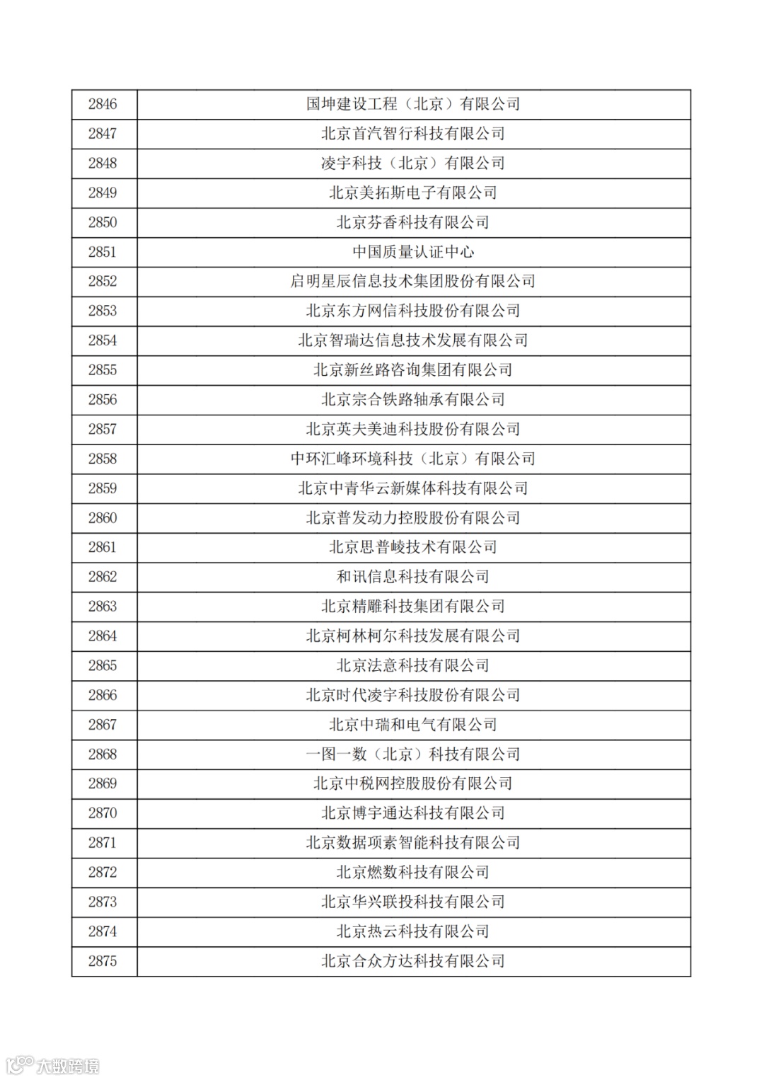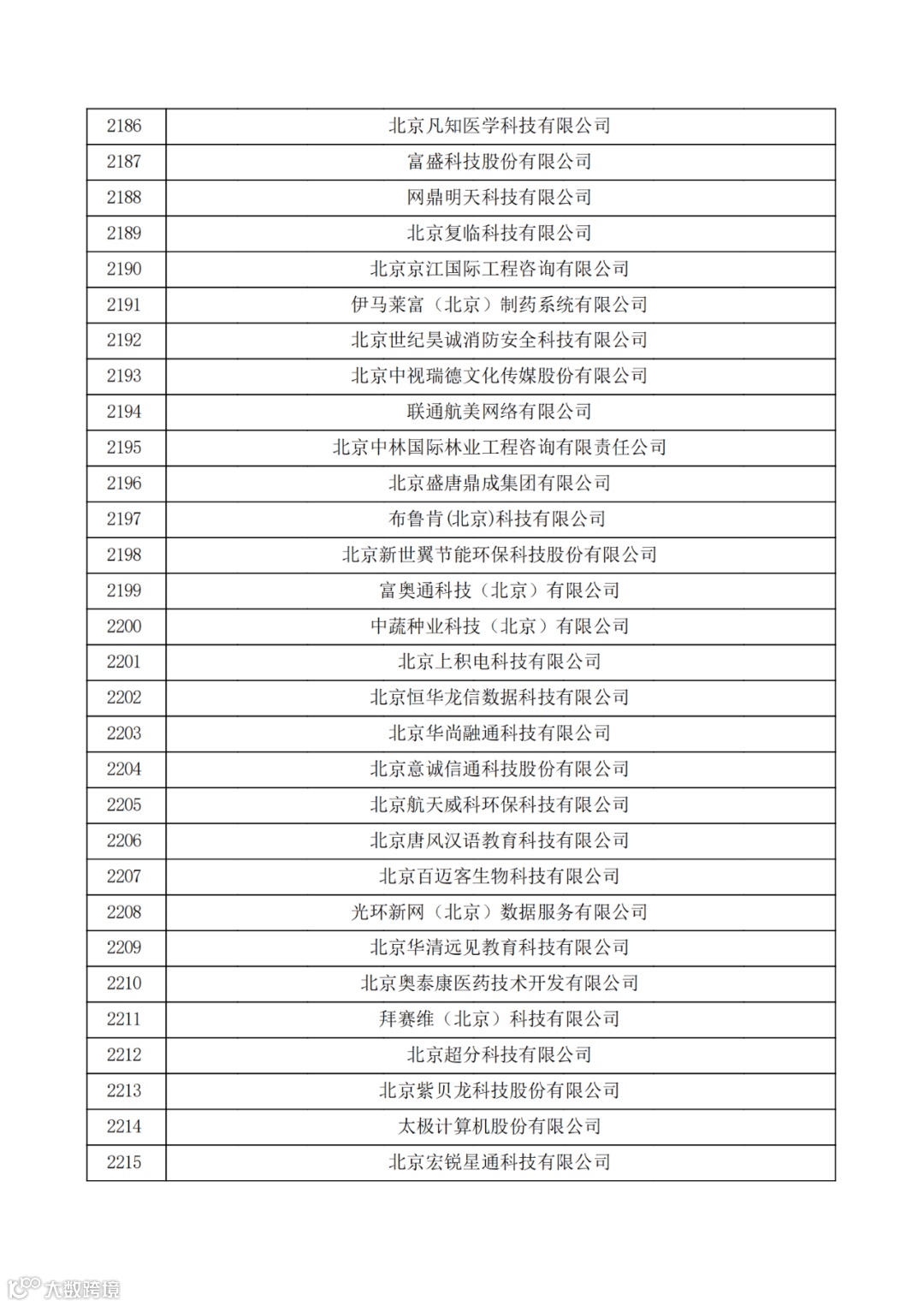 对北京市认定机构2023年认定报备的第二批高新技术企业拟进行备案的公示