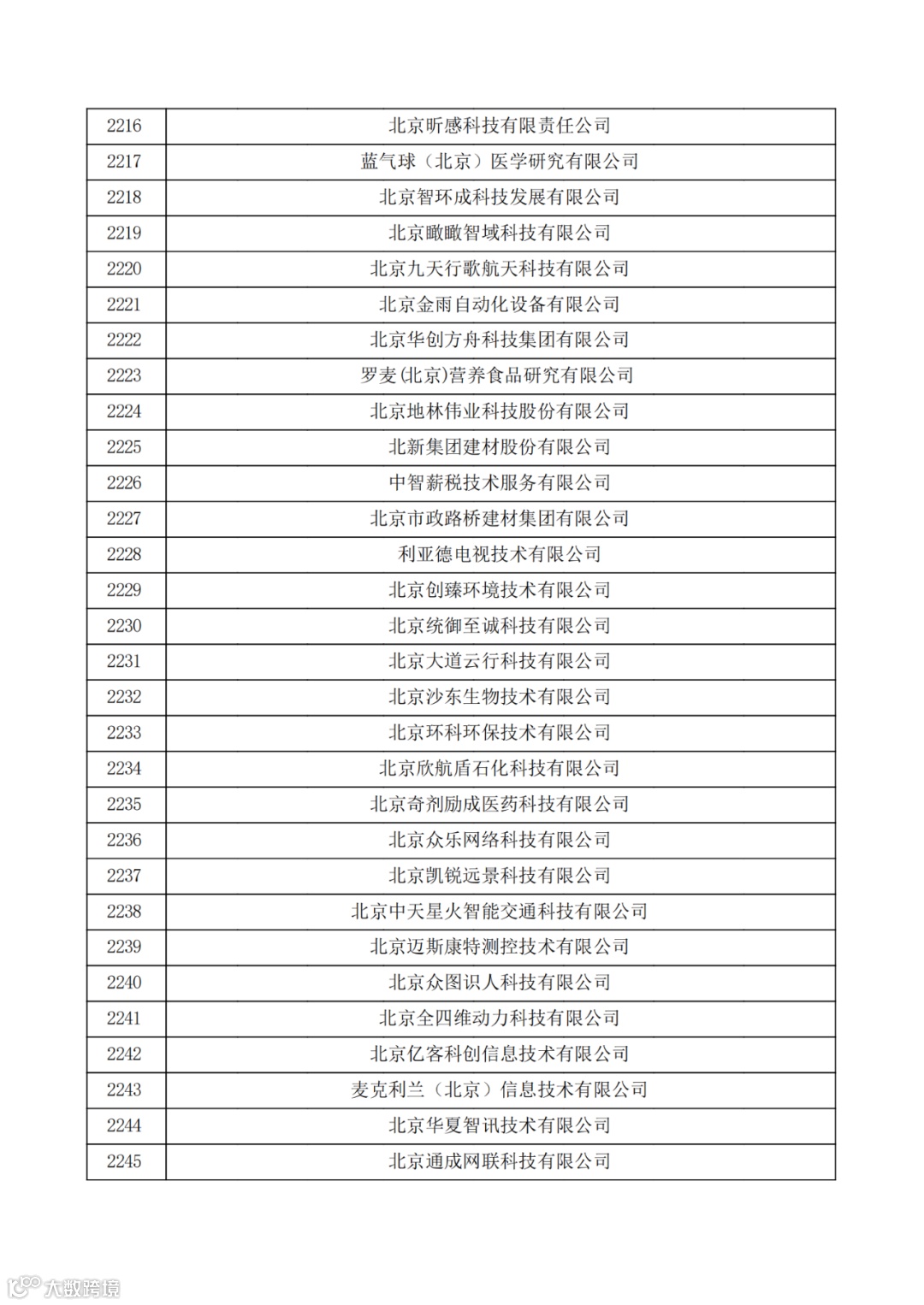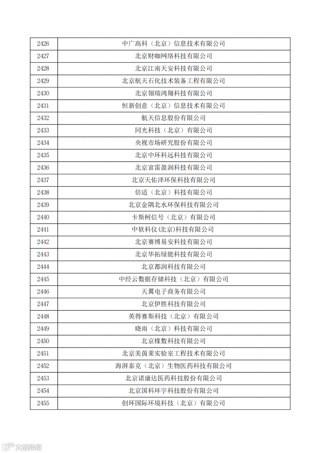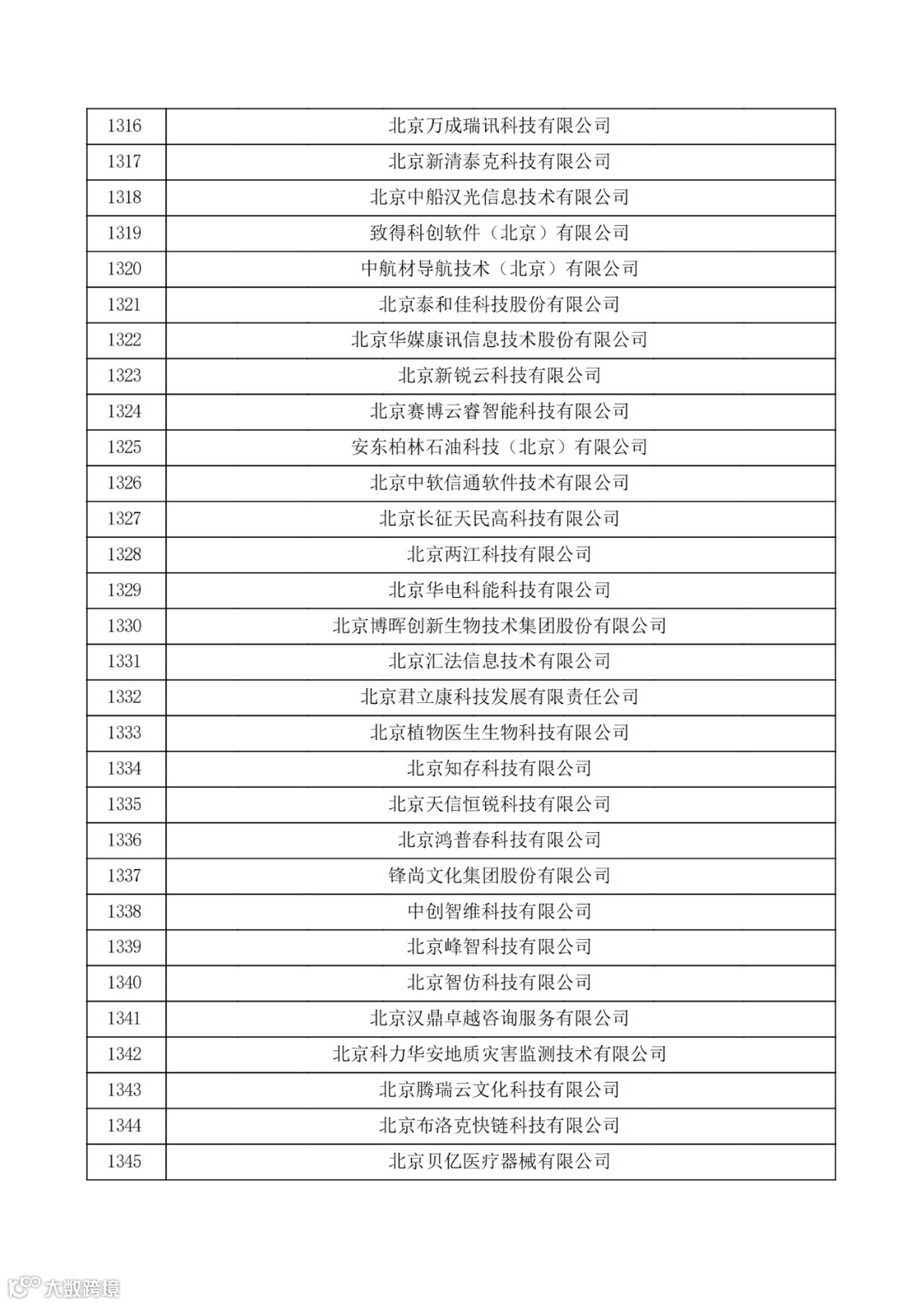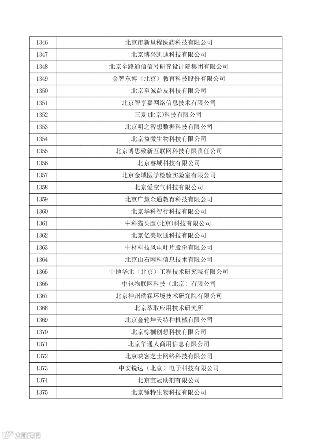 对北京市认定机构2023年认定报备的第二批高新技术企业拟进行备案的公示
