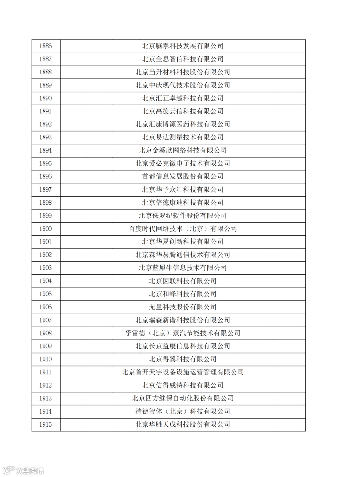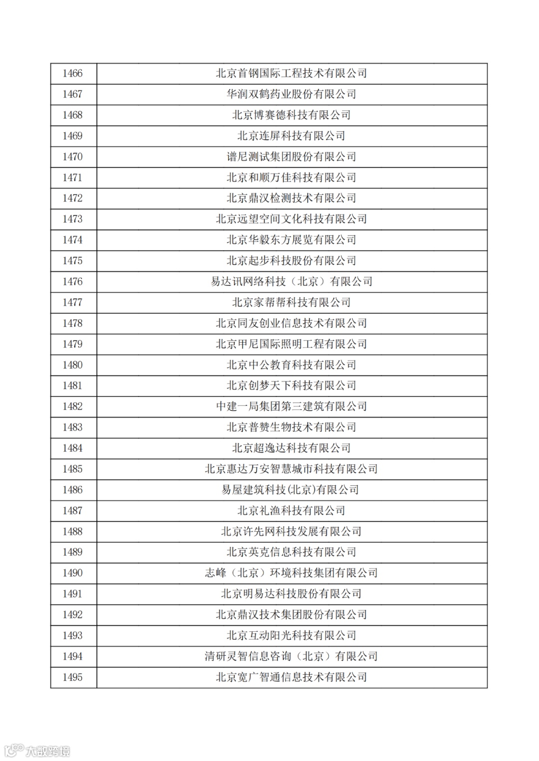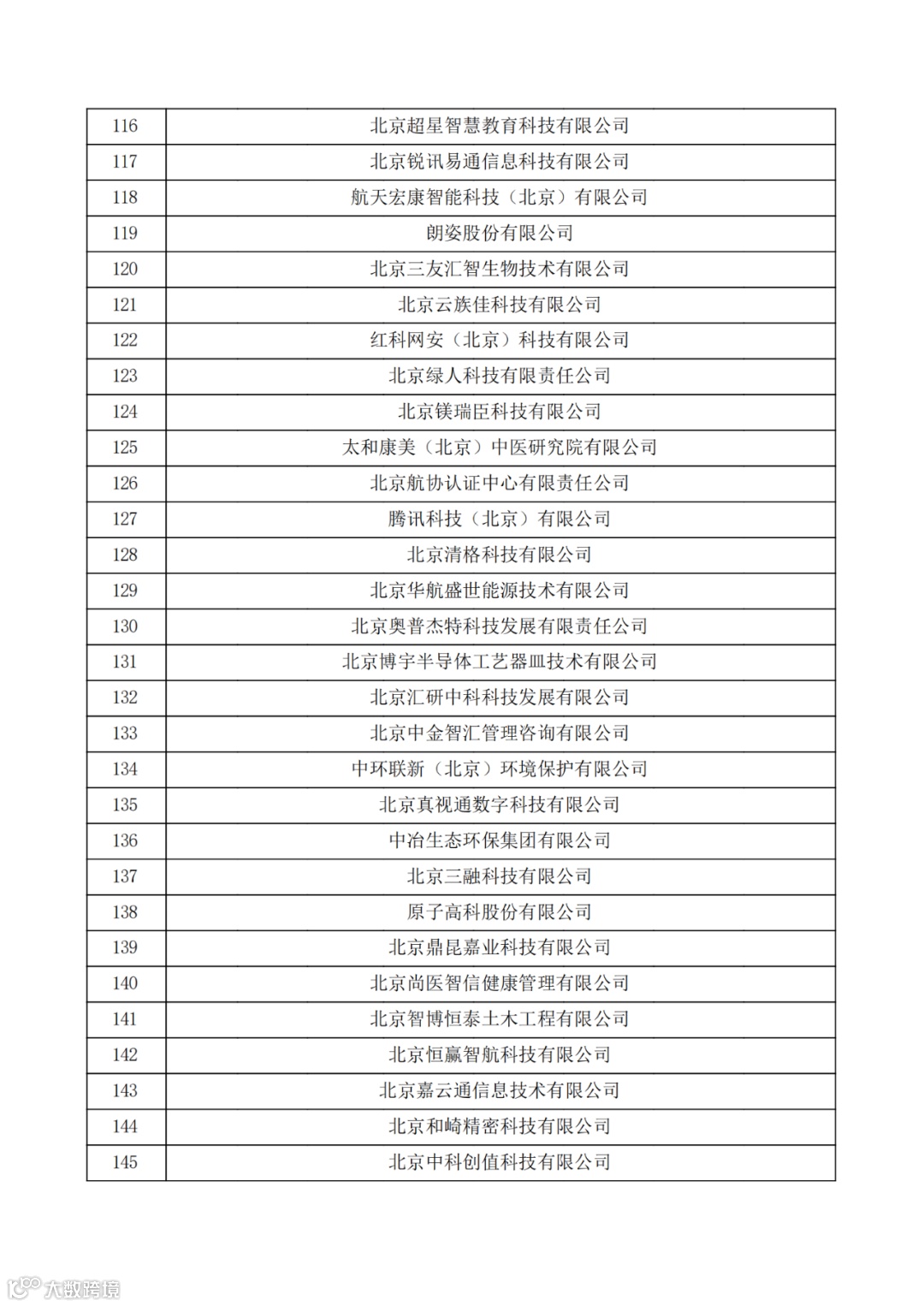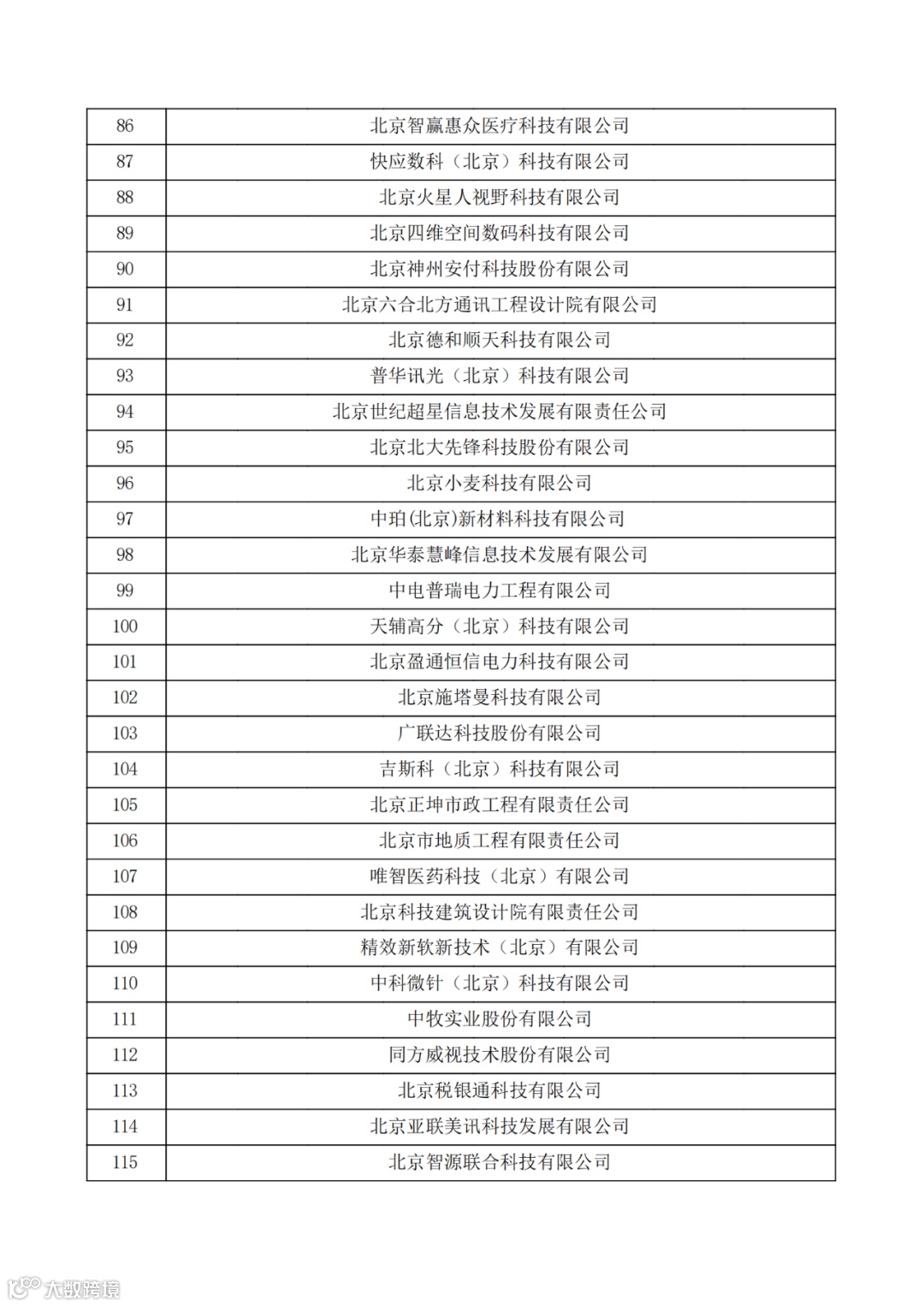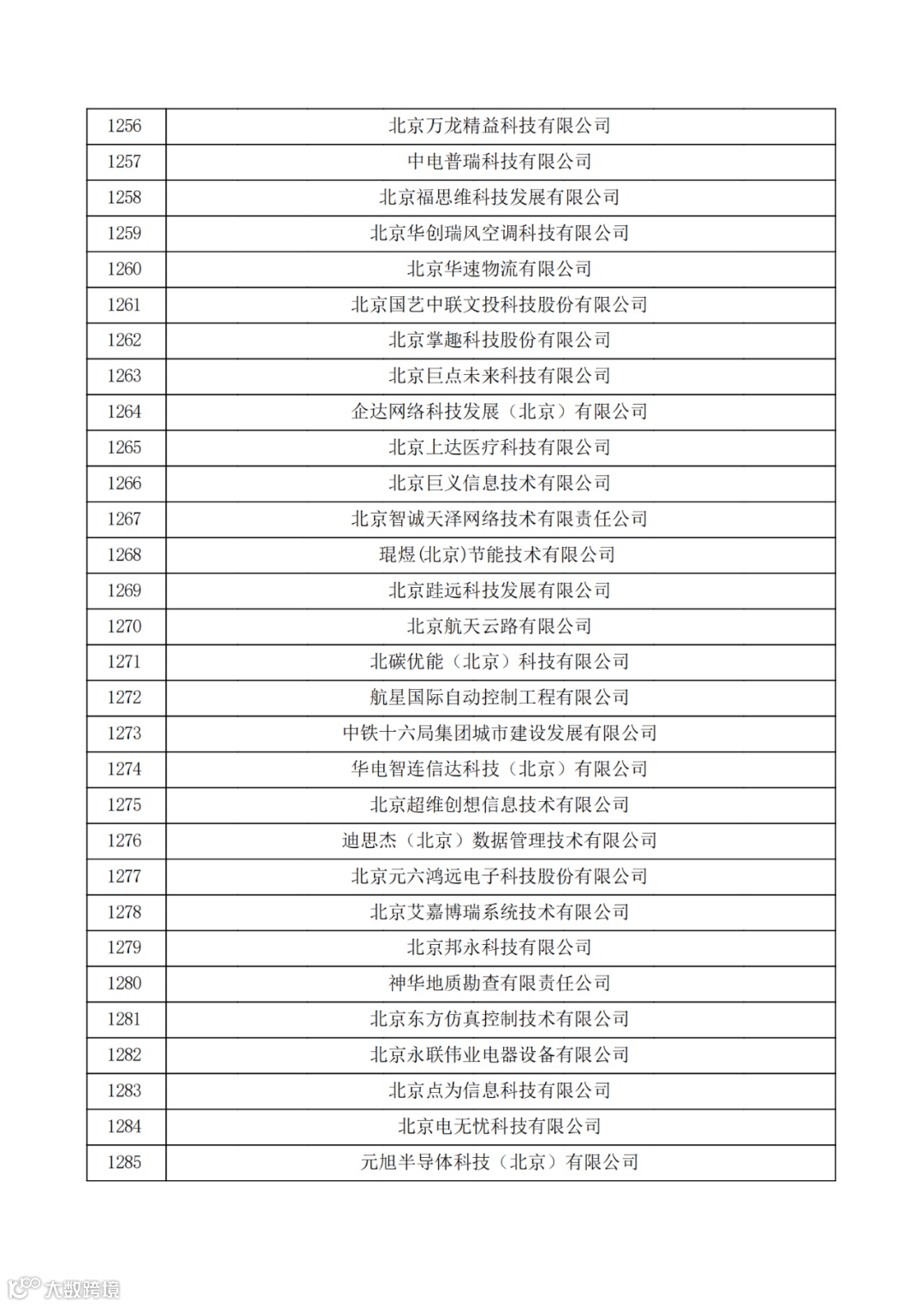 对北京市认定机构2023年认定报备的第二批高新技术企业拟进行备案的公示