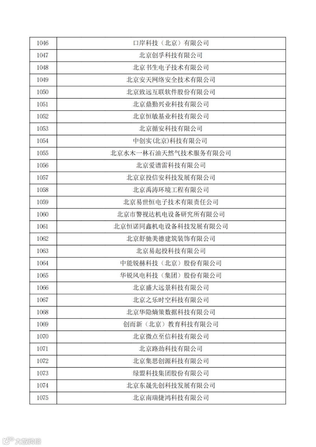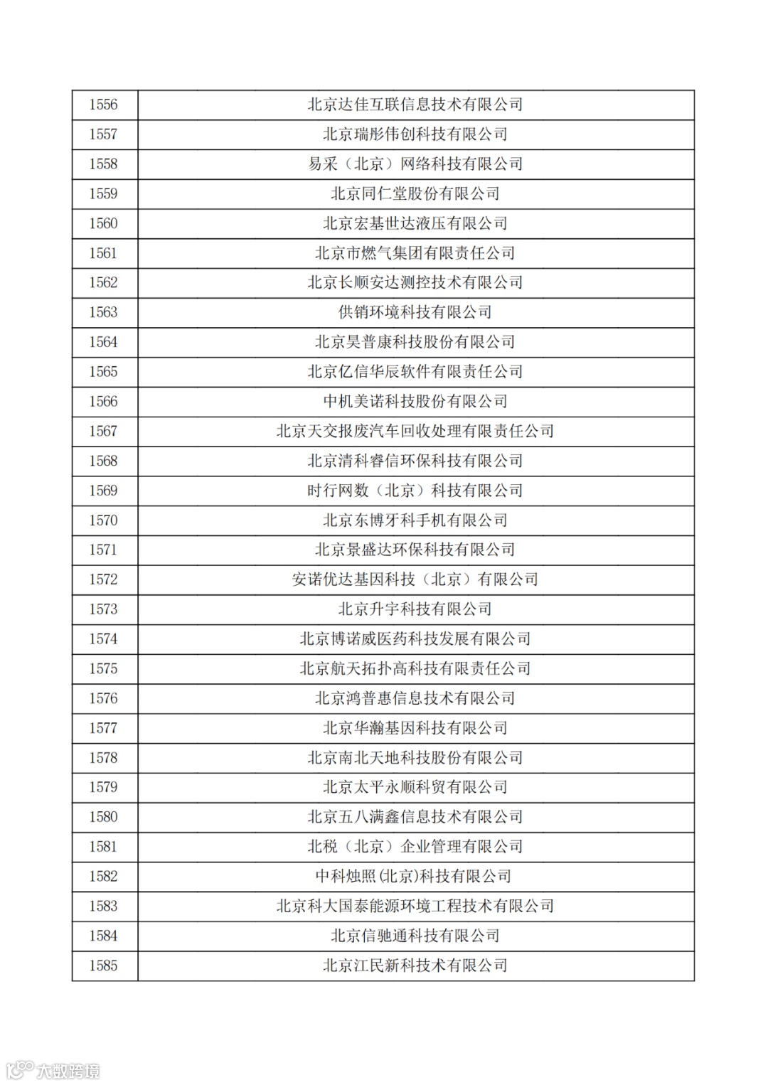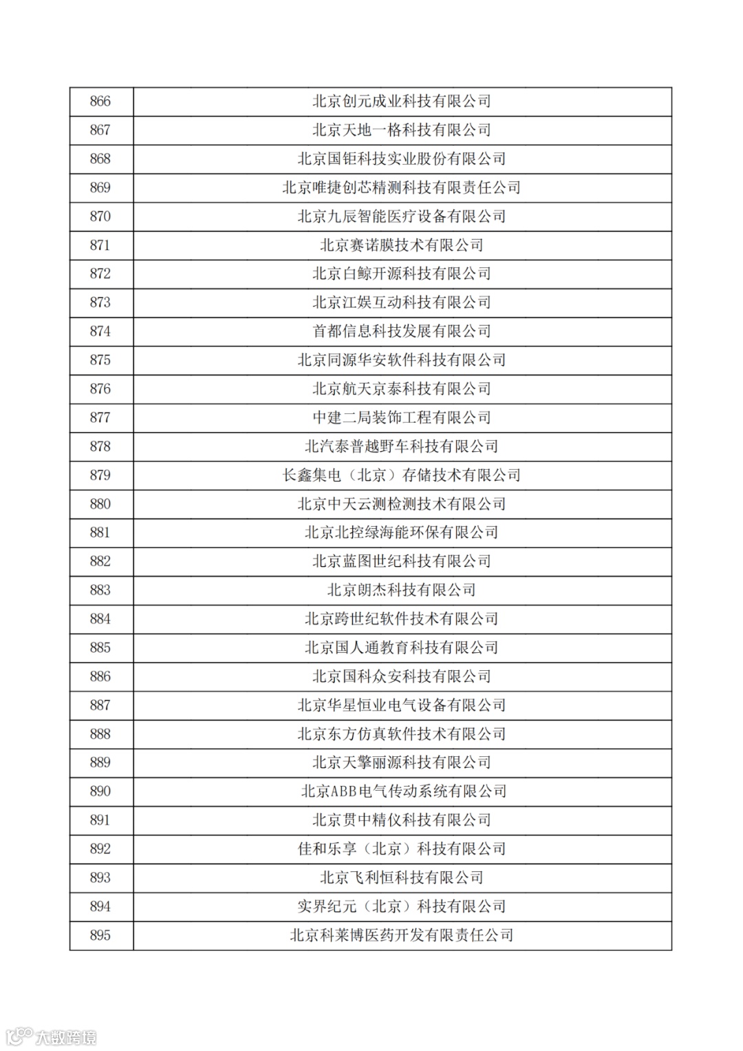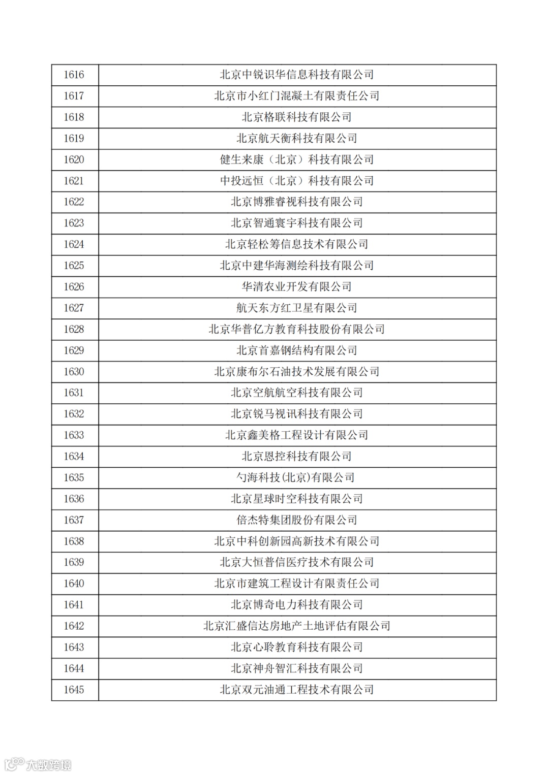 对北京市认定机构2023年认定报备的第二批高新技术企业拟进行备案的公示