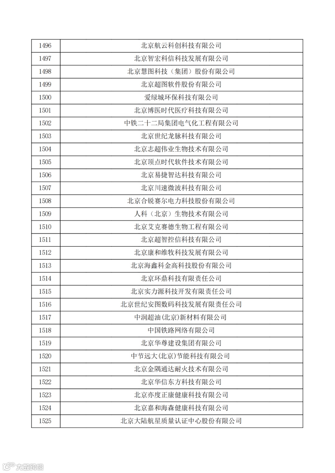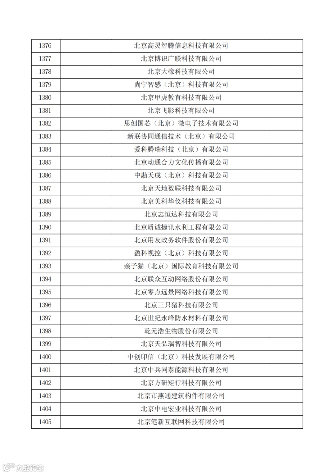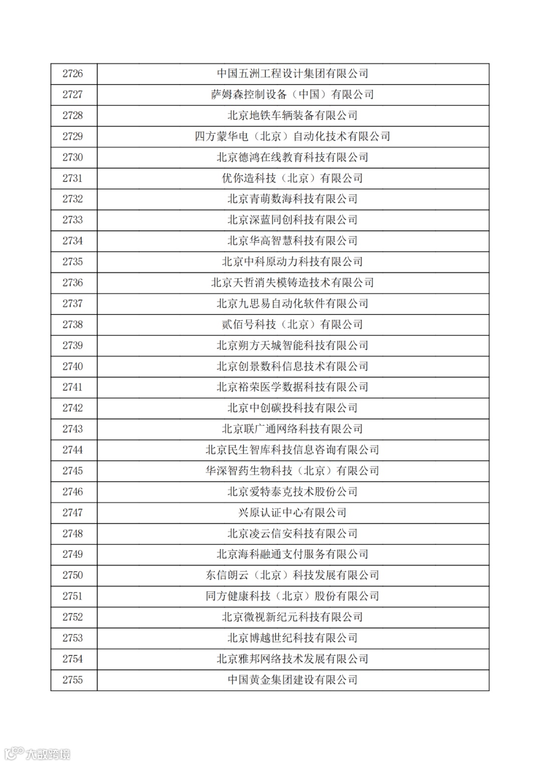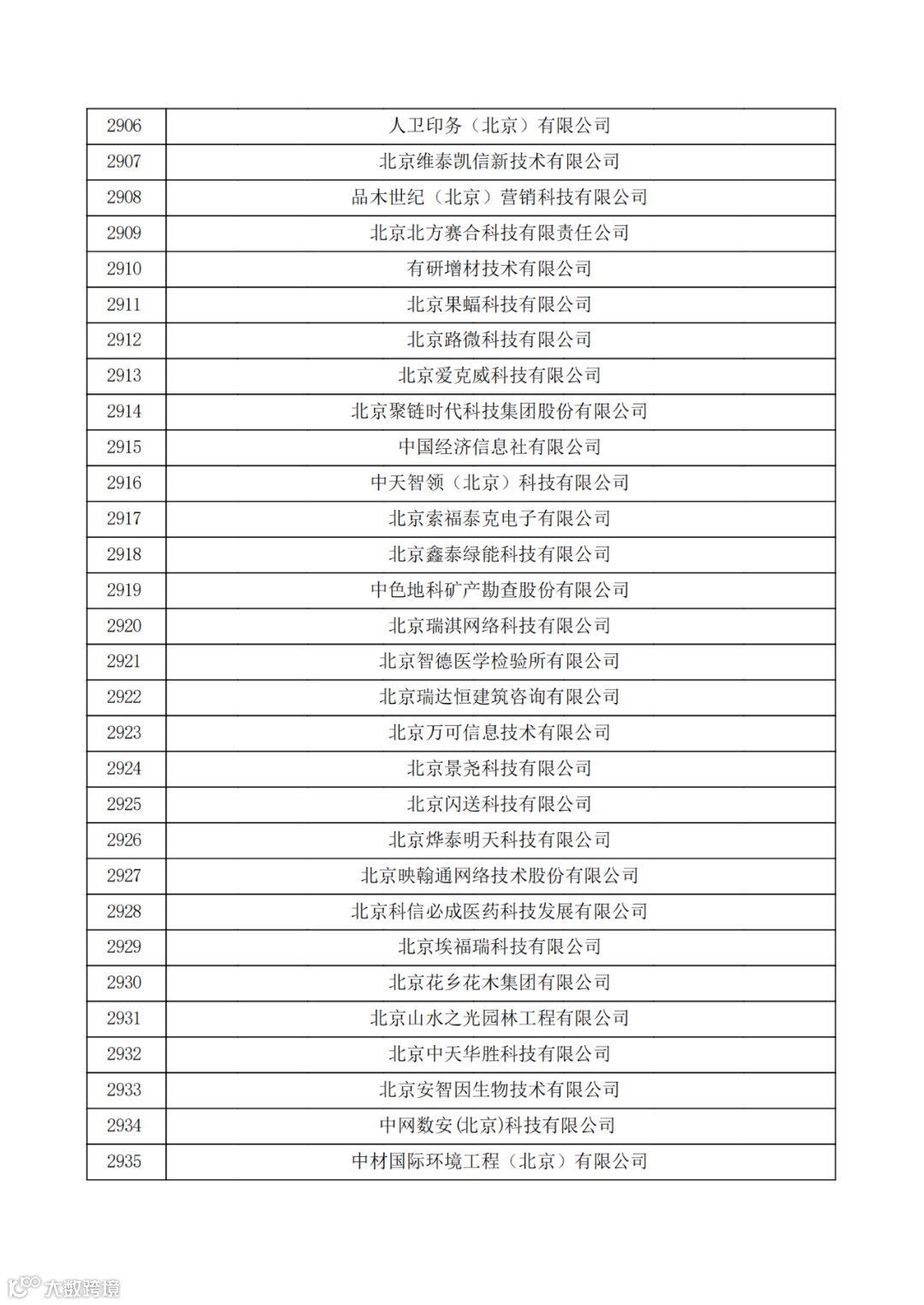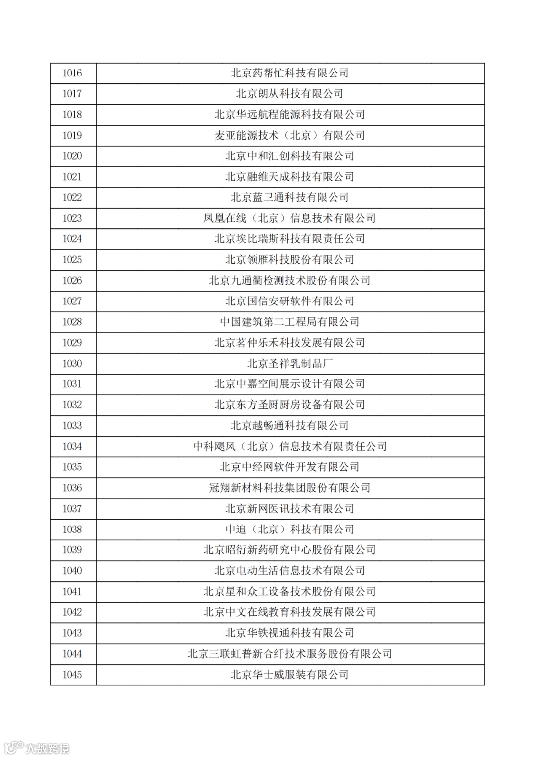 对北京市认定机构2023年认定报备的第二批高新技术企业拟进行备案的公示