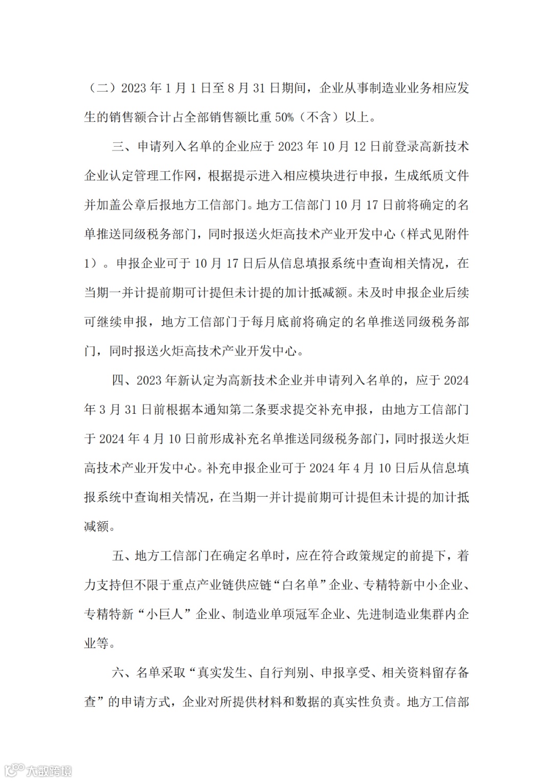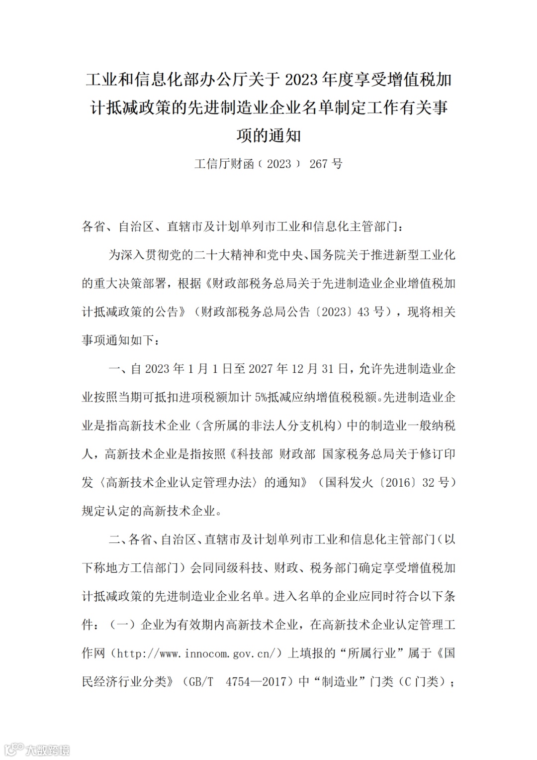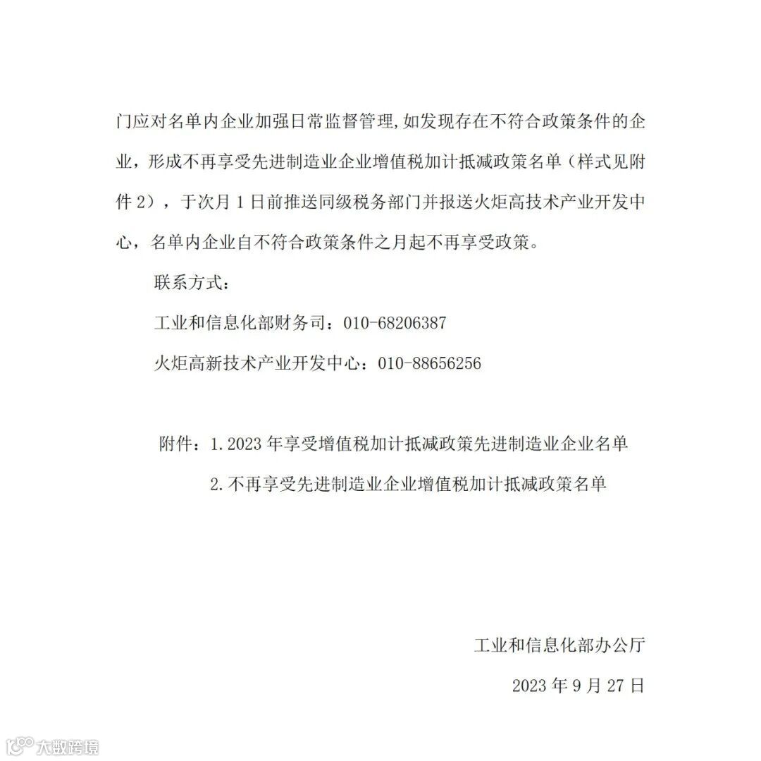 附件:工业和信息化部办公厅关于2023年度享受增值税加计抵减政策的先进制造业企业名单制定工作有关事项的通知