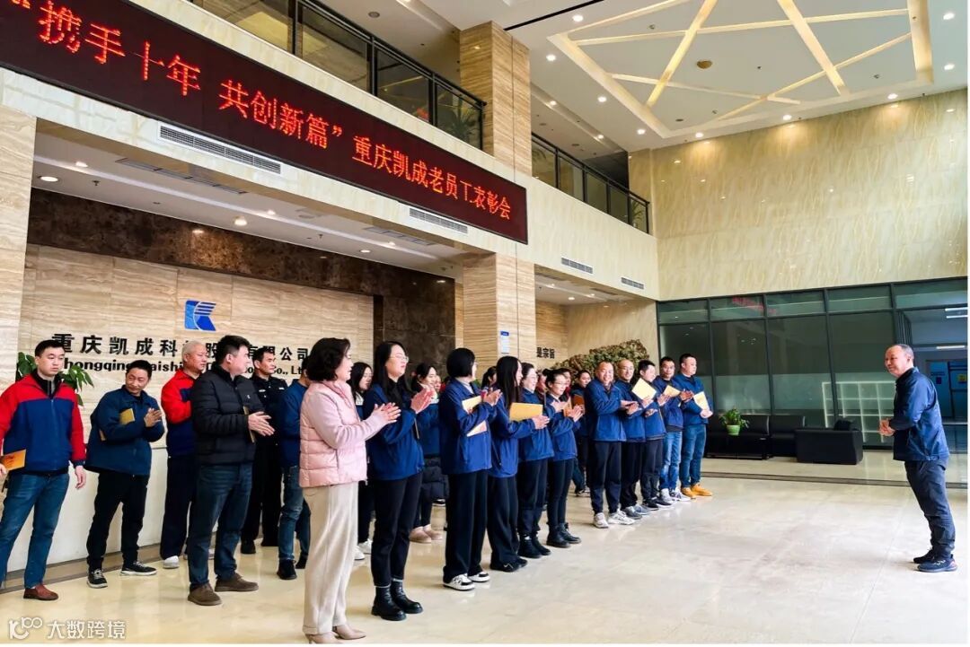 员工是公司的立业之本,员工的成长和进步,是公司发展的原动力。1月29日,重庆凯成隆重举办了“携手十年,共创新篇”老员工表彰大会暨感恩答谢晚宴。感谢来自重庆凯成共计38名老员工十多年的陪伴与坚守,感恩他们陪伴凯成科技一路前行至今,不离不弃。重庆凯成总经理张蓉,工会主席陈佑妤以及老员工代表出席了本次表彰大会及答谢晚宴。