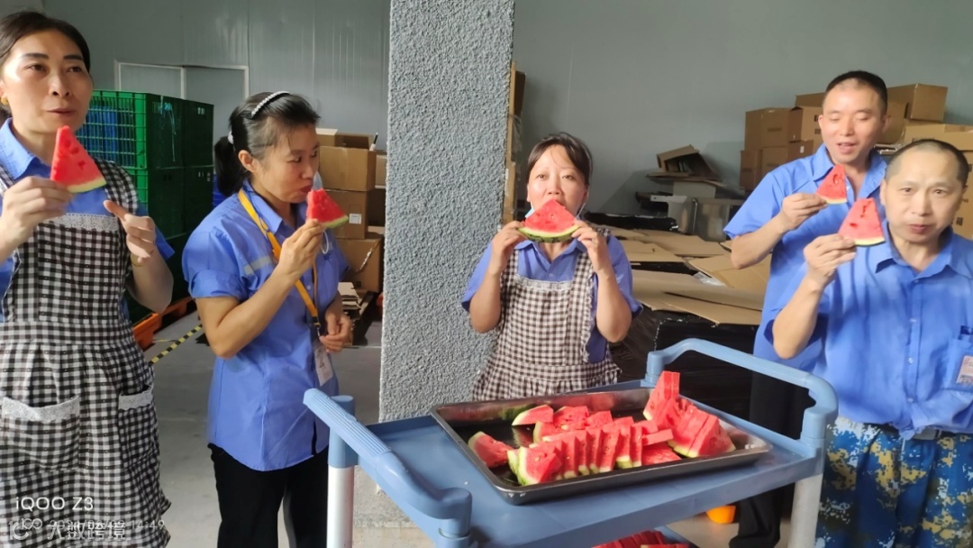 随着气温攀升至39℃,公司领导高度重视员工的防暑降温工作,并采取了一系列措施来应对极端天气。首先,公司为员工们发放了清凉解暑的雪糕,让员工在炎炎夏日中感受到一丝凉意。此外,公司还特别准备了冰镇西瓜,为员工们提供了天然的解暑佳品。
