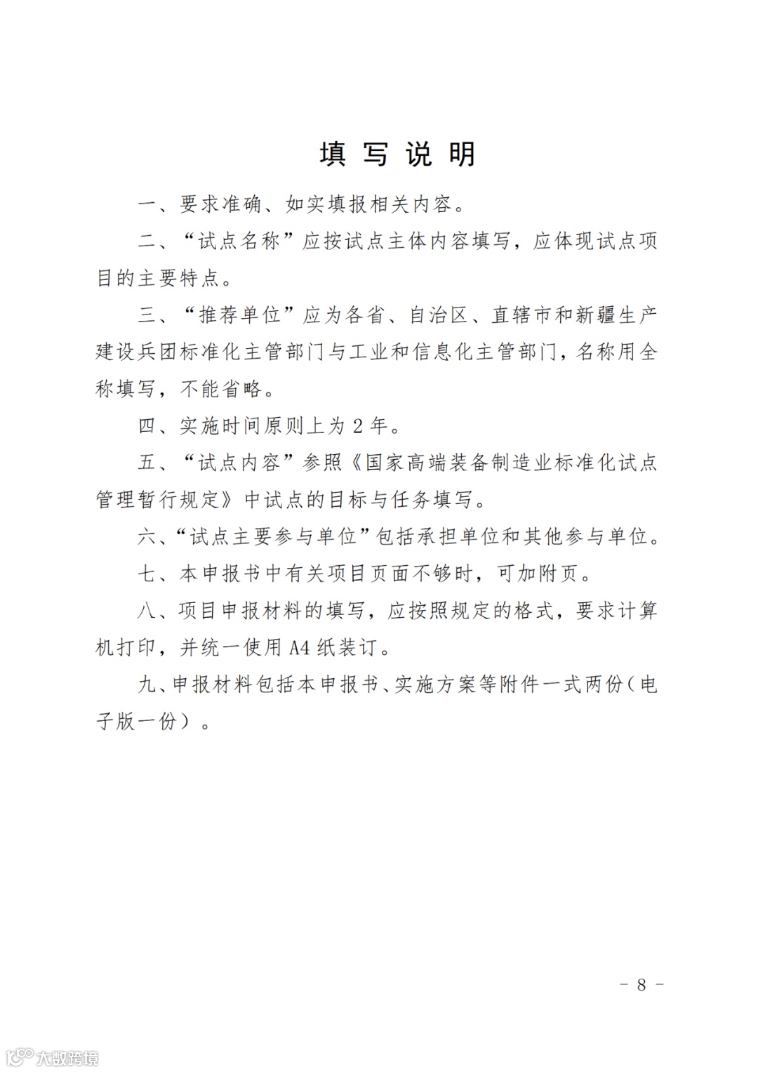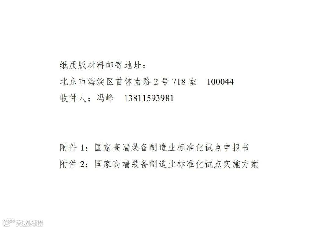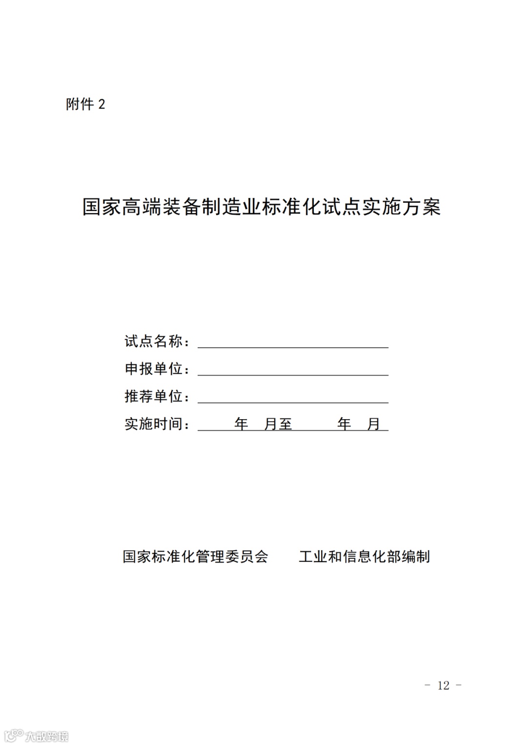 国家标准化管理委员会 工业和信息化部关于征集第三批国家高端装备制造业标准化试点项目的通知