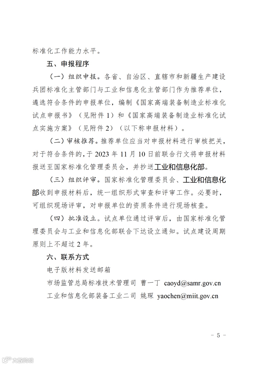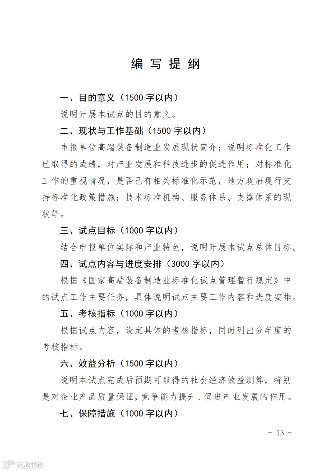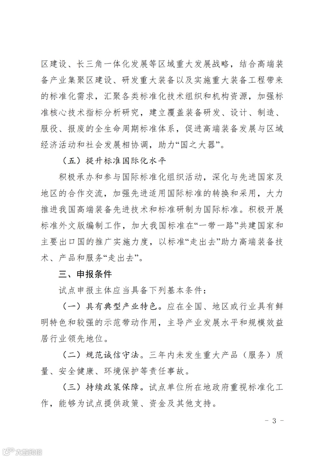 国家标准化管理委员会 工业和信息化部关于征集第三批国家高端装备制造业标准化试点项目的通知