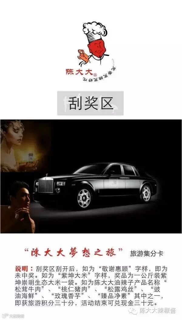 每对获得者获得9898元陈大大梦想之旅旅游基金。未抽中者,每张陈大大梦想之旅旅游集分卡可获得现金30元人民币。