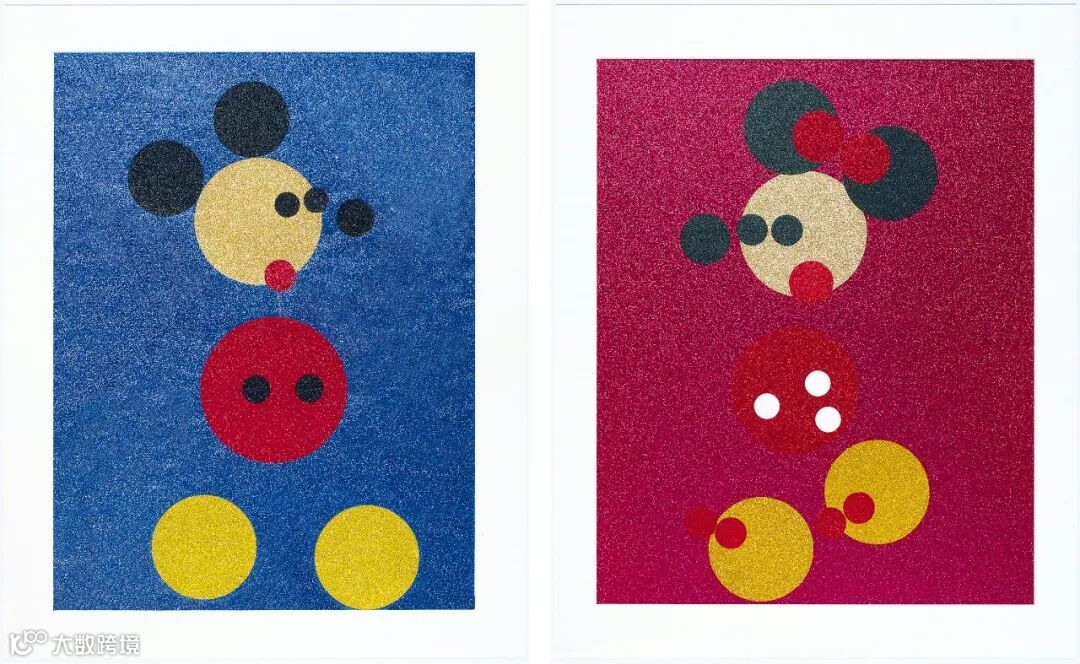 Damien Hirst《米奇米妮》 丝网版画、钻石粉