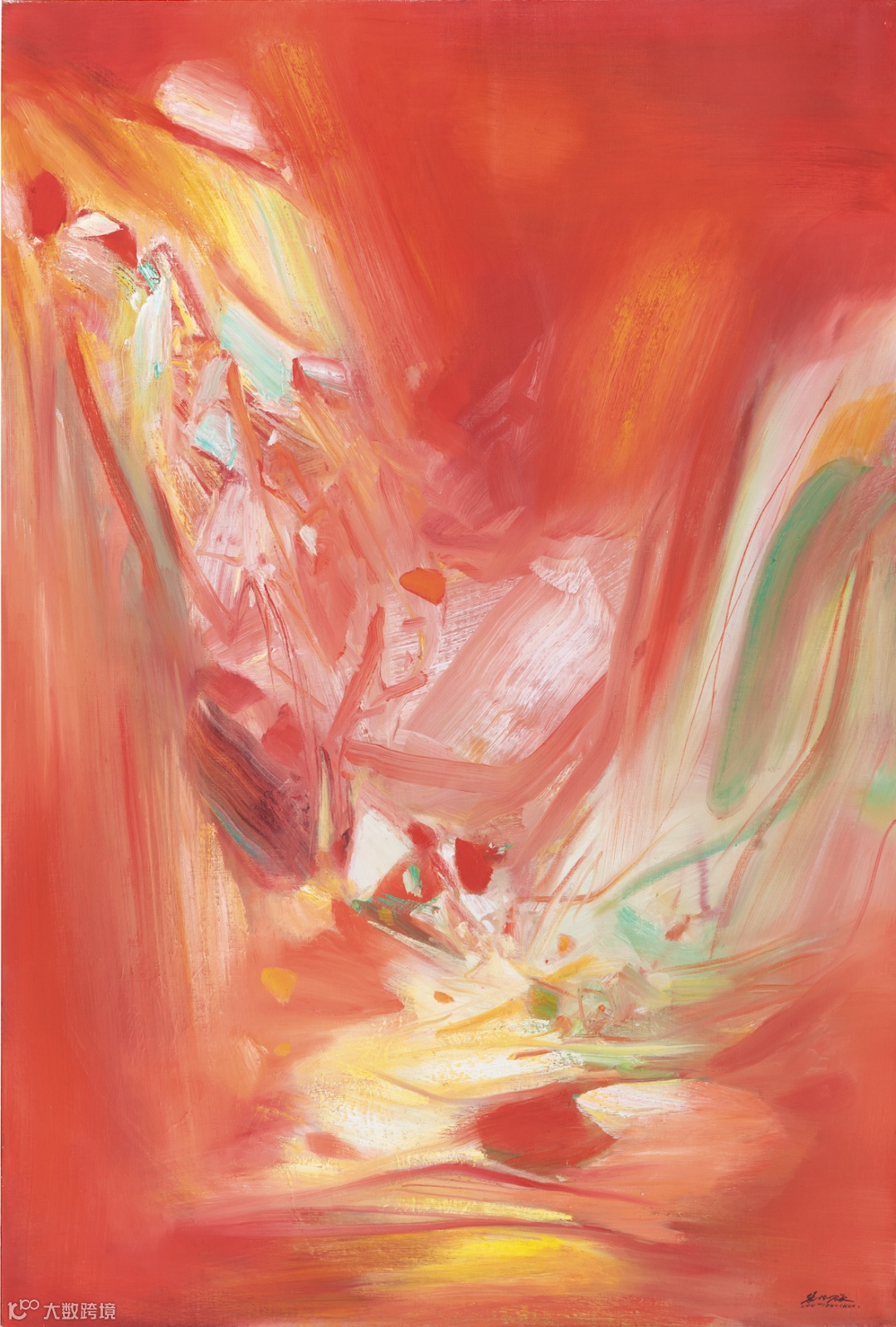 值得注意的是,在刚刚启幕的苏富比春拍中,朱德群雪景巨作以2.3亿港元成交,为估价的近三倍,刷新了艺术家的个人拍卖纪录。此次厦门首拍中呈现的艺术家作品《No.532》同样为大尺幅油画,浓烈的大红底色之下却因其细腻透亮的笔法显示出古典山水的静谧之息。艺术家的笔触潇洒自如、苍劲有力,刚柔并济的线条营造出与浓烈色彩不同的清丽美感。
