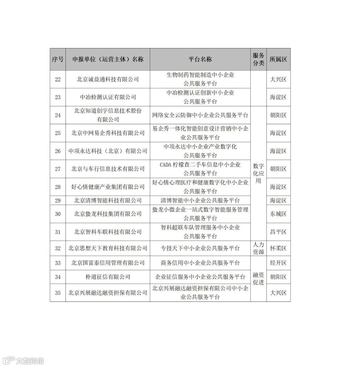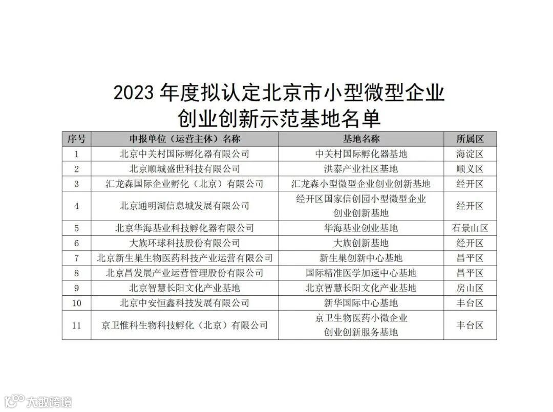北京市经济和信息化局关于对2023年度北京市中小企业公共服务示范平台和小型微型企业创业创新示范基地认定名单进行公示的通知