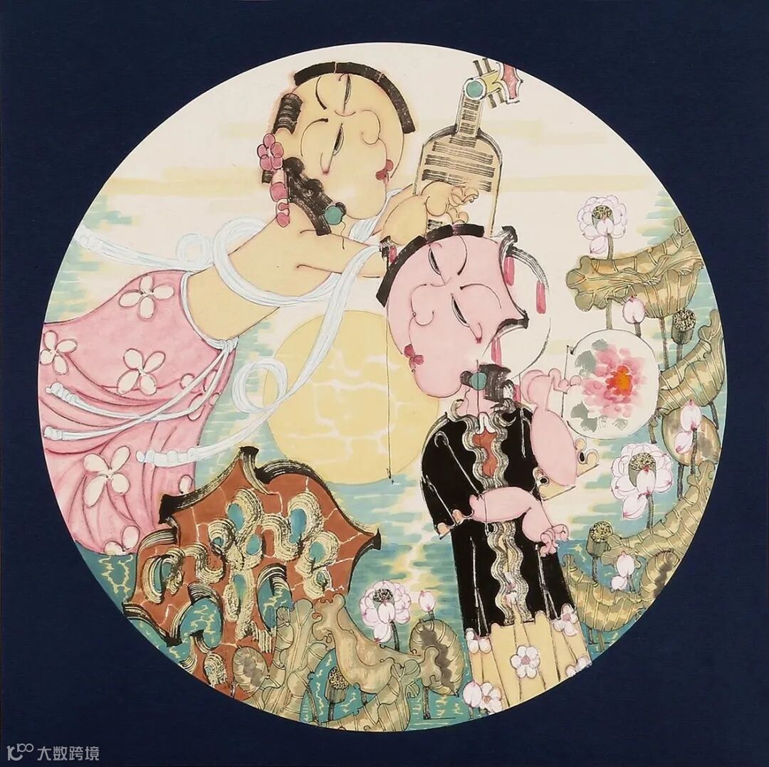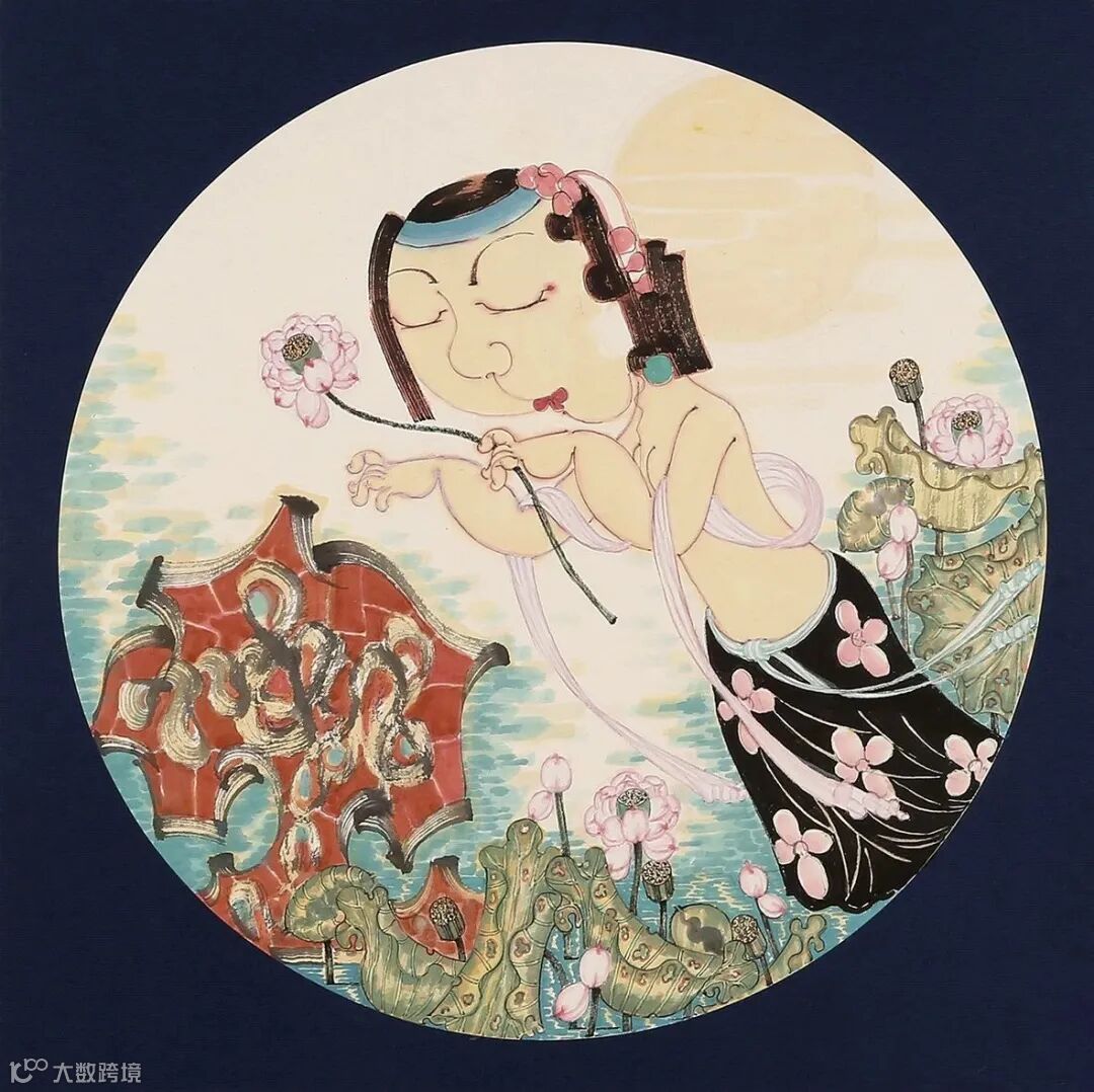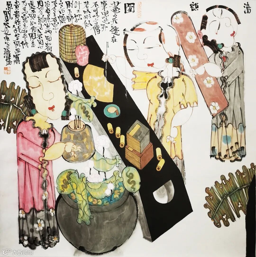 叙事体系的构架,当然还包括用笔、用墨、用色等叙事技巧,这种外在的技巧手法,往往是一位优秀画家历经探索沉淀,为形成自己的画面特色而做出的合理选择。传统女性题材化尤其注重线条,自晋代顾恺之的“高古游丝描”开始,线描对于人物画家来说是必经的技术训练。
