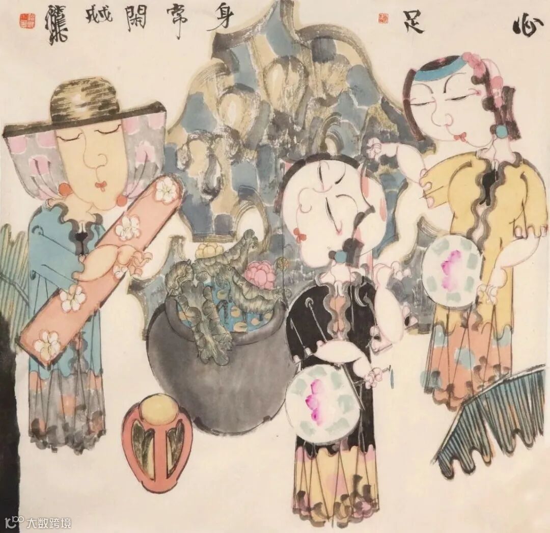 当然,女性叙事是一个大体系,还包括作品构图,人物举止,画面题款,画作命名等多项内容。赵锦龙正是在处理好这一系列细节性画面元素基础上,构建起独具特色的女性叙事大体系。