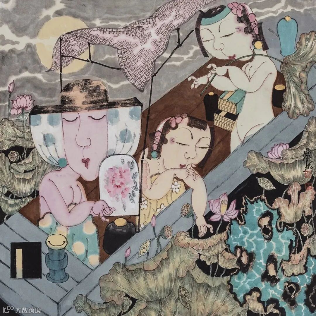 中国画尤其强调“书画同源”,好多大师都不断强调,中国画是写出来的。黄宾虹就强调,画面任何一笔都要有起、承、转、合等书法要素。赵锦龙笔下的线也是如此,不过为体现女性叙事风格、构建女性空间,他的线尤其柔和、婉约一些。
