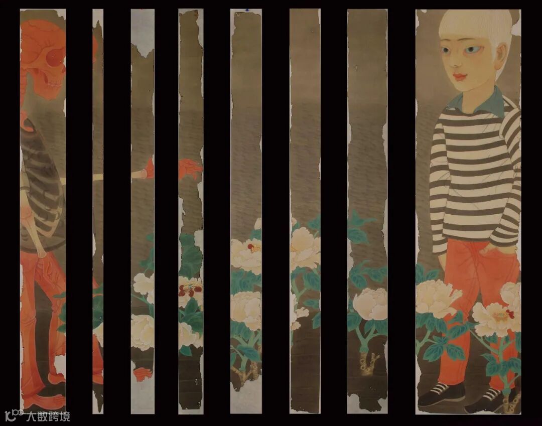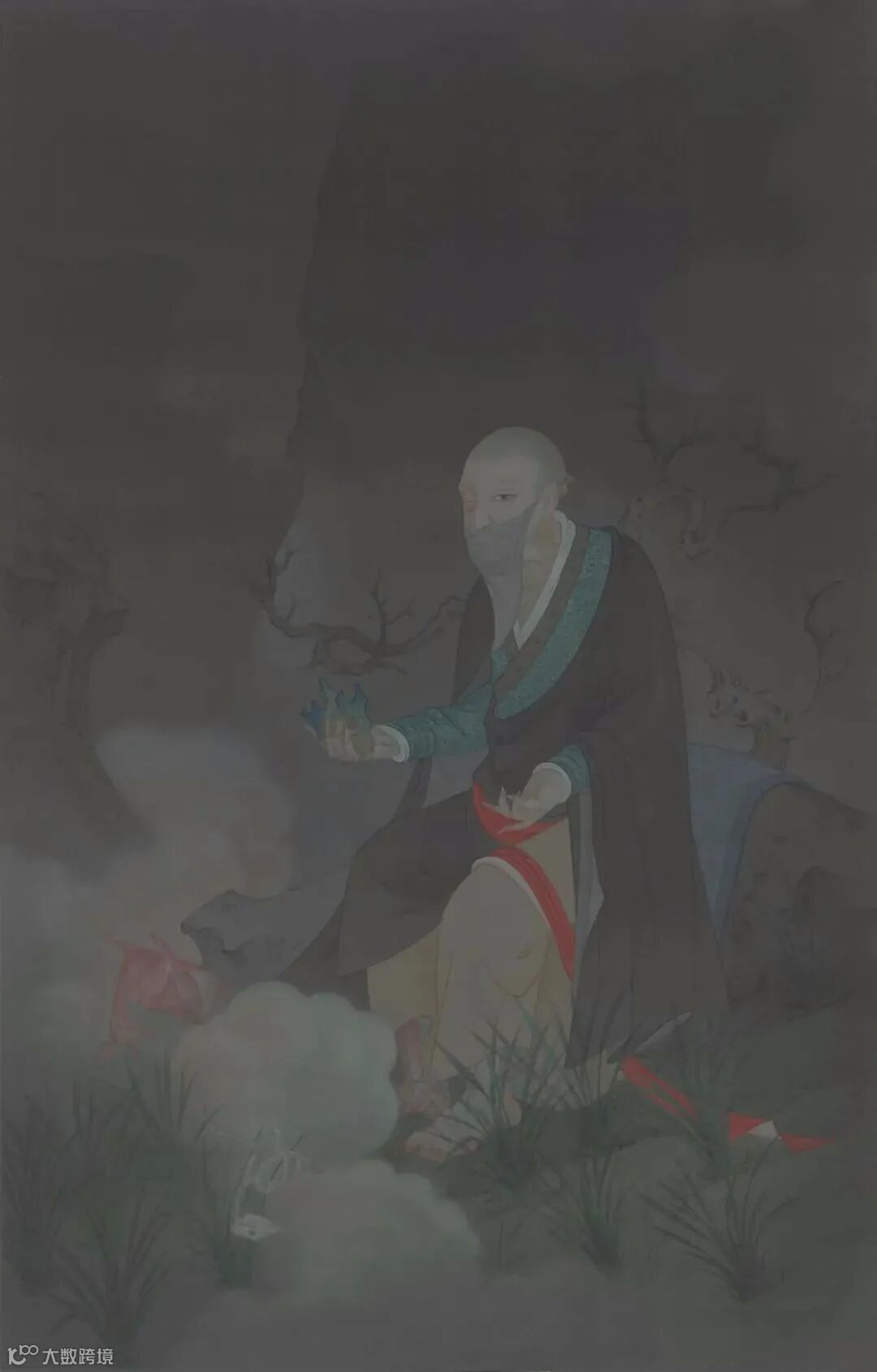 而毕业于四川美术学院中国画系的80后艺术家郝量却跳出这个既定的框架,在传统画中甚少出现的“死亡、骷髅”,却是他作品的主题。这种大胆颠覆,说是离经叛道也不为过。他的作品充满着奇幻迷离的色彩及志怪气息,,扑面而来的诡异、神秘感,让人忍不住想要一探究竟。
