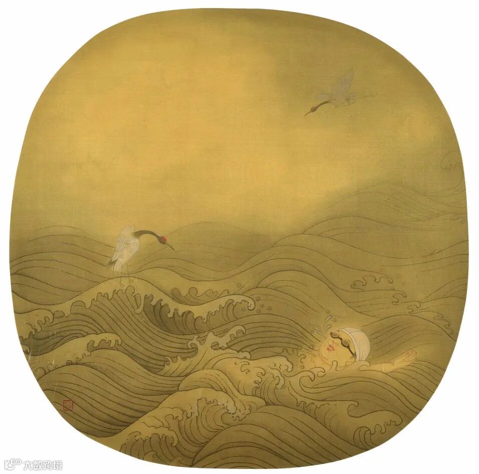 《浪里百跳》,水墨绢本裱于纸本,直径70.6cm,2006年