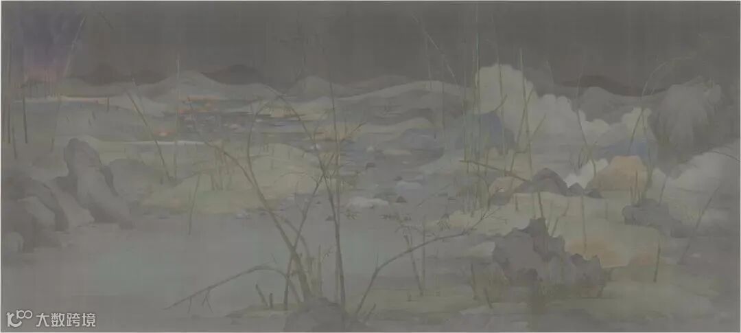 郝量《潇湘八景-瞬息》,绢本水墨,387×184cm,2014年