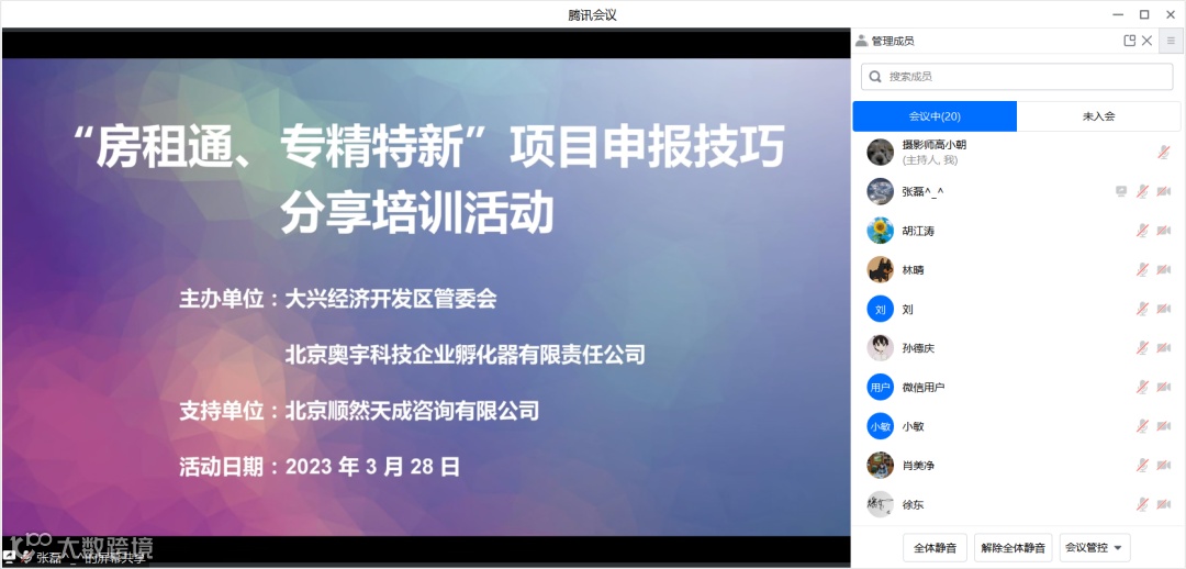 为了帮助更多企业深入了解最新热门项目“房租通”“专精特新”相关政策和申报技巧,帮助企业顺利开展项目申报工作,获得更多资金支持。3月28日下午,一场以“热门项目‘房租通’‘专精特新’项目申报技巧分享”为主题的公益性培训活动在奥宇科技英巢2号楼19层西侧会议室成功举办;本次活动线上+线下同步开讲,参会人数近百人。