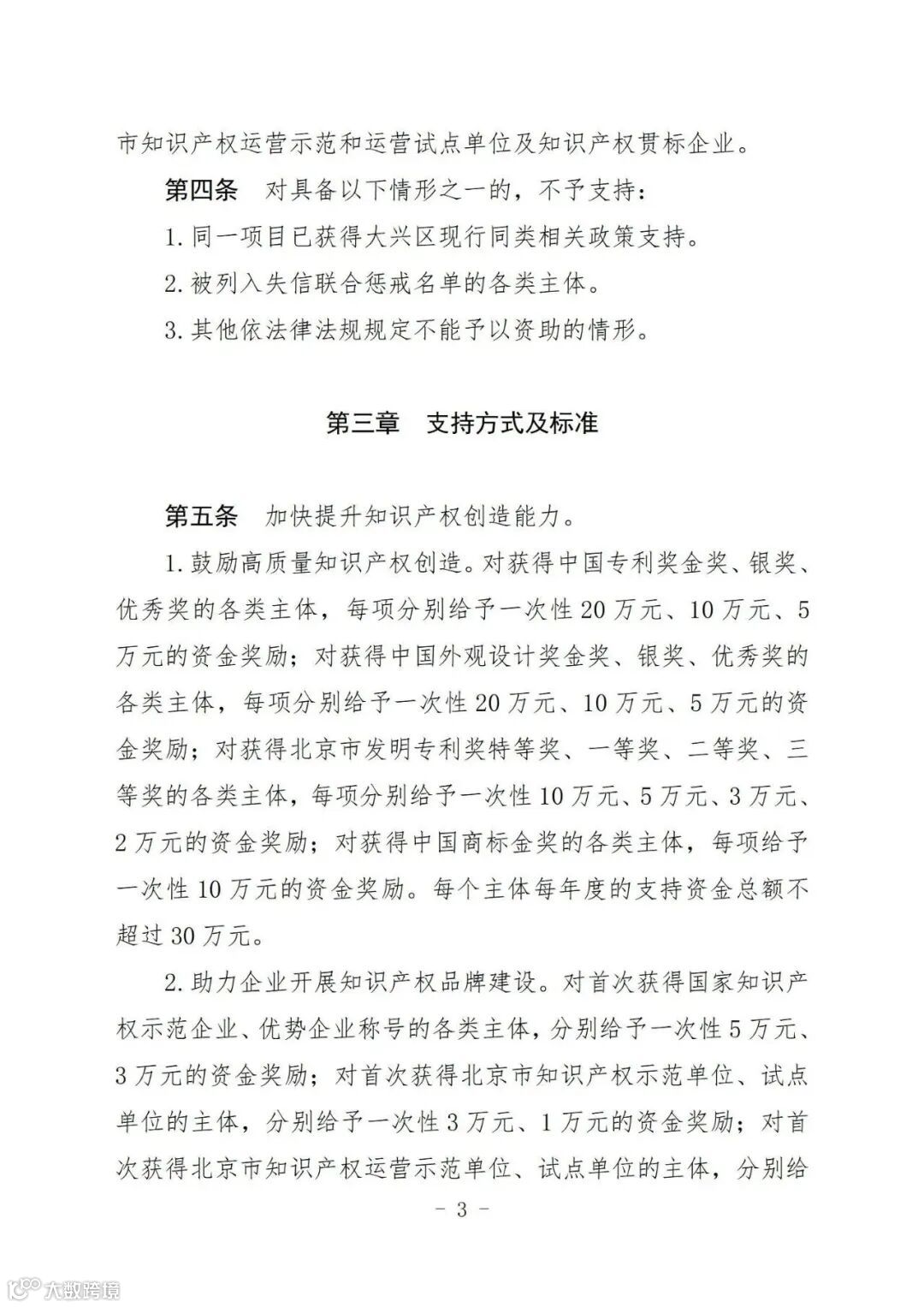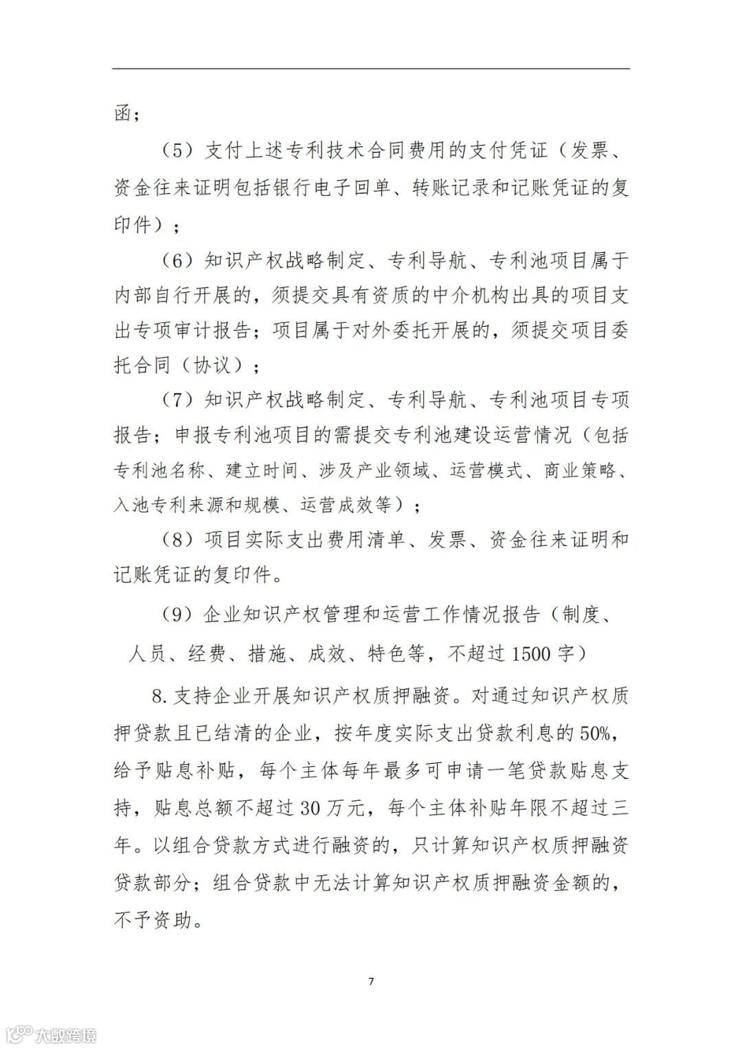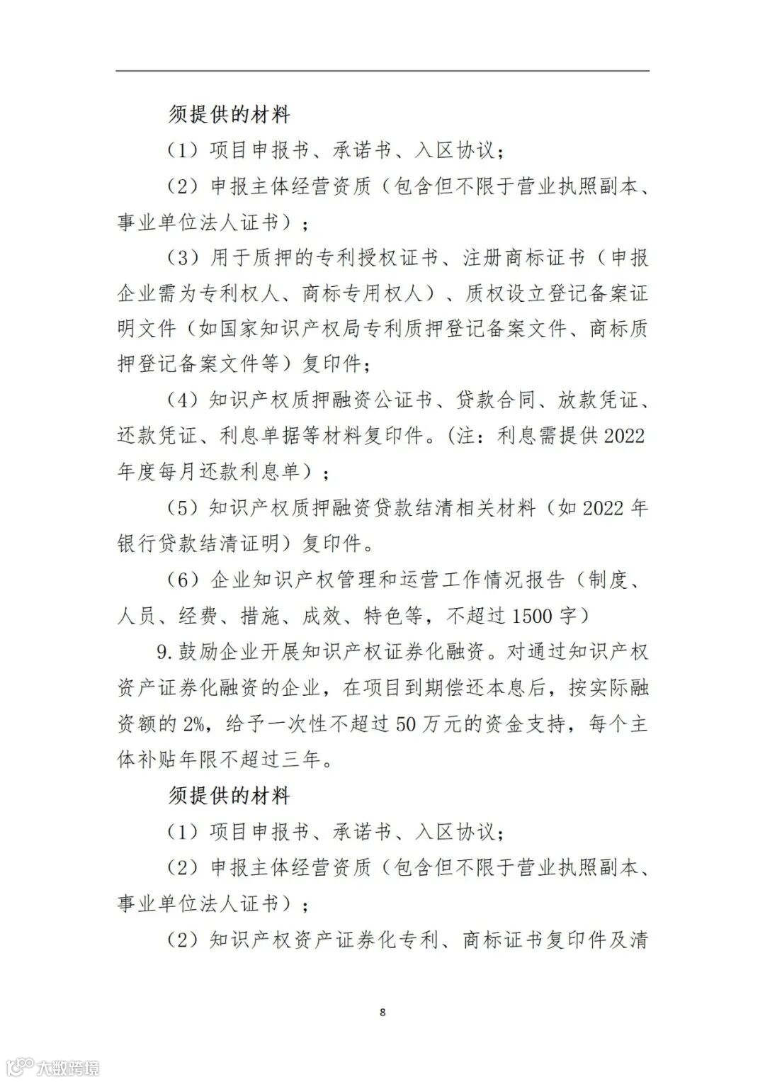 具体申报条件及材料详见《大兴区促进知识产权发展暂行办法申报说明》(附件2)。