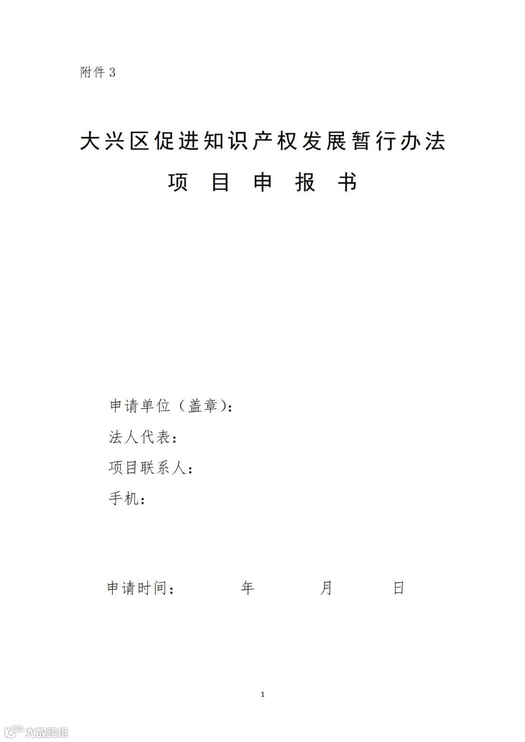附件3:大兴区促进知识产权发展暂行办法 申报书.docx