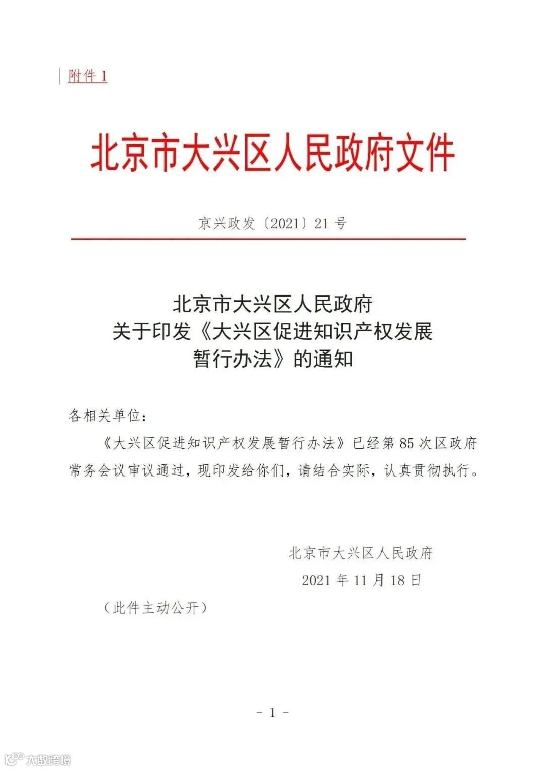 附件1:《大兴区促进知识产权发展暂行办法》.doc