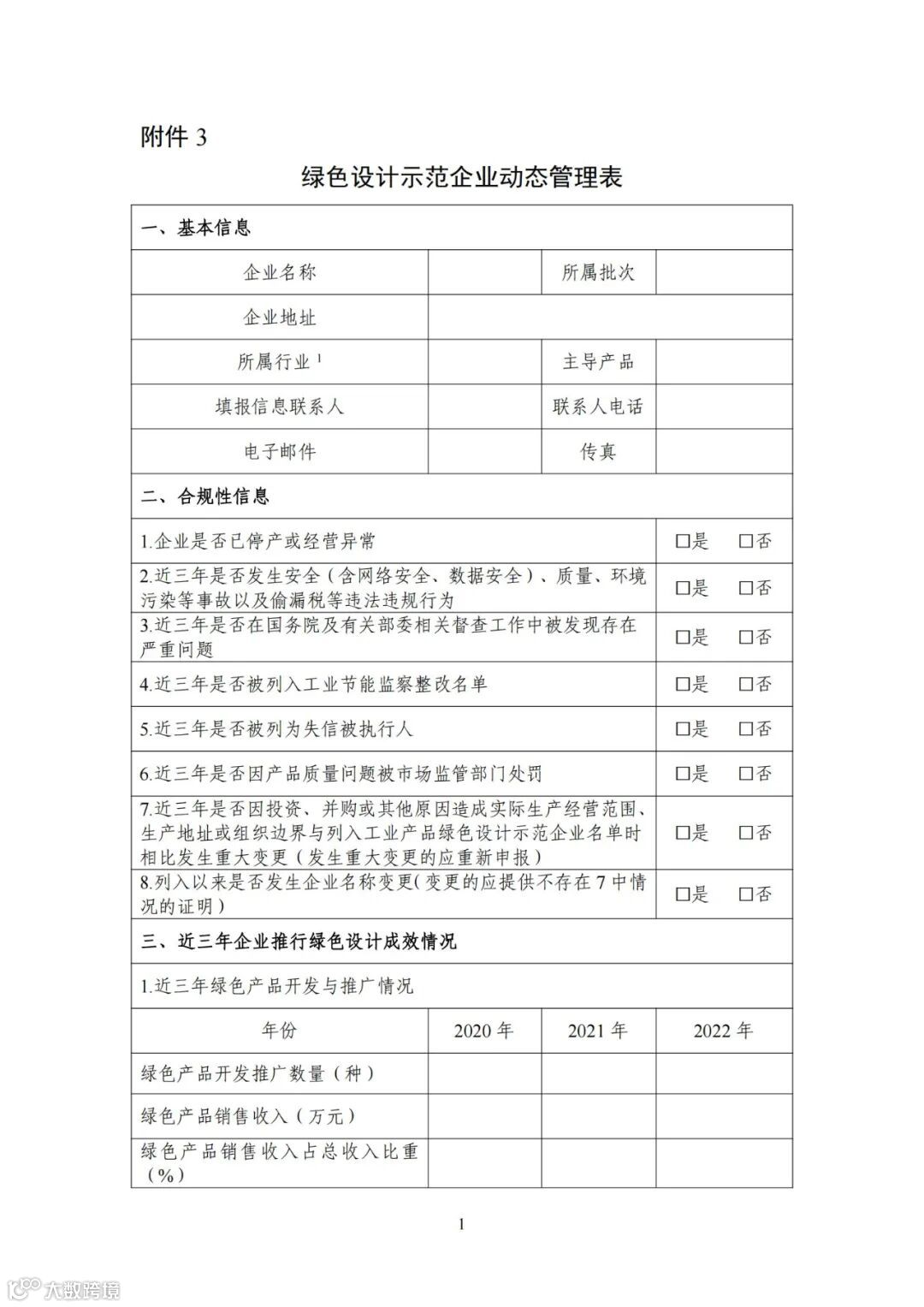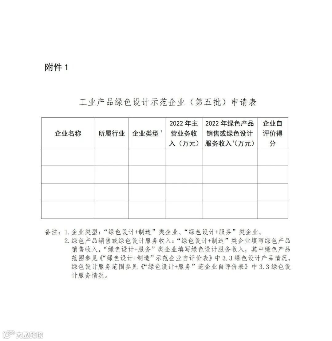 附件:1.工业产品绿色设计示范企业(第五批)申请表